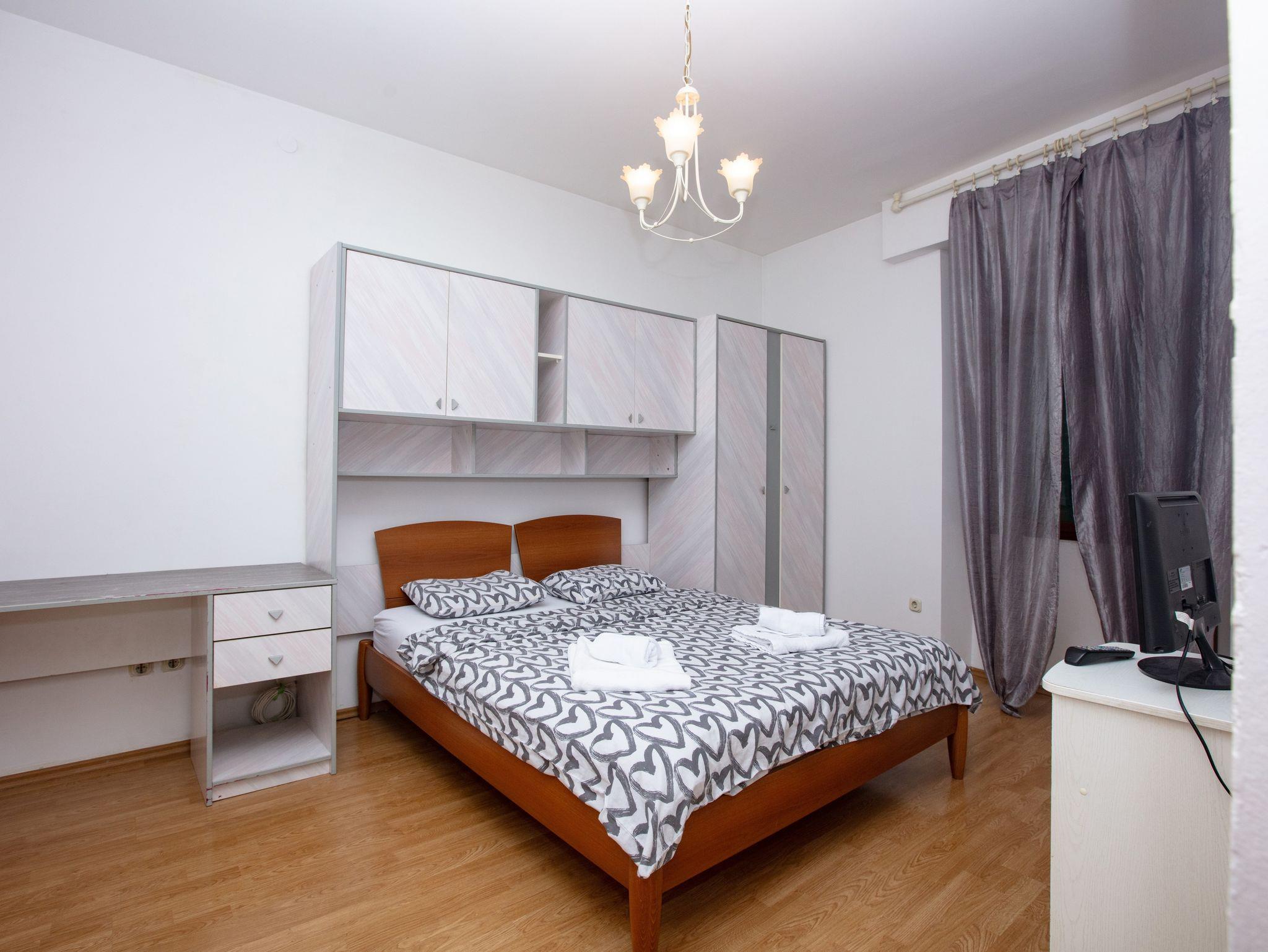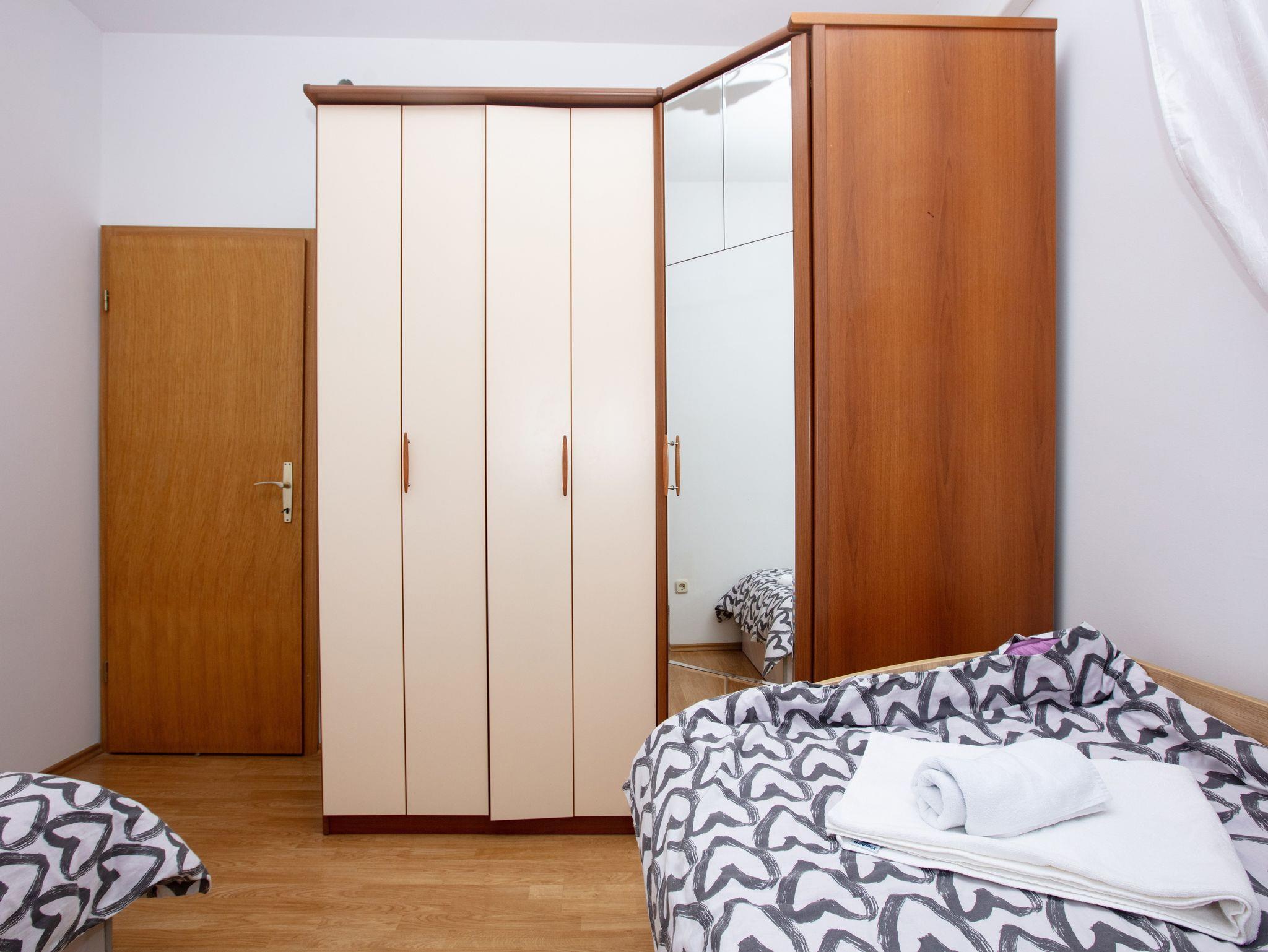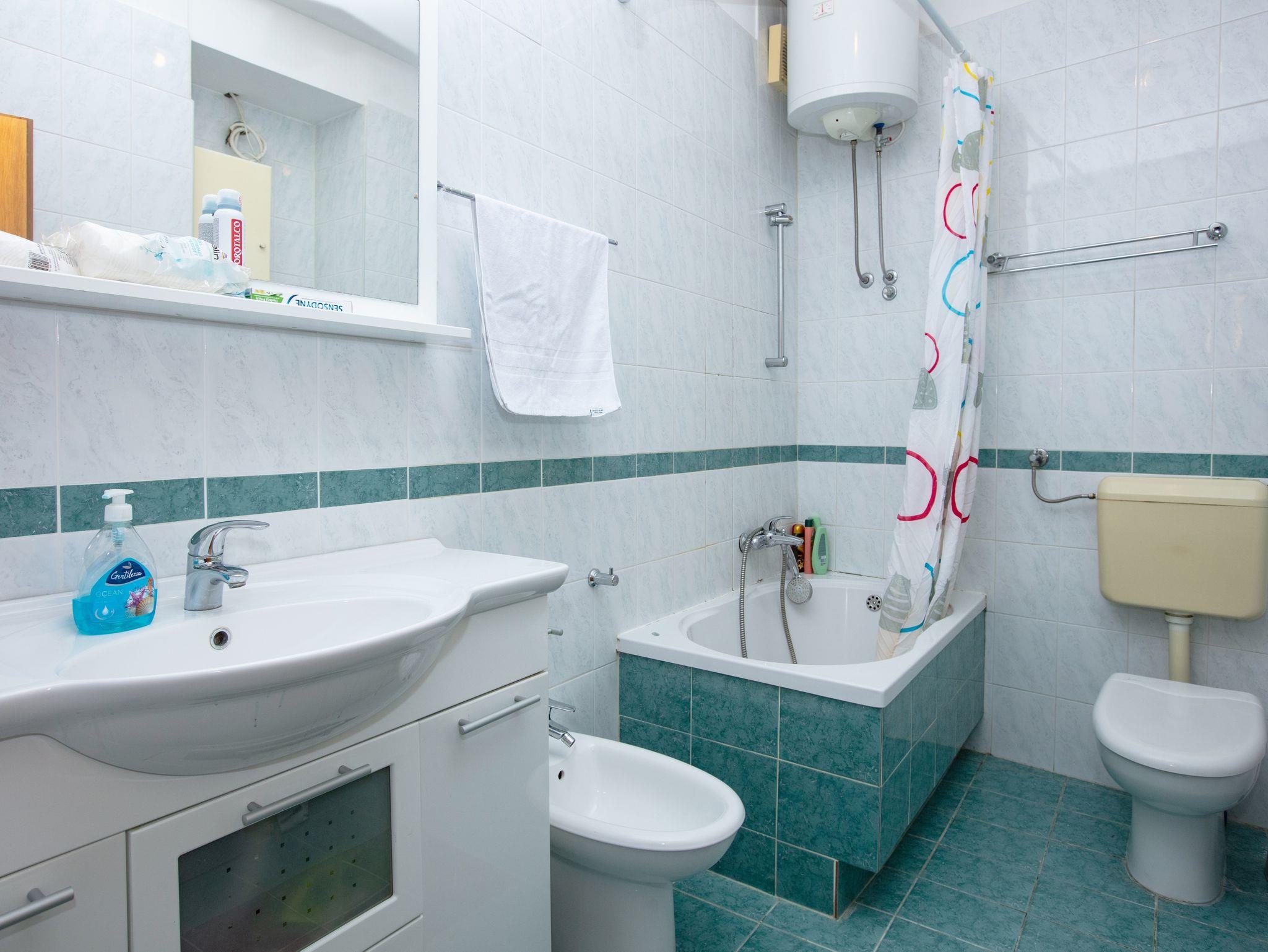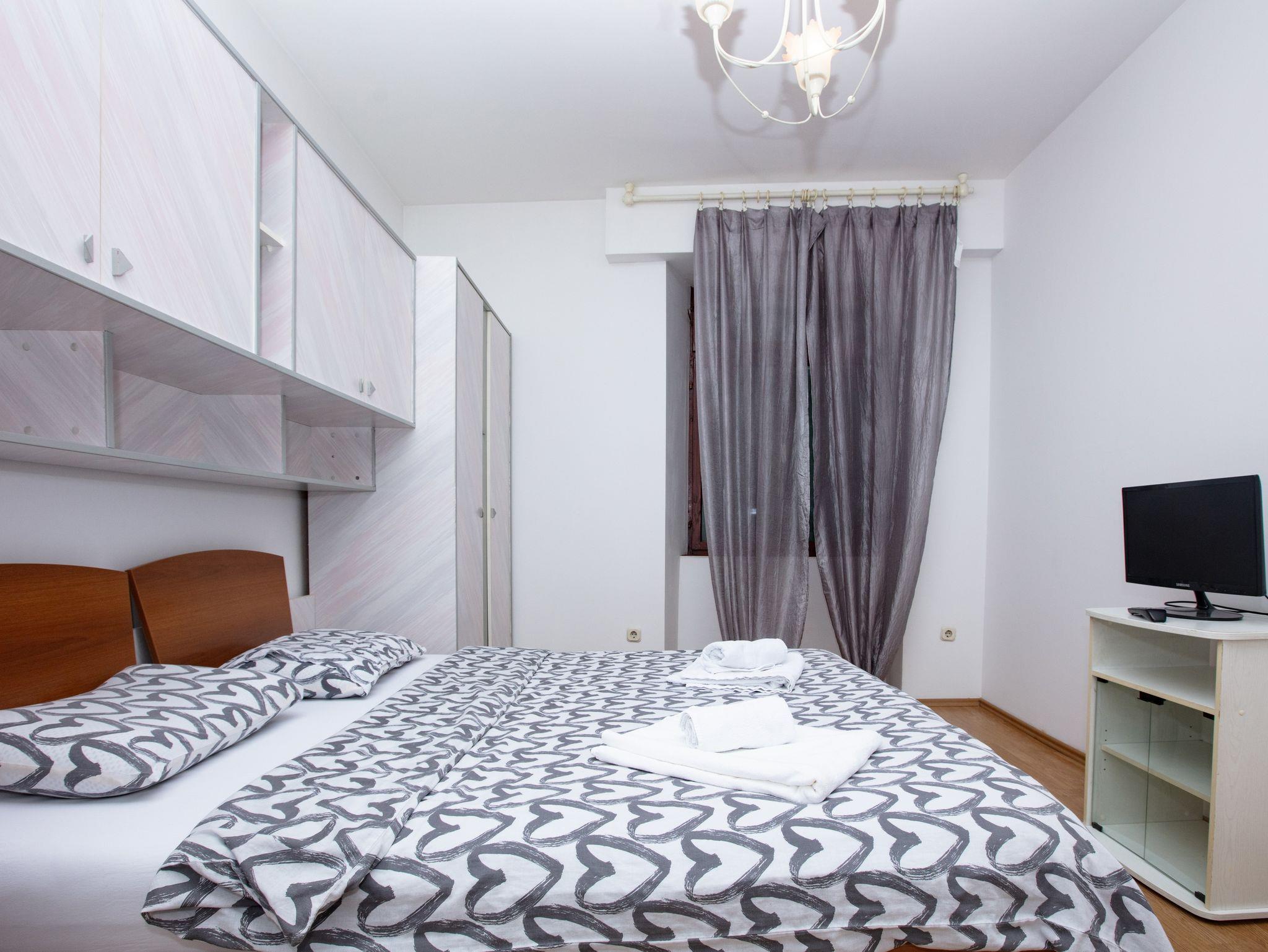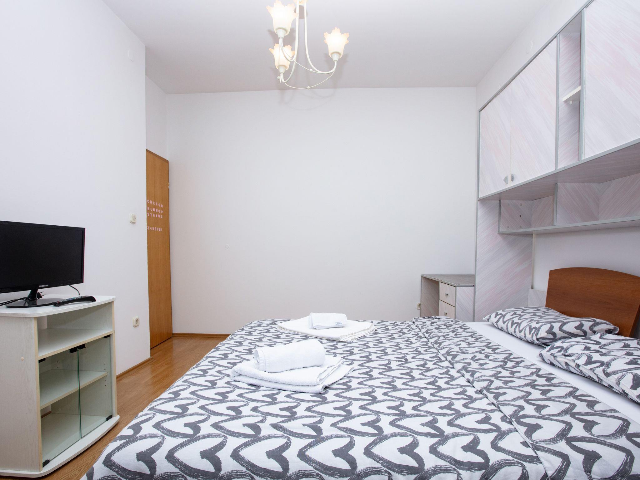 Ferienwohnung bietet Platz für 4 Gäste. Die Betten sind in Schlafzimmern, die es 2 gibt, innerhalb einer Gesamtfläche von 54m2, angeordnet. Die Gäste haben einen eigenen Balkon zur Verfügung, auf der sie in warmen Sommernächten genießen können. IM PREIS INBEGRIFFEN: Kurtaxe, Endreinigung, Klimatisierung, Zentralheizung, Internet, Kinderbett, Bügeleisen, Bügelbrett, Föhn. Die Verfügbarkeit zusätzlicher Dienstleistungen in Ihrem reservierten Termin und die Preise derselben (falls nicht aufgeführt) müssen im Voraus überprüft werden. Zusätzliche Dienstleistungen die in der Zahlungsaufforderung nicht aufgeführt sind werden direkt beim Vermieter bezahlt, angenommen der Gast nutzt auch diese. Ermäßigung auf den Grundpreis: Gratistag 14=13 (bei einem Aufenthalt von 14 Tagen oder mehr erhalten Sie einen Gratistag für den Aufenthalt bis 31.12.26).