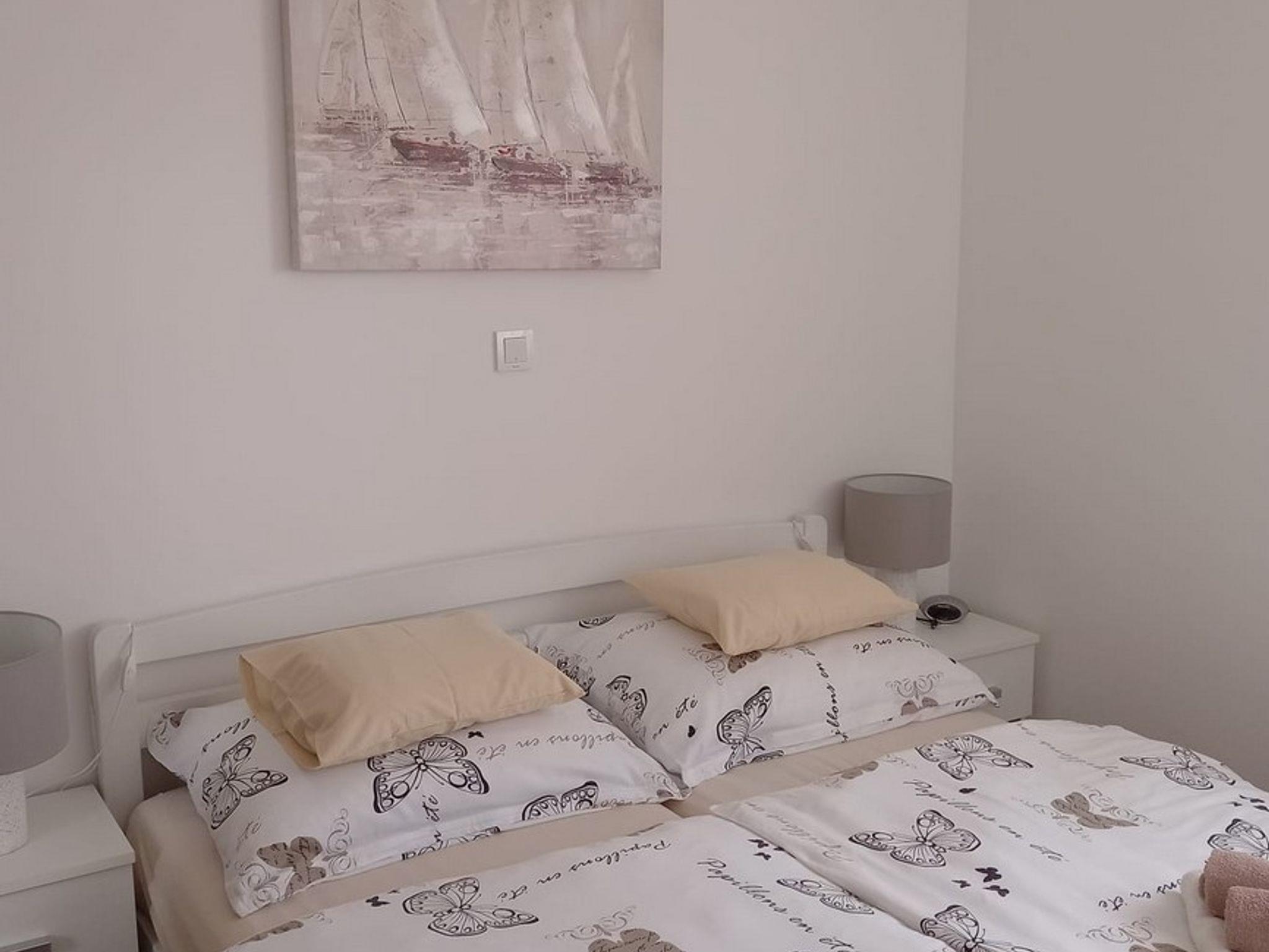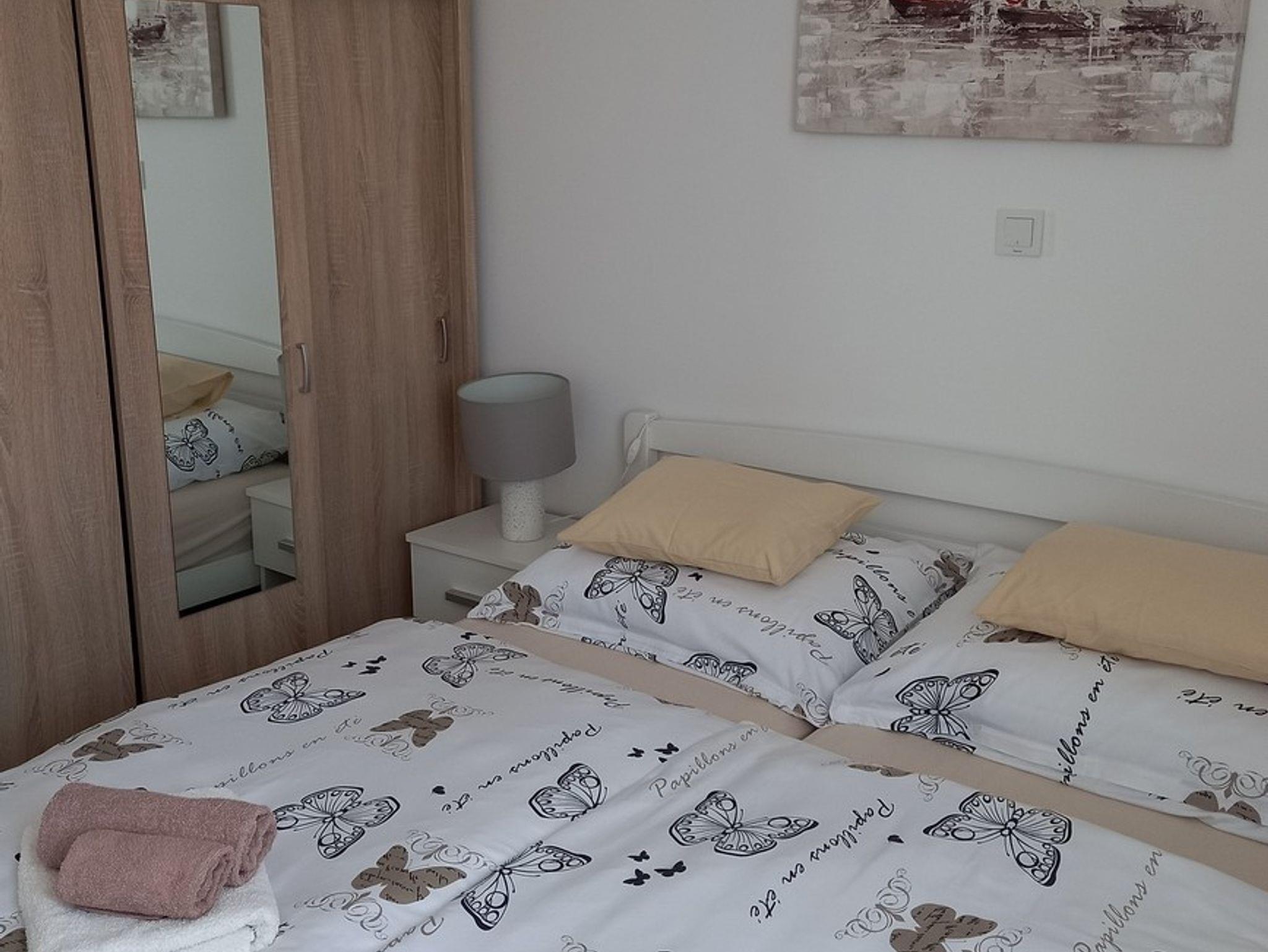 Ferienwohnung bietet Platz für 6 Gäste. Die Betten sind in Schlafzimmern, die es 2 gibt, und in Wohnzimmer, innerhalb einer Gesamtfläche von 50m2, angeordnet. Die Gäste haben einen eigenen Balkon zur Verfügung, auf der sie in warmen Sommernächten genießen können. Das Apartment bietet Meerblick. IM PREIS INBEGRIFFEN: Kurtaxe, Endreinigung, Klimatisierung, Parkplatz, Internet, Bügeleisen, Bügelbrett, Föhn. Die Verfügbarkeit zusätzlicher Dienstleistungen in Ihrem reservierten Termin und die Preise derselben (falls nicht aufgeführt) müssen im Voraus überprüft werden. Zusätzliche Dienstleistungen die in der Zahlungsaufforderung nicht aufgeführt sind werden direkt beim Vermieter bezahlt, angenommen der Gast nutzt auch diese. Ermäßigung auf den Grundpreis: Gratistag 14=13 (bei einem Aufenthalt von 14 Tagen oder mehr erhalten Sie einen Gratistag für den Aufenthalt bis 31.12.26).