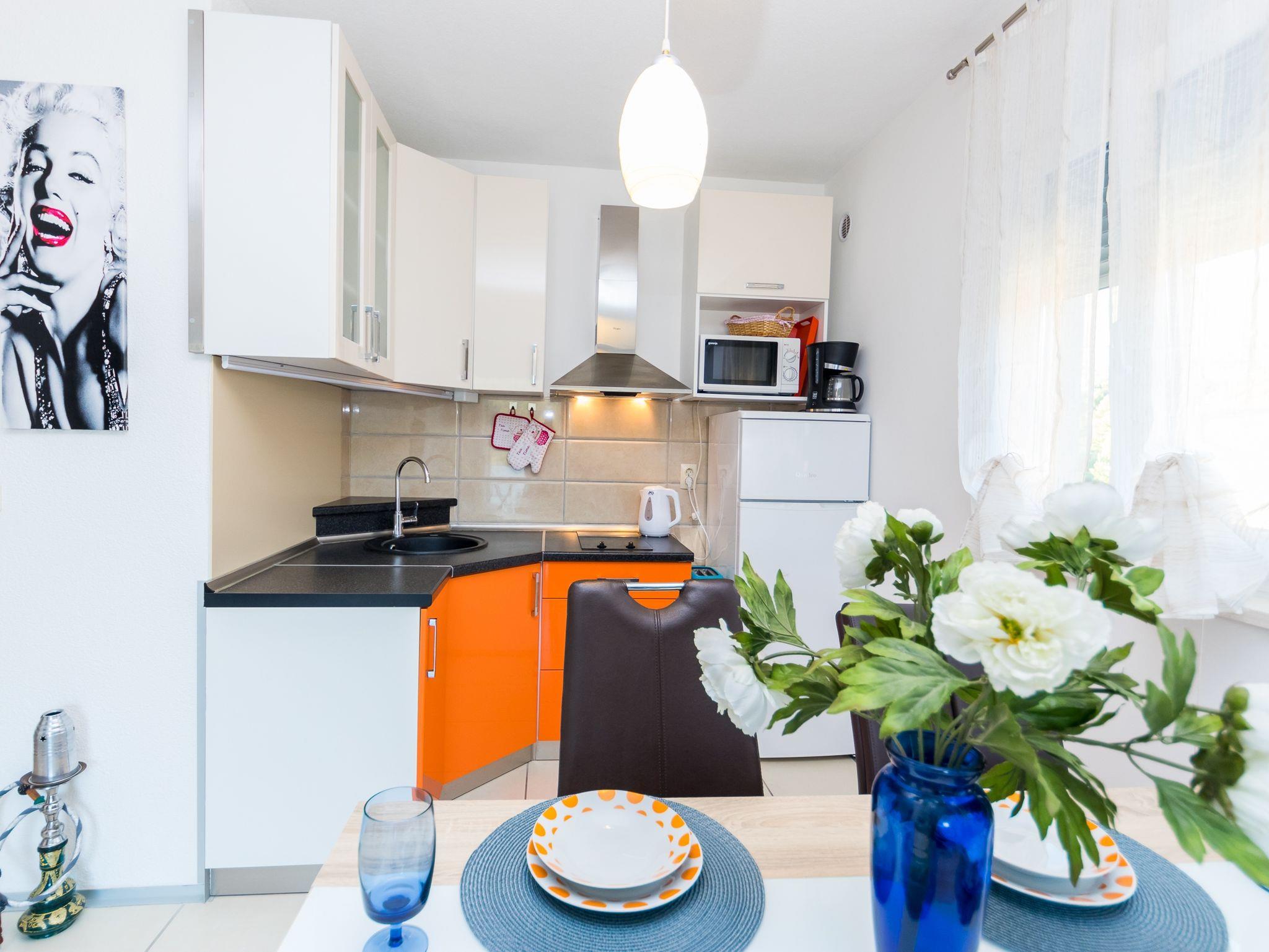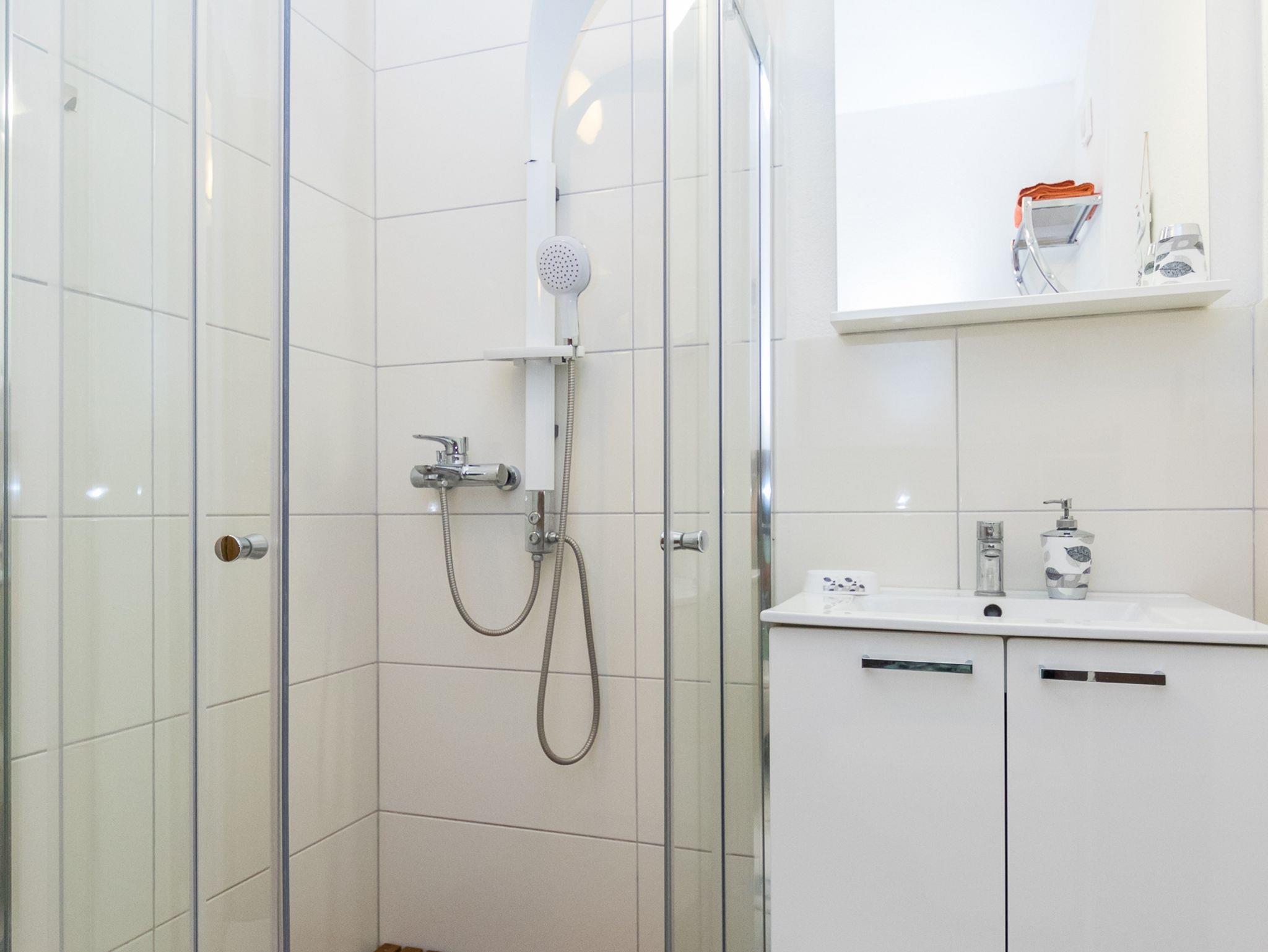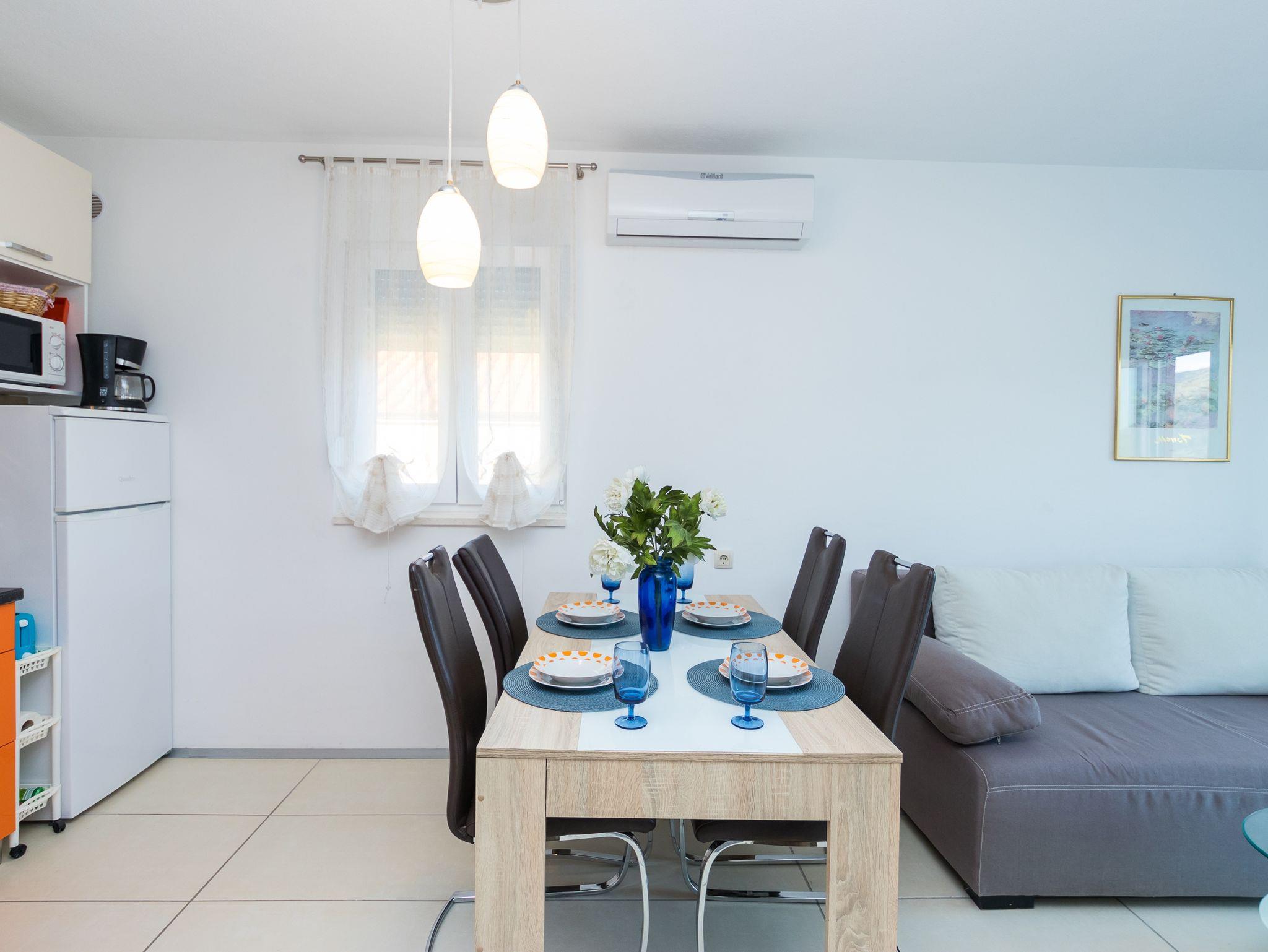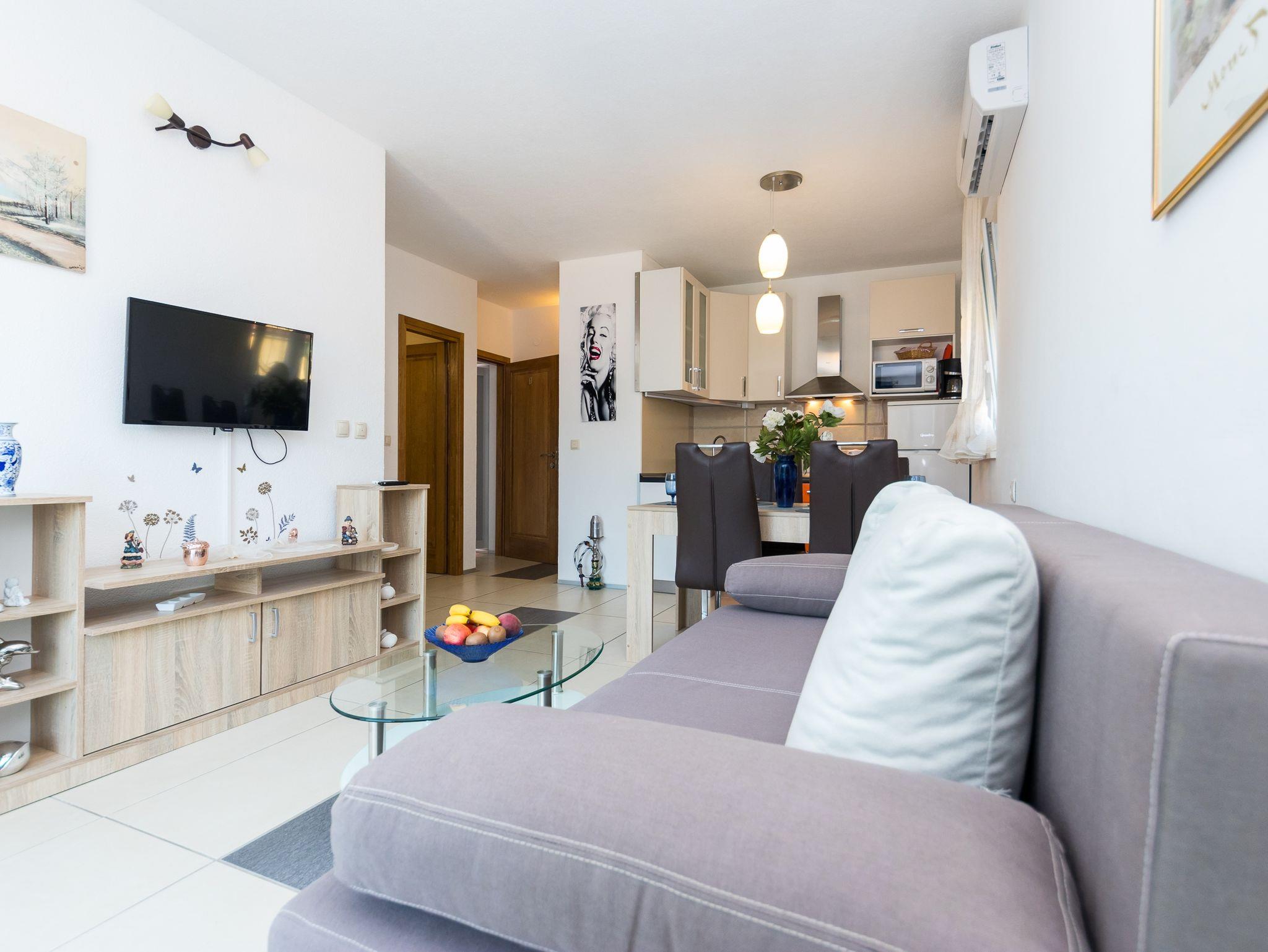 Ferienwohnung bietet Platz für 4 Gäste. Die Betten sind in Schlafzimmern, die es 1 gibt, und in Wohnzimmer, innerhalb einer Gesamtfläche von 34m2, angeordnet. Die Gäste haben eine eigene Terrasse zur Verfügung, auf der sie in warmen Sommernächten genießen können. Das Apartment bietet Meerblick. Es ist erlaubt, Speisen auf dem Gemeinschafts-Grill vorzubereiten. In der Unterkunftseinheit besteht die Möglichkeit des Mitbringens von Haustieren gegen Aufpreis. Räume der gebuchten Unterkunftseinheit werden nicht in eine Ganze verbunden. IM PREIS INBEGRIFFEN: Kurtaxe, Endreinigung, Klimatisierung, Parkplatz, Internet, Bügeleisen, Bügelbrett, Föhn, tragbarer Grill. VERBINDLICHE ZUSÄTZLICHE KOSTEN: Aufzahlung für Kurzaufenthalte (prozentualer Zuschlag pro Nächtigungsanzahl: 30% - 1, 20% - 2, 10% - 3). UNVERBINDLICHE ZUSÄTZLICHE KOSTEN: Wäschewaschen (5,00 € Waschen), Haustiere (5,00 € pro Nacht). Die Verfügbarkeit zusätzlicher Dienstleistungen in Ihrem reservierten Termin und die Preise derselben (falls nicht aufgeführt) müssen im Voraus überprüft werden. Zusätzliche Dienstleistungen die in der Zahlungsaufforderung nicht aufgeführt sind werden direkt beim Vermieter bezahlt, angenommen der Gast nutzt auch diese. Ermäßigung auf den Grundpreis: Gratistag 14=13 (bei einem Aufenthalt von 14 Tagen oder mehr erhalten Sie einen Gratistag für den Aufenthalt bis 31.12.26).