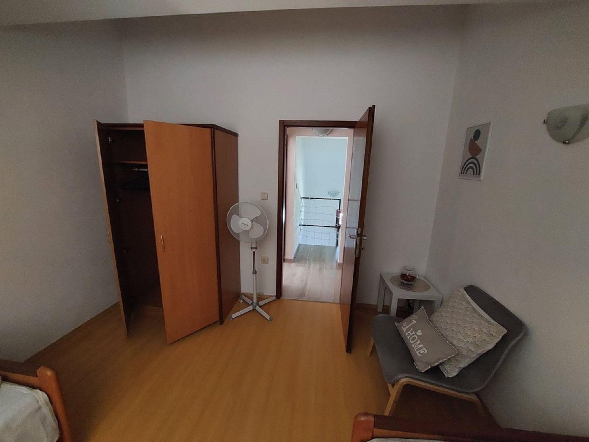 Ferienwohnung bietet Platz für 5 Gäste. Die Betten sind in Schlafzimmern, die es 2 gibt, und in Wohnzimmer, innerhalb einer Gesamtfläche von 52m2, angeordnet. Die Gäste haben einen eigenen Balkon zur Verfügung, auf der sie in warmen Sommernächten genießen können. Es ist erlaubt, Speisen auf dem Gemeinschafts-Grill vorzubereiten. IM PREIS INBEGRIFFEN: Kurtaxe, Endreinigung, Klimatisierung, Parkplatz, Internet, Fahrrad, Zusatzbett, Bügeleisen, Bügelbrett, Föhn. VERBINDLICHE ZUSÄTZLICHE KOSTEN: Aufzahlung für Kurzaufenthalte (prozentualer Zuschlag pro Nächtigungsanzahl: 30% - 1, 20% - 2, 10% - 3). Die Verfügbarkeit zusätzlicher Dienstleistungen in Ihrem reservierten Termin und die Preise derselben (falls nicht aufgeführt) müssen im Voraus überprüft werden. Zusätzliche Dienstleistungen die in der Zahlungsaufforderung nicht aufgeführt sind werden direkt beim Vermieter bezahlt, angenommen der Gast nutzt auch diese. Ermäßigung auf den Grundpreis: Gratistag 28=25 (bei einem Aufenthalt von 28 oder mehr Tagen erhalten Sie 3 kostenlose Tage für den Aufenthalt bis 31.12.26).
