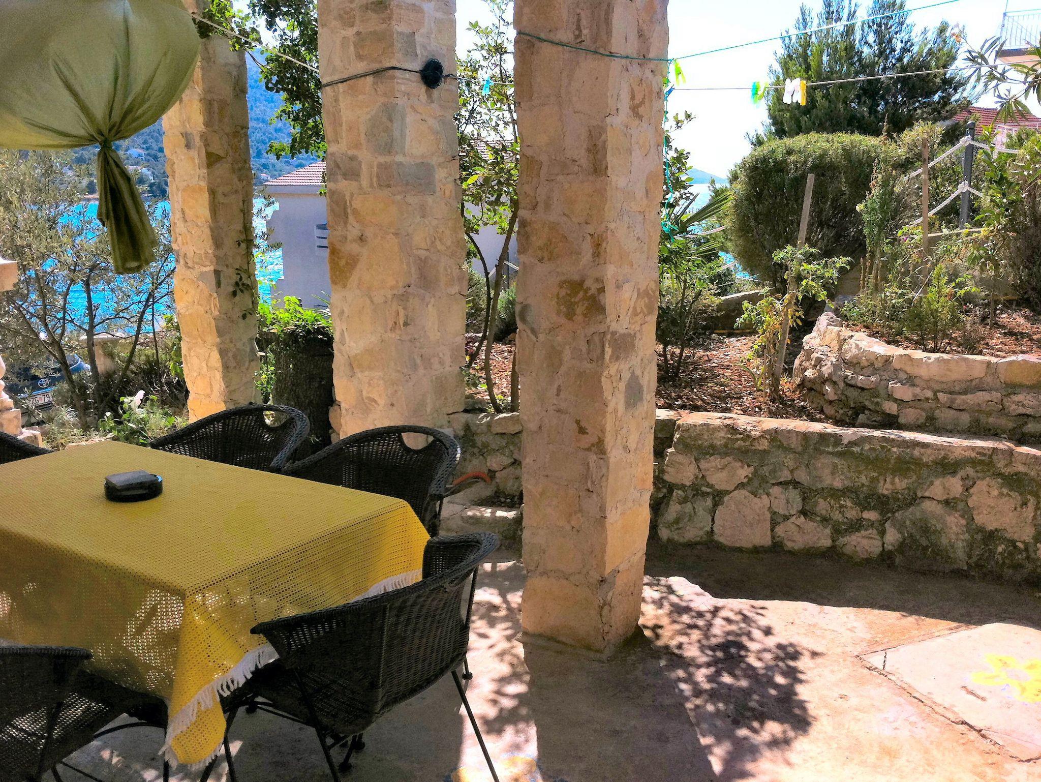 Hof (100m2), Parkplatz (Anzahl der Parkplätze: 4, Entfernung vom Objekt: im Hof), Grill: gemeinsam, WiFi Internet, Bootsanlegeplatz (Entfernung vom Objekt: 50 m, Bootsanlegeplatztyp: Boje), Föhn, Bügeleisen, Bügelbrett, Sonnenschirm, Liegestühle, Kinderbett