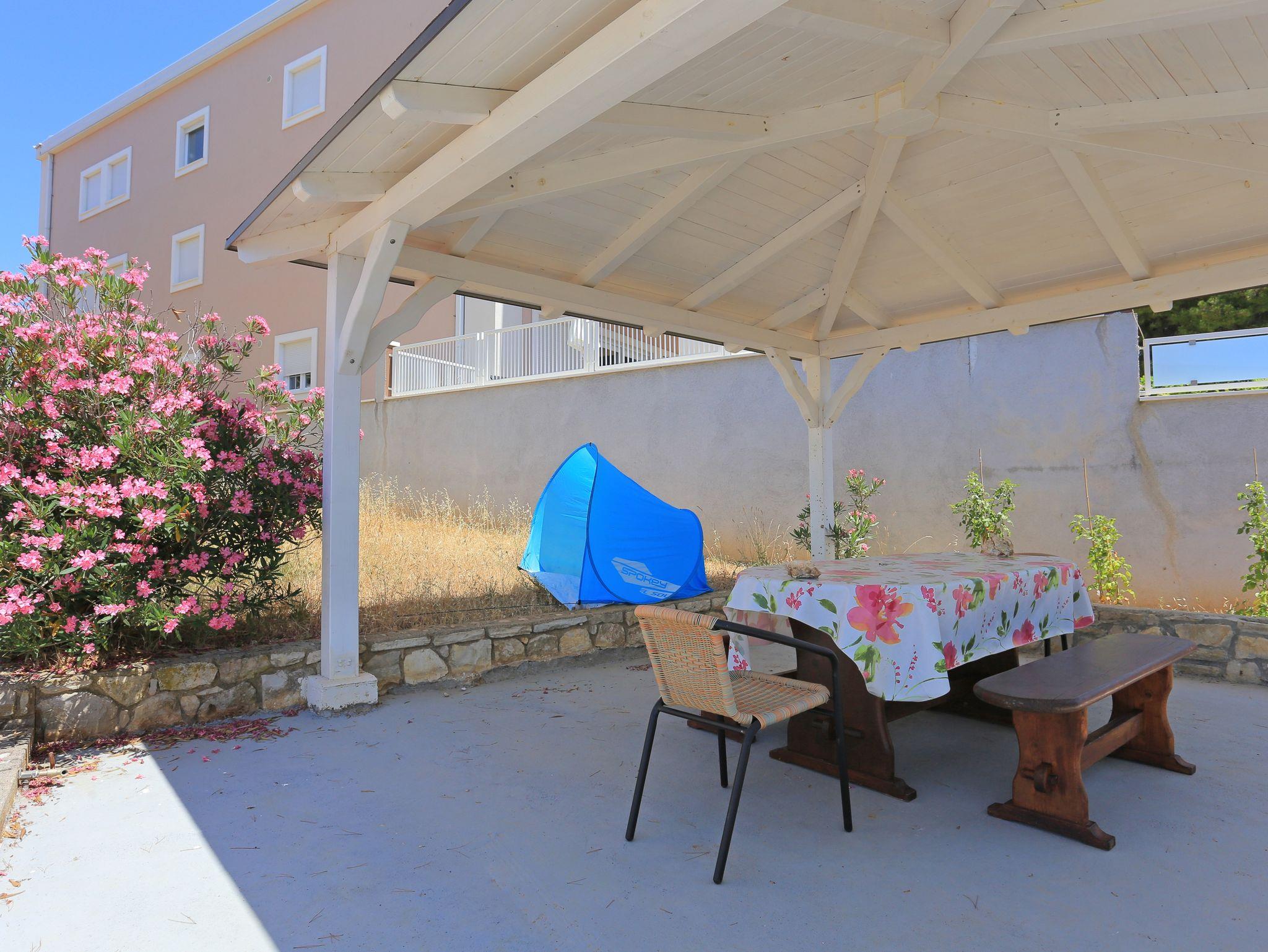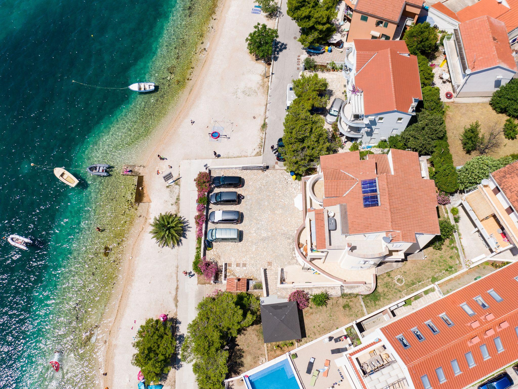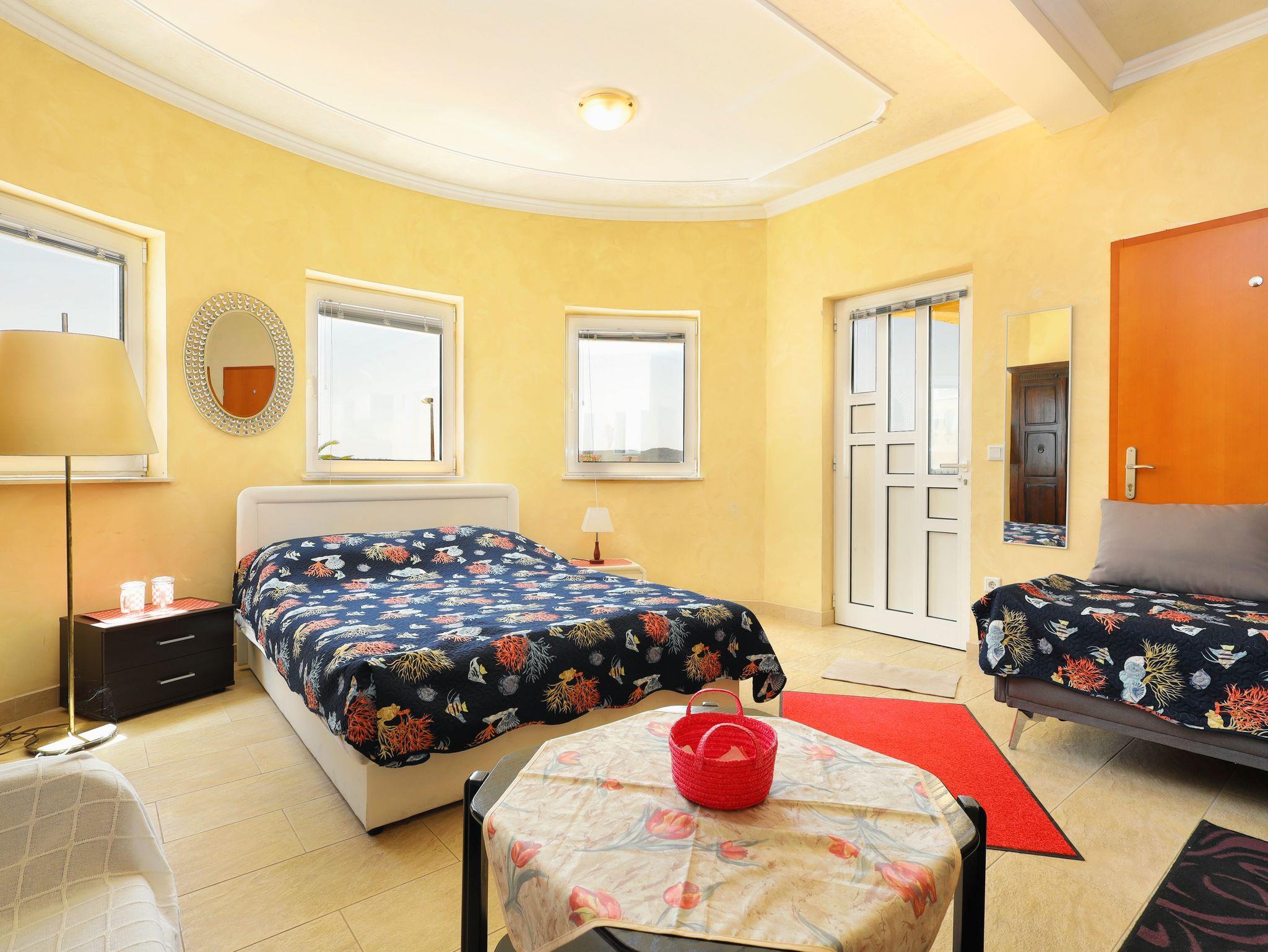 Studio bietet Platz für 2 Gäste. Die Betten sind in Schlafzimmern, die es 1 gibt, innerhalb einer Gesamtfläche von 37m2, angeordnet. Die Gäste haben eine eigene Terrasse zur Verfügung, auf der sie in warmen Sommernächten genießen können. Das Studio-Apartment bietet Meerblick. Es ist erlaubt, Speisen auf dem Gemeinschafts-Grill vorzubereiten. IM PREIS INBEGRIFFEN: Kurtaxe, Endreinigung, Klimatisierung, Parkplatz, Internet, Bootsanlegeplatz, Bügeleisen, Bügelbrett, 1 Bett für Kinder (im Preis enthalten). VERBINDLICHE ZUSÄTZLICHE KOSTEN: Aufzahlung für Kurzaufenthalte (prozentualer Zuschlag pro Nächtigungsanzahl: 30% - 1, 20% - 2, 10% - 3). UNVERBINDLICHE ZUSÄTZLICHE KOSTEN: Wäschewaschen (12,00 € Waschen). Die Verfügbarkeit zusätzlicher Dienstleistungen in Ihrem reservierten Termin und die Preise derselben (falls nicht aufgeführt) müssen im Voraus überprüft werden. Zusätzliche Dienstleistungen die in der Zahlungsaufforderung nicht aufgeführt sind werden direkt beim Vermieter bezahlt, angenommen der Gast nutzt auch diese.