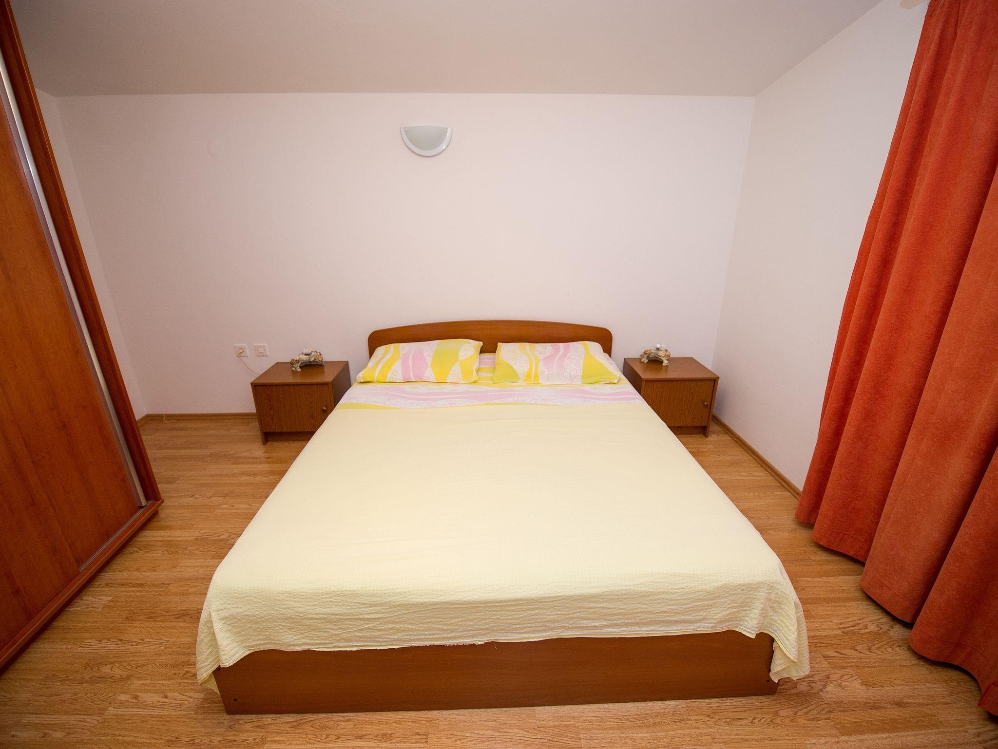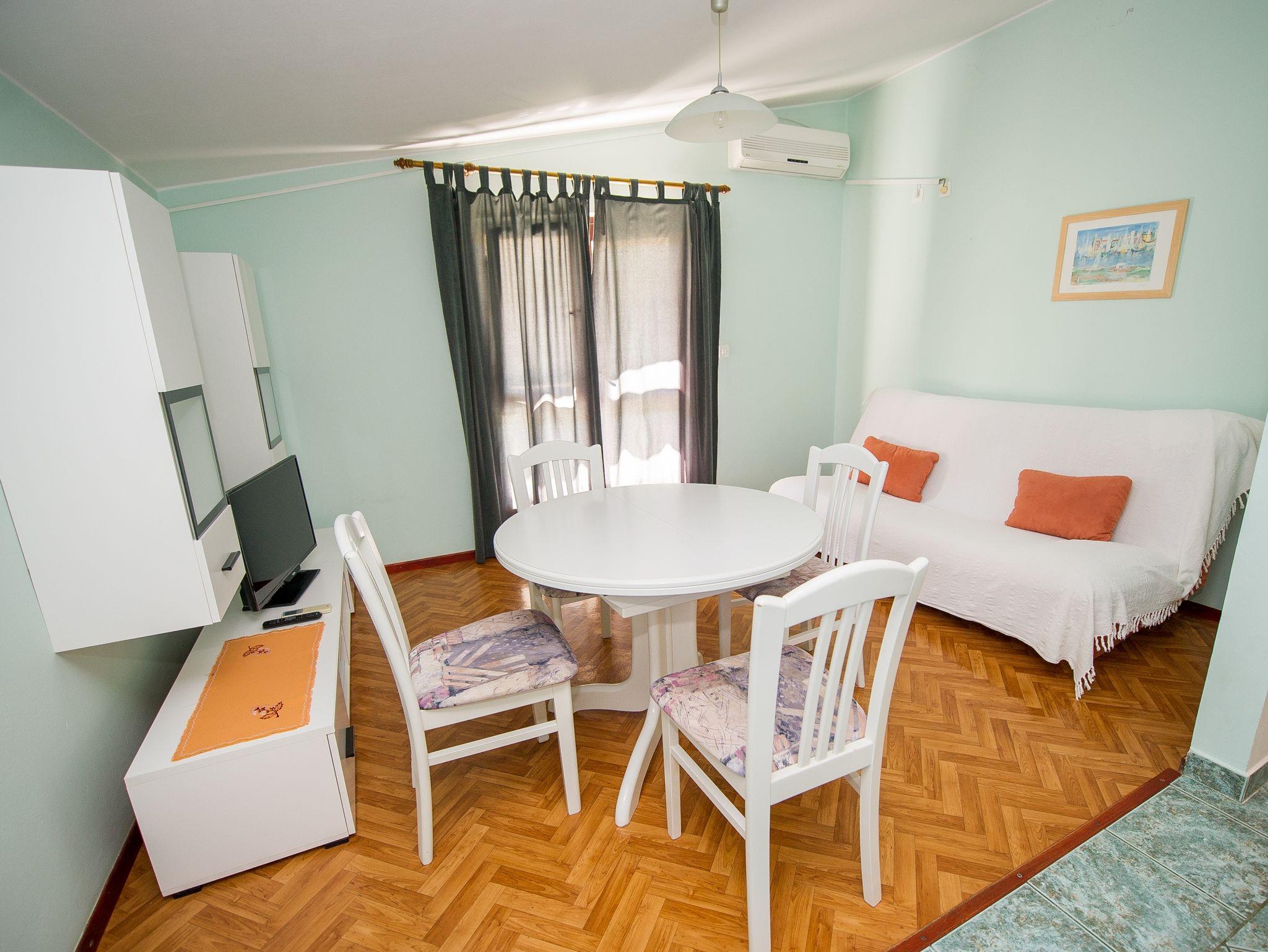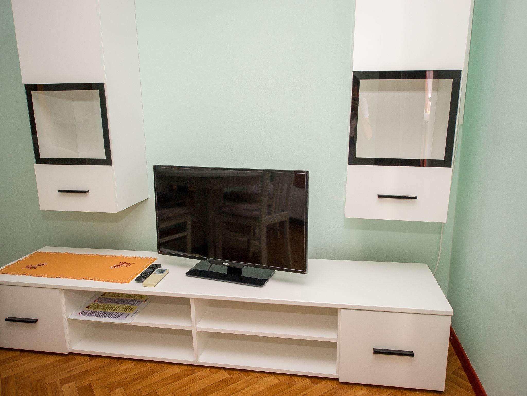 Ferienwohnung bietet Platz für 4 Gäste. Die Betten sind in Schlafzimmern, die es 1 gibt, und in Wohnzimmer, innerhalb einer Gesamtfläche von 48m2, angeordnet. Die Gäste haben einen eigenen Balkon zur Verfügung, auf der sie in warmen Sommernächten genießen können. Das Apartment bietet Meerblick. Es ist erlaubt, Speisen auf dem Gemeinschafts-Grill vorzubereiten. IM PREIS INBEGRIFFEN: Kurtaxe, Endreinigung, Klimatisierung, Parkplatz, Internet, Bootsanlegeplatz, Kinderbett, Föhn. VERBINDLICHE ZUSÄTZLICHE KOSTEN: Aufzahlung für Kurzaufenthalte (prozentualer Zuschlag pro Nächtigungsanzahl: 30% - 1, 20% - 2, 10% - 3). UNVERBINDLICHE ZUSÄTZLICHE KOSTEN: Zusatzbett (10,00 € pro Nacht). Die Verfügbarkeit zusätzlicher Dienstleistungen in Ihrem reservierten Termin und die Preise derselben (falls nicht aufgeführt) müssen im Voraus überprüft werden. Zusätzliche Dienstleistungen die in der Zahlungsaufforderung nicht aufgeführt sind werden direkt beim Vermieter bezahlt, angenommen der Gast nutzt auch diese. Ermäßigung auf den Grundpreis: Gratistag 21=19 (bei einem Aufenthalt von 21 Tagen oder mehr erhalten Sie 2 Gratistage für den Aufenthalt bis 31.12.26).