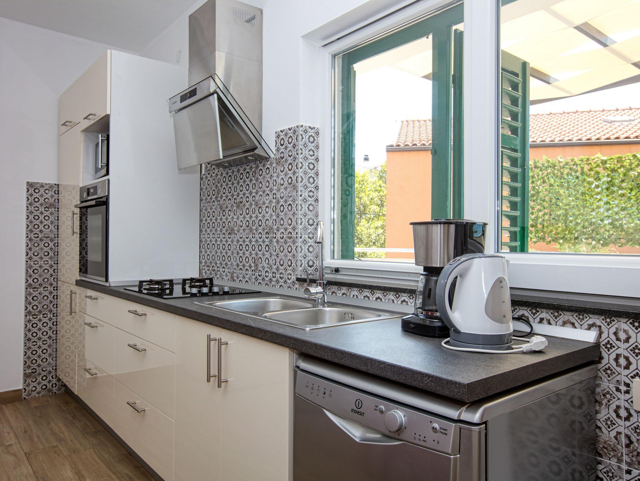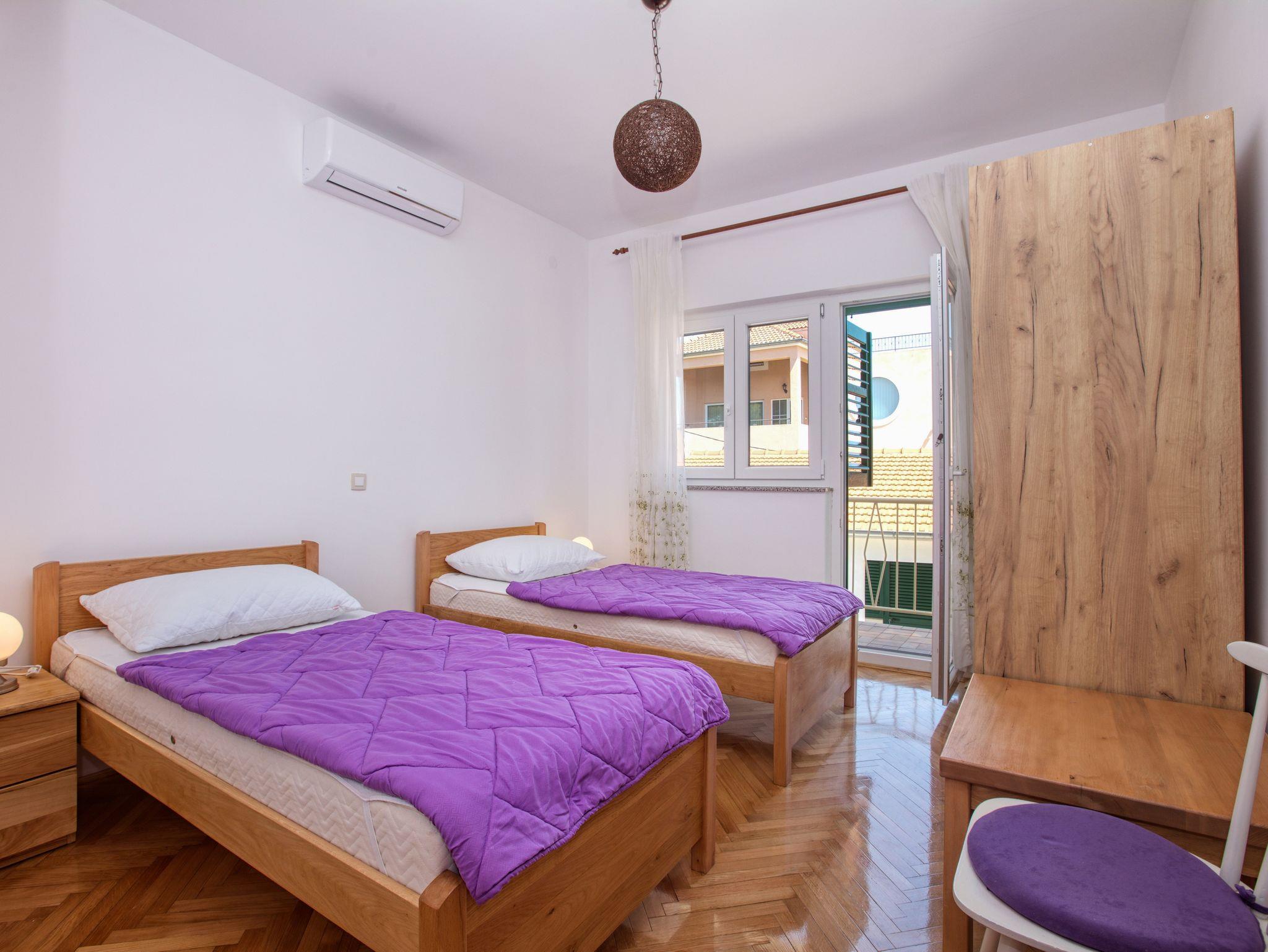 Ferienwohnung bietet Platz für 6 Gäste. Die Betten sind in Schlafzimmern, die es 3 gibt, innerhalb einer Gesamtfläche von 68m2, angeordnet. Die Gäste haben eine eigene Terrasse zur Verfügung, auf der sie in warmen Sommernächten genießen können. Das Apartment bietet Meerblick. Es ist erlaubt, Speisen auf dem Gemeinschafts-Grill vorzubereiten. IM PREIS INBEGRIFFEN: Kurtaxe, Endreinigung, Klimatisierung, Parkplatz, Internet, Wäschewaschen, Bügeleisen, Bügelbrett. VERBINDLICHE ZUSÄTZLICHE KOSTEN: Aufzahlung für Kurzaufenthalte (prozentualer Zuschlag pro Nächtigungsanzahl: 30% - 1, 20% - 2, 10% - 3). Die Verfügbarkeit zusätzlicher Dienstleistungen in Ihrem reservierten Termin und die Preise derselben (falls nicht aufgeführt) müssen im Voraus überprüft werden. Zusätzliche Dienstleistungen die in der Zahlungsaufforderung nicht aufgeführt sind werden direkt beim Vermieter bezahlt, angenommen der Gast nutzt auch diese.
