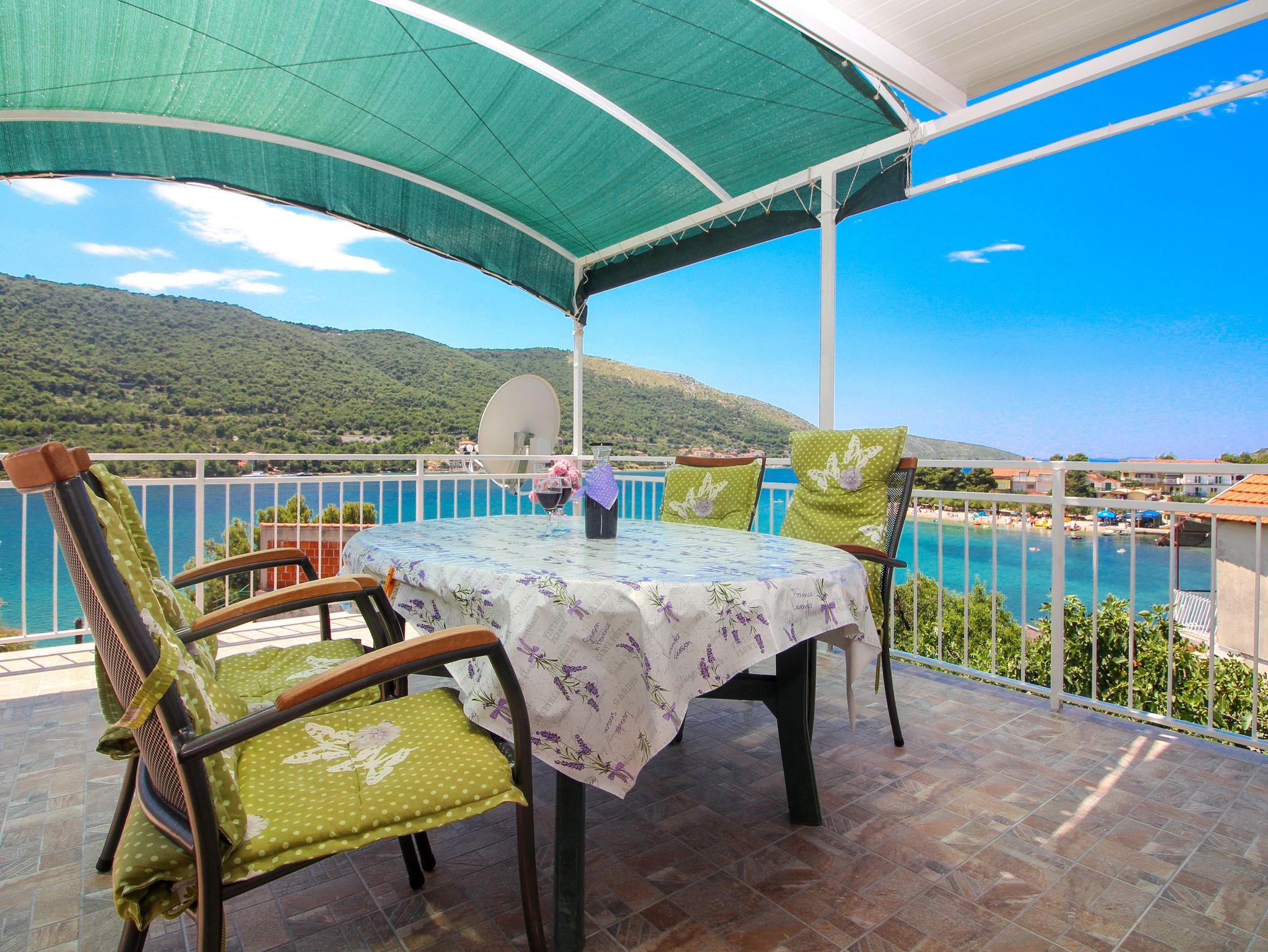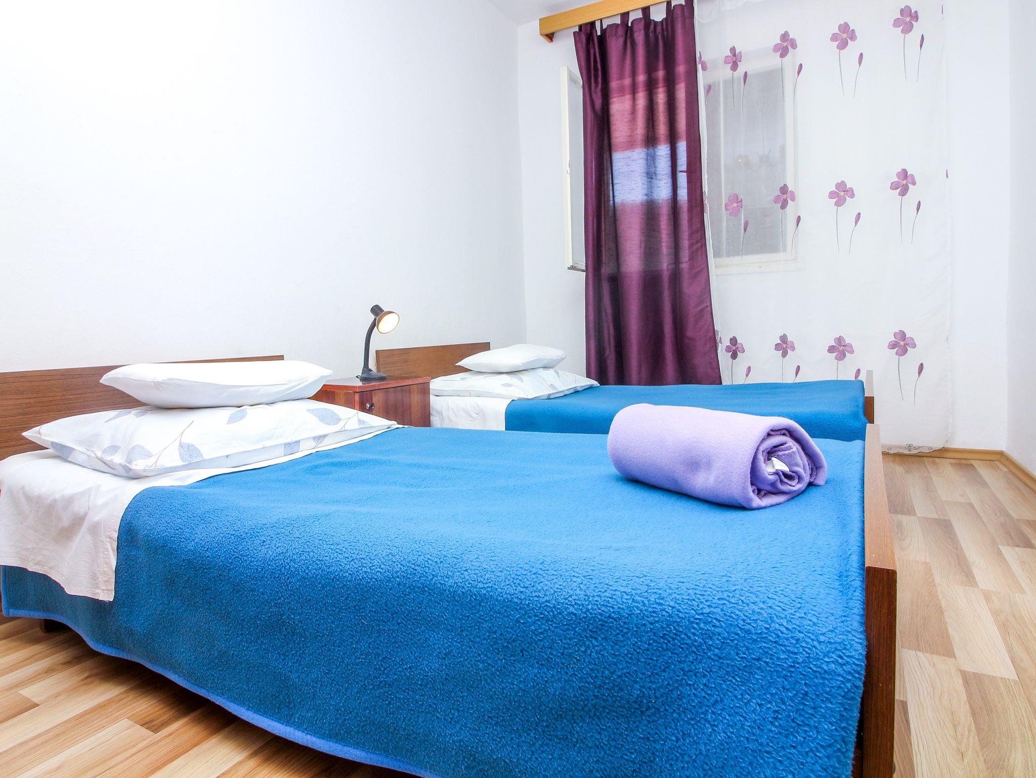 Ferienwohnung bietet Platz für 4 Gäste. Die Betten sind in Schlafzimmern, die es 2 gibt, innerhalb einer Gesamtfläche von 41m2, angeordnet. Die Gäste haben eine eigene Terrasse zur Verfügung, auf der sie in warmen Sommernächten genießen können. Das Apartment bietet Meerblick. Es ist erlaubt, Speisen auf dem Gemeinschafts-Grill vorzubereiten. IM PREIS INBEGRIFFEN: Kurtaxe, Endreinigung, Klimatisierung, Parkplatz, Internet, Kinderbett, Liegestühle. VERBINDLICHE ZUSÄTZLICHE KOSTEN: Aufzahlung für Kurzaufenthalte (prozentualer Zuschlag pro Nächtigungsanzahl: 30% - 1, 20% - 2, 10% - 3). UNVERBINDLICHE ZUSÄTZLICHE KOSTEN: Bootsanlegeplatz (7,00 € pro Nacht). Die Verfügbarkeit zusätzlicher Dienstleistungen in Ihrem reservierten Termin und die Preise derselben (falls nicht aufgeführt) müssen im Voraus überprüft werden. Zusätzliche Dienstleistungen die in der Zahlungsaufforderung nicht aufgeführt sind werden direkt beim Vermieter bezahlt, angenommen der Gast nutzt auch diese. Ermäßigung auf den Grundpreis: Gratistag 14=13 (bei einem Aufenthalt von 14 Tagen oder mehr erhalten Sie einen Gratistag für den Aufenthalt bis 31.12.26).