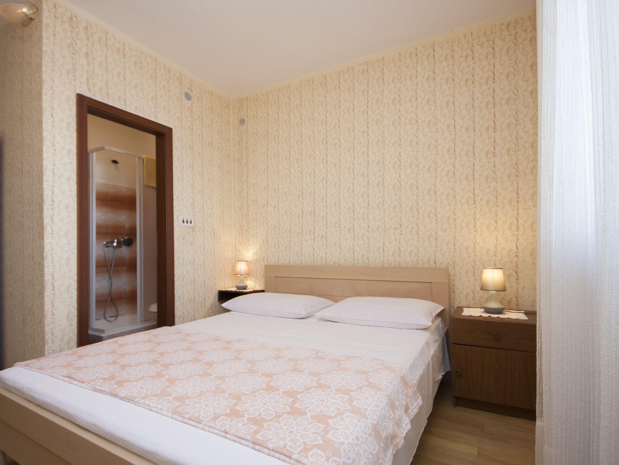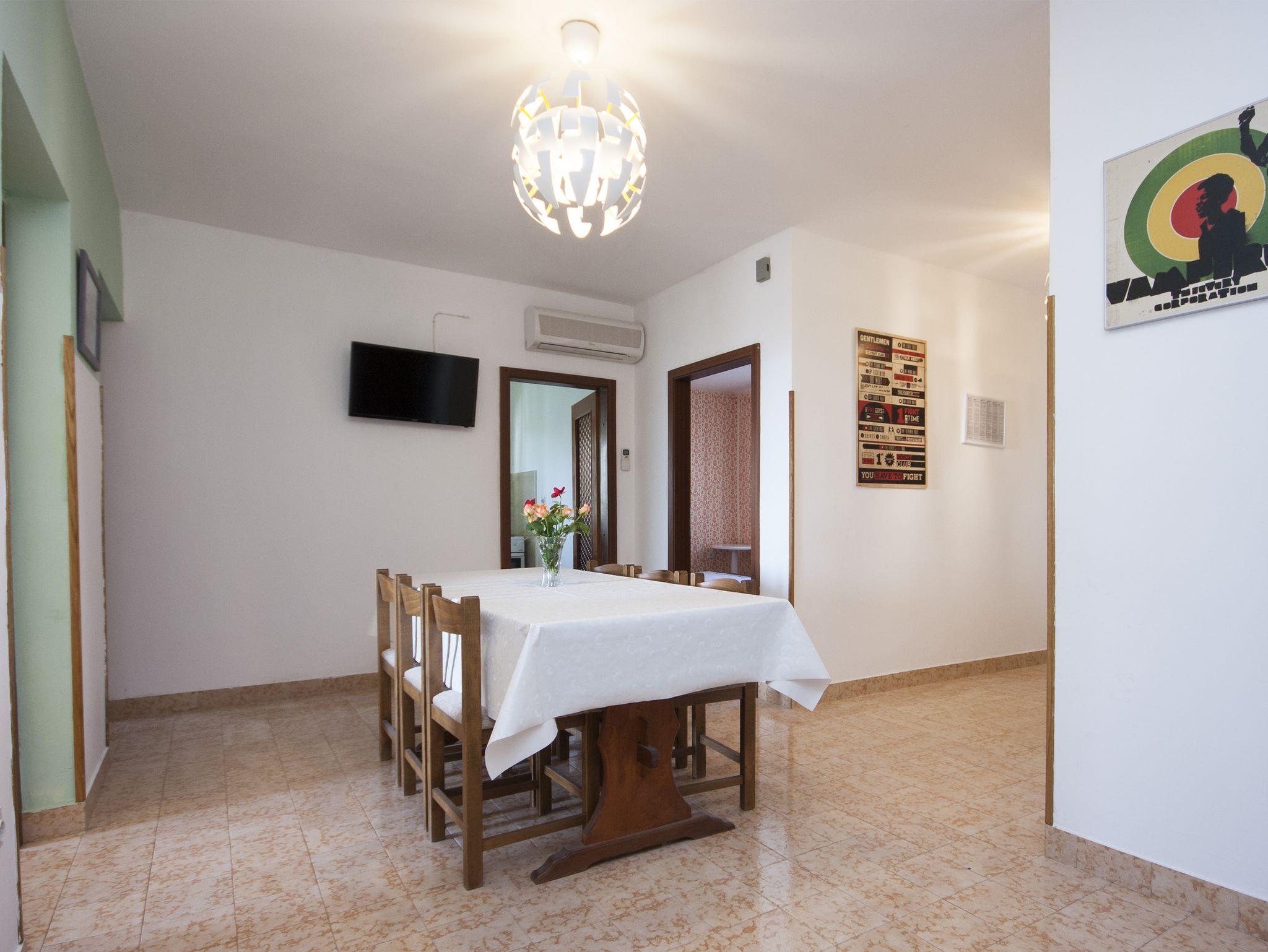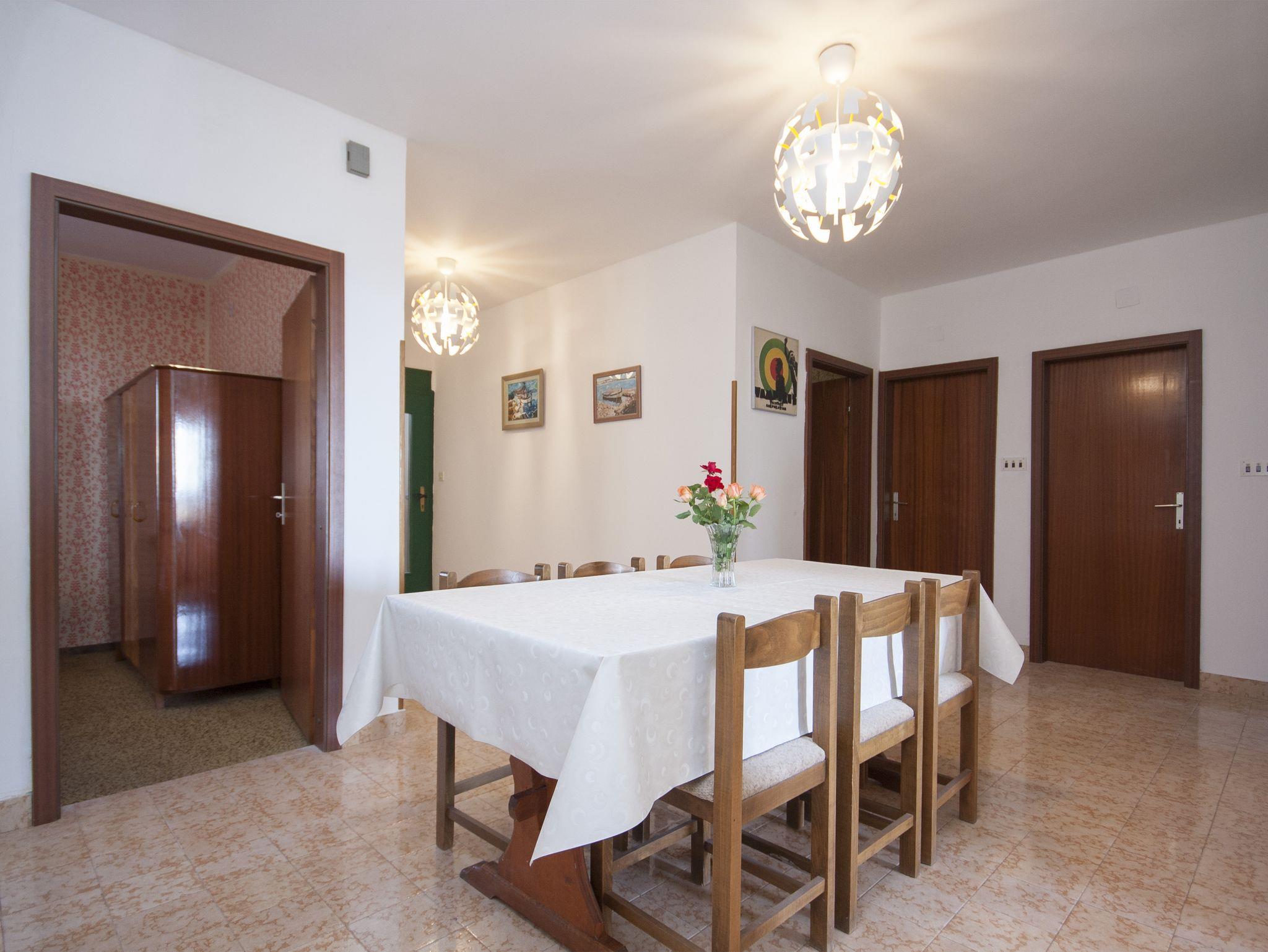 Ferienwohnung bietet Platz für 10 Gäste. Die Betten sind in Schlafzimmern, die es 5 gibt, innerhalb einer Gesamtfläche von 111m2, angeordnet. Die Gäste haben eine eigene Terrasse zur Verfügung, auf der sie in warmen Sommernächten genießen können. Das Apartment bietet Meerblick. Es ist erlaubt, Speisen auf dem Gemeinschafts-Grill vorzubereiten. IM PREIS INBEGRIFFEN: Kurtaxe, Endreinigung, Klimatisierung, Parkplatz, Internet. VERBINDLICHE ZUSÄTZLICHE KOSTEN: Aufzahlung für Kurzaufenthalte (prozentualer Zuschlag pro Nächtigungsanzahl: 30% - 1, 20% - 2, 10% - 3). UNVERBINDLICHE ZUSÄTZLICHE KOSTEN: Wäschewaschen (5,00 € Waschen). Die Verfügbarkeit zusätzlicher Dienstleistungen in Ihrem reservierten Termin und die Preise derselben (falls nicht aufgeführt) müssen im Voraus überprüft werden. Zusätzliche Dienstleistungen die in der Zahlungsaufforderung nicht aufgeführt sind werden direkt beim Vermieter bezahlt, angenommen der Gast nutzt auch diese.