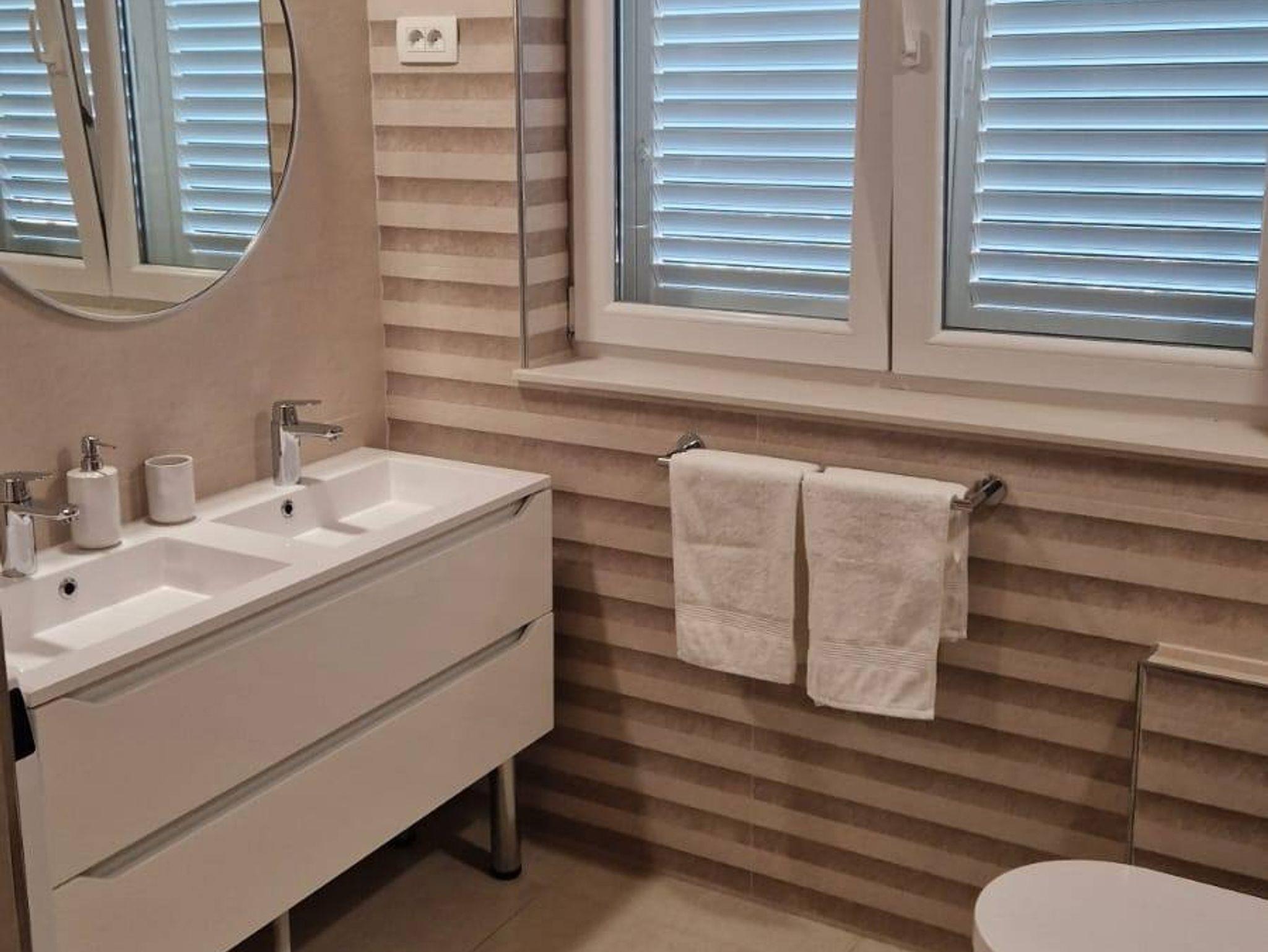 Ferienwohnung bietet Platz für 2 Gäste. Die Betten sind in Schlafzimmern, die es 1 gibt, innerhalb einer Gesamtfläche von 38m2, angeordnet. Die Gäste haben eine eigene Terrasse zur Verfügung, auf der sie in warmen Sommernächten genießen können. Das Apartment bietet Meerblick. Es ist erlaubt, Speisen auf dem Gemeinschafts-Grill vorzubereiten. IM PREIS INBEGRIFFEN: Kurtaxe, Endreinigung, Klimatisierung, Parkplatz, Internet, Bootsanlegeplatz, Kinderbett, Bügeleisen, Bügelbrett, Föhn, 1 Bett für Kinder (im Preis enthalten). VERBINDLICHE ZUSÄTZLICHE KOSTEN: Aufzahlung für Kurzaufenthalte (prozentualer Zuschlag pro Nächtigungsanzahl: 30% - 1, 20% - 2, 10% - 3). Die Verfügbarkeit zusätzlicher Dienstleistungen in Ihrem reservierten Termin und die Preise derselben (falls nicht aufgeführt) müssen im Voraus überprüft werden. Zusätzliche Dienstleistungen die in der Zahlungsaufforderung nicht aufgeführt sind werden direkt beim Vermieter bezahlt, angenommen der Gast nutzt auch diese. Ermäßigung auf den Grundpreis: Gratistag 14=13 (bei einem Aufenthalt von 14 Tagen oder mehr erhalten Sie einen Gratistag für den Aufenthalt bis 31.12.26).