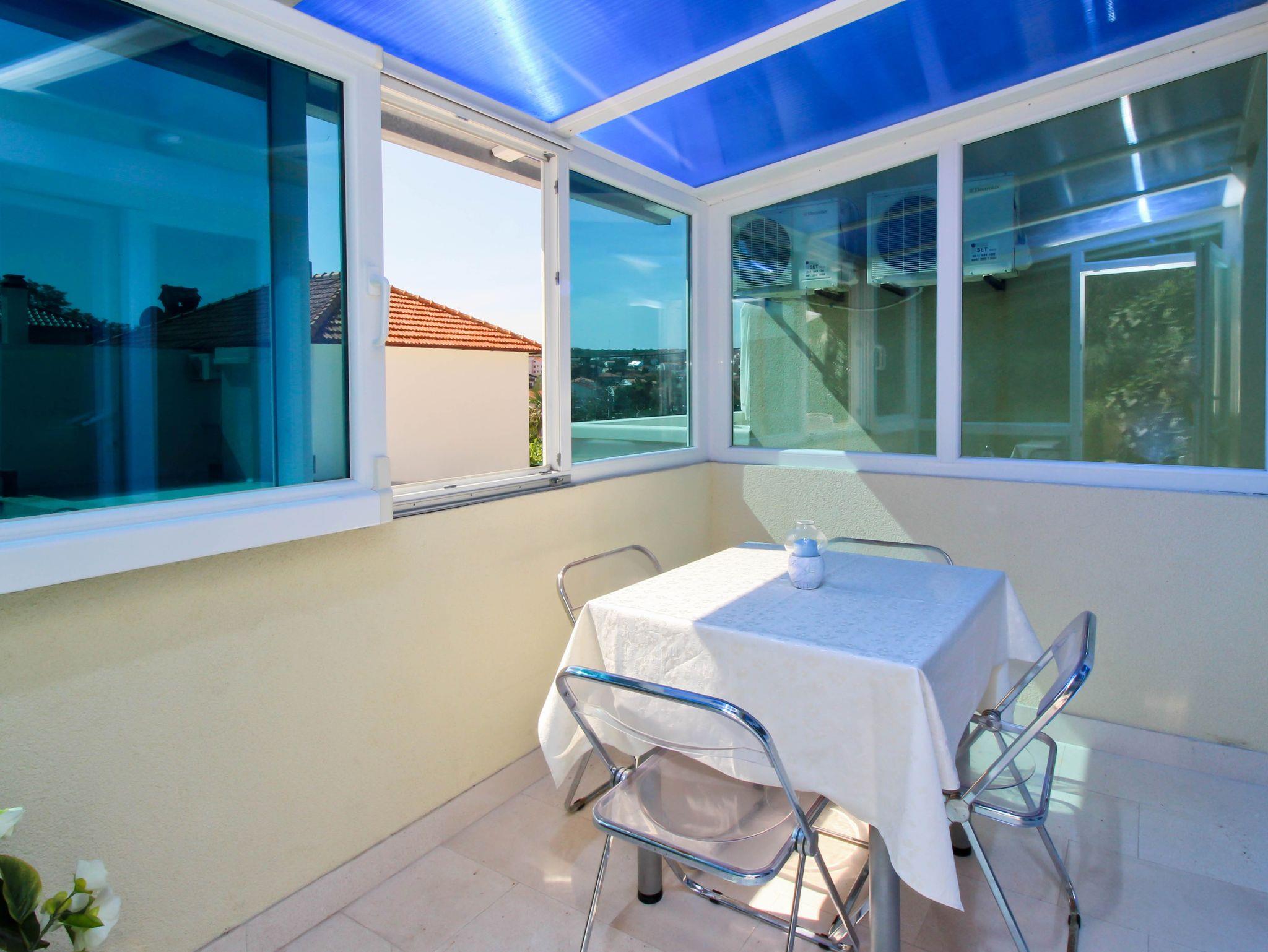 Ferienwohnung bietet Platz für 5 Gäste. Die Betten sind in Schlafzimmern, die es 2 gibt, und in Wohnzimmer, innerhalb einer Gesamtfläche von 42m2, angeordnet. Die Gäste haben eine eigene Terrasse zur Verfügung, auf der sie in warmen Sommernächten genießen können. Das Apartment bietet Meerblick. Es ist erlaubt, Speisen auf dem Gemeinschafts-Grill vorzubereiten. IM PREIS INBEGRIFFEN: Kurtaxe, Endreinigung, Klimatisierung, Parkplatz, Internet, Föhn. Die Verfügbarkeit zusätzlicher Dienstleistungen in Ihrem reservierten Termin und die Preise derselben (falls nicht aufgeführt) müssen im Voraus überprüft werden. Zusätzliche Dienstleistungen die in der Zahlungsaufforderung nicht aufgeführt sind werden direkt beim Vermieter bezahlt, angenommen der Gast nutzt auch diese.