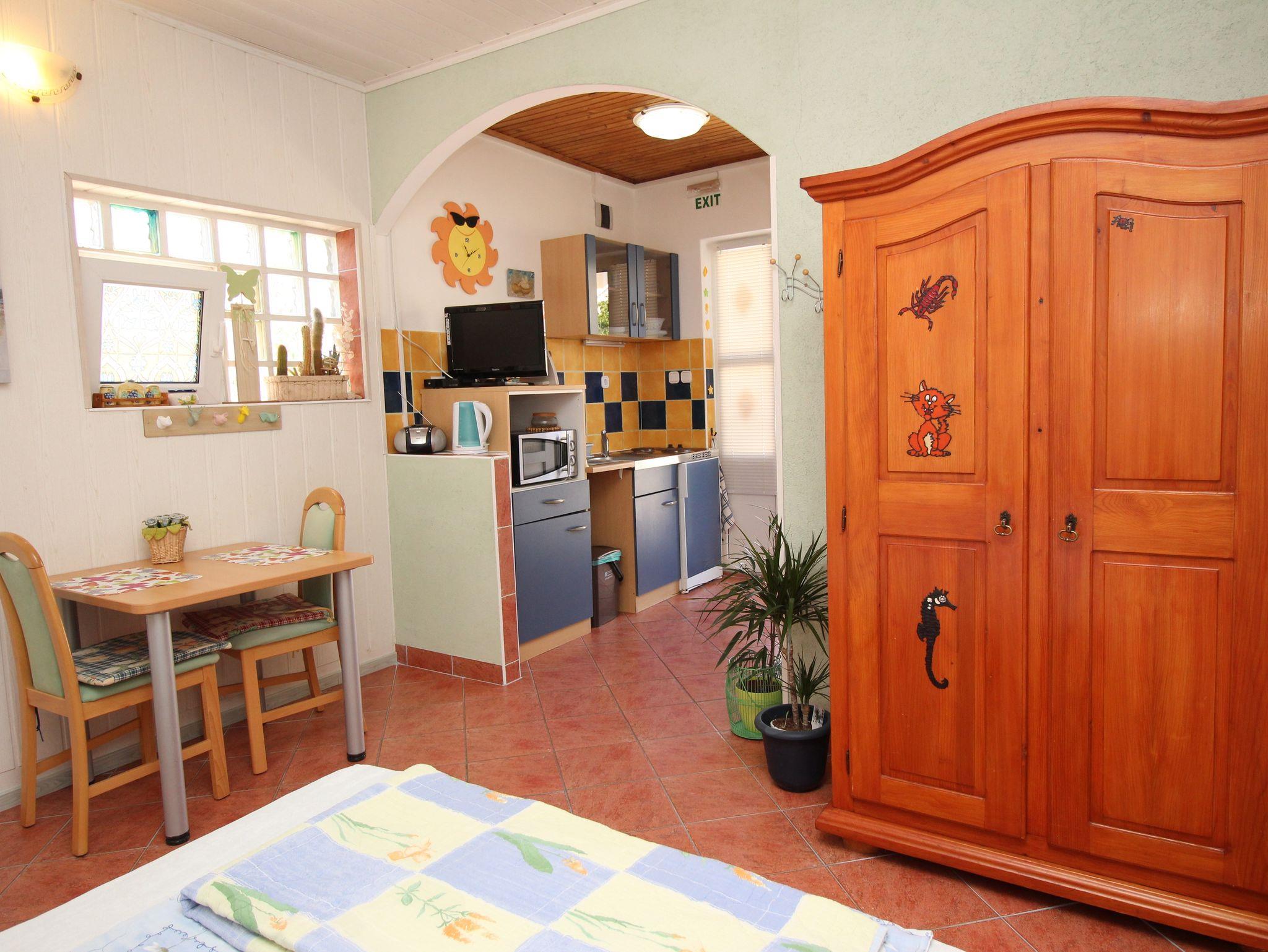 Studio bietet Platz für 2 Gäste. Die Betten sind in Schlafzimmern, die es 1 gibt, innerhalb einer Gesamtfläche von 20m2, angeordnet. Die Gäste haben einen eigenen Balkon zur Verfügung, auf der sie in warmen Sommernächten genießen können. Das Studio-Apartment bietet Meerblick. Es ist erlaubt, Speisen auf dem Gemeinschafts-Grill vorzubereiten. In der Unterkunftseinheit besteht die Möglichkeit des Mitbringens von Haustieren gegen Aufpreis. IM PREIS INBEGRIFFEN: Kurtaxe, Endreinigung, Klimatisierung, Parkplatz, Internet. UNVERBINDLICHE ZUSÄTZLICHE KOSTEN: Haustiere (10,00 € pro Nacht). Die Verfügbarkeit zusätzlicher Dienstleistungen in Ihrem reservierten Termin und die Preise derselben (falls nicht aufgeführt) müssen im Voraus überprüft werden. Zusätzliche Dienstleistungen die in der Zahlungsaufforderung nicht aufgeführt sind werden direkt beim Vermieter bezahlt, angenommen der Gast nutzt auch diese.