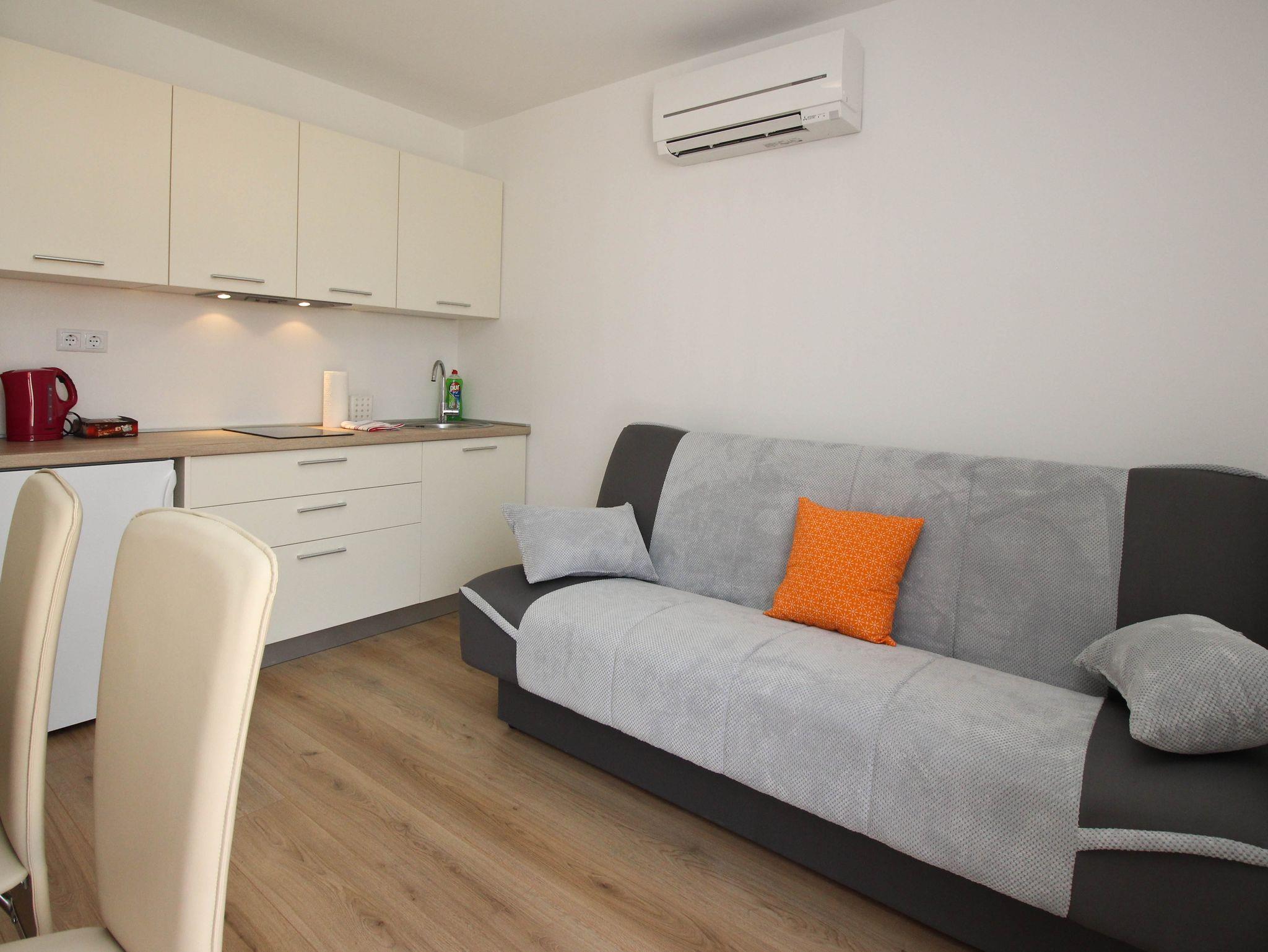 Ferienwohnung bietet Platz für 4 Gäste. Die Betten sind in Schlafzimmern, die es 1 gibt, und in Wohnzimmer, innerhalb einer Gesamtfläche von 28m2, angeordnet. Die Gäste haben einen eigenen Balkon zur Verfügung, auf der sie in warmen Sommernächten genießen können. Das Apartment bietet Meerblick. Es ist erlaubt, Speisen auf dem Gemeinschafts-Grill vorzubereiten. IM PREIS INBEGRIFFEN: Kurtaxe, Endreinigung, Klimatisierung, Parkplatz, Internet. Die Verfügbarkeit zusätzlicher Dienstleistungen in Ihrem reservierten Termin und die Preise derselben (falls nicht aufgeführt) müssen im Voraus überprüft werden. Zusätzliche Dienstleistungen die in der Zahlungsaufforderung nicht aufgeführt sind werden direkt beim Vermieter bezahlt, angenommen der Gast nutzt auch diese.