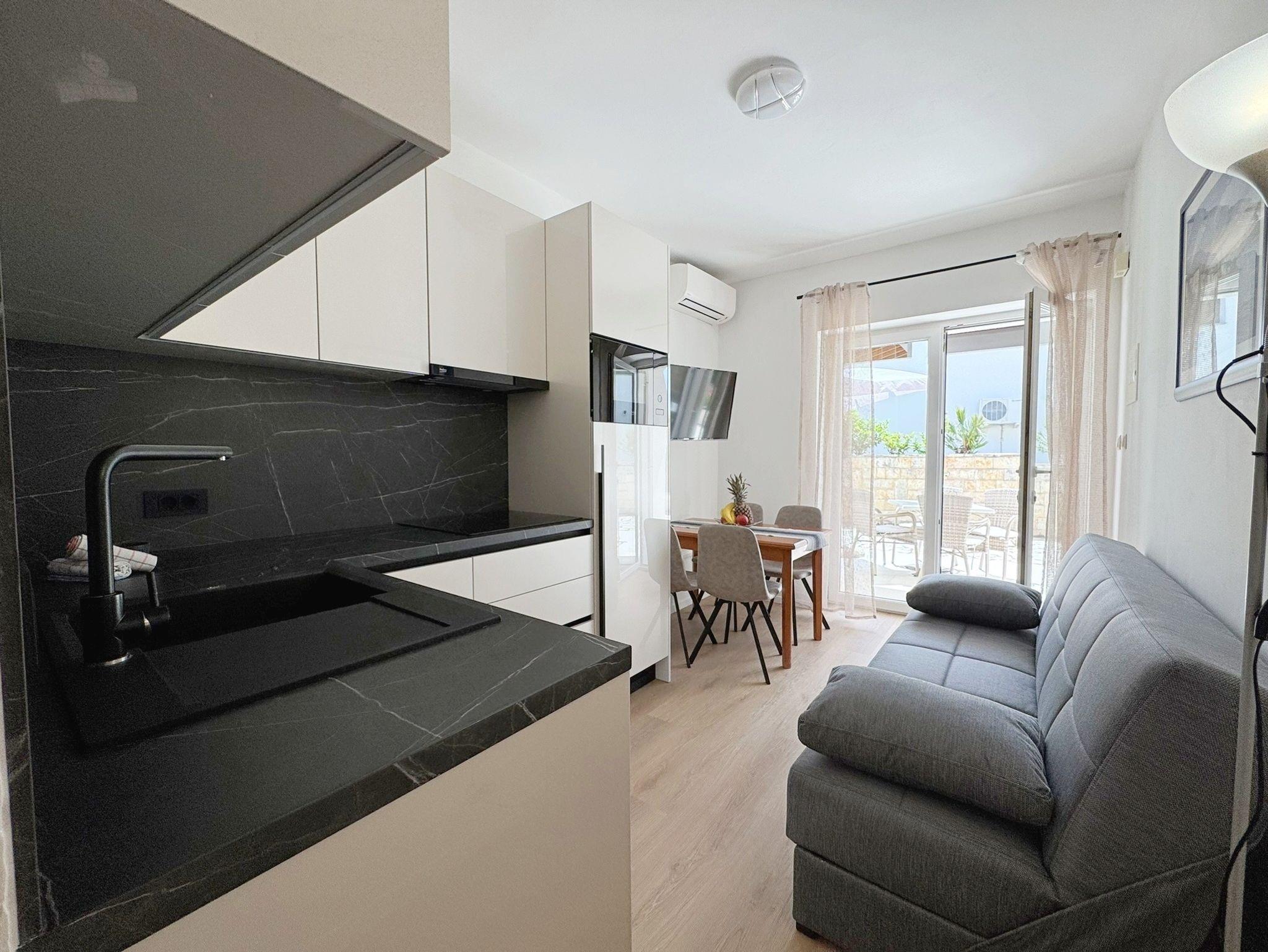 Ferienwohnung bietet Platz für 3 Gäste. Die Betten sind in Schlafzimmern, die es 1 gibt, innerhalb einer Gesamtfläche von 32m2, angeordnet. Die Gäste haben eine eigene Terrasse zur Verfügung, auf der sie in warmen Sommernächten genießen können. Das Apartment bietet Meerblick. Es ist erlaubt, Speisen auf dem Gemeinschafts-Grill vorzubereiten. IM PREIS INBEGRIFFEN: Kurtaxe, Endreinigung, Klimatisierung, Parkplatz, Internet, Föhn. Die Verfügbarkeit zusätzlicher Dienstleistungen in Ihrem reservierten Termin und die Preise derselben (falls nicht aufgeführt) müssen im Voraus überprüft werden. Zusätzliche Dienstleistungen die in der Zahlungsaufforderung nicht aufgeführt sind werden direkt beim Vermieter bezahlt, angenommen der Gast nutzt auch diese.