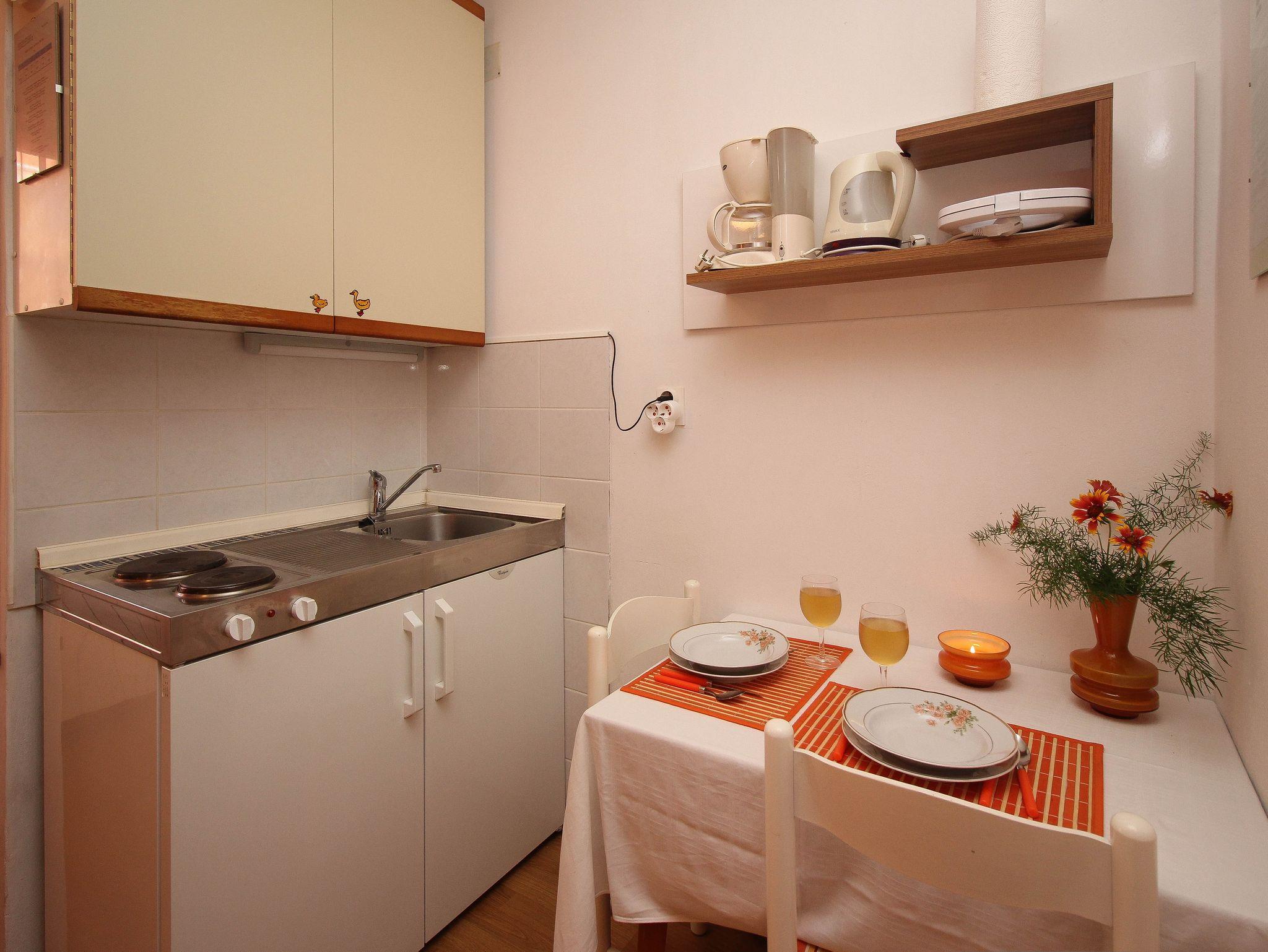 Studio bietet Platz für 2 Gäste. Die Betten sind in Schlafzimmern, die es 1 gibt, innerhalb einer Gesamtfläche von 20m2, angeordnet. Die Gäste haben eine eigene Terrasse zur Verfügung, auf der sie in warmen Sommernächten genießen können. Das Studio-Apartment bietet Meerblick. Es ist erlaubt, Speisen auf dem Gemeinschafts-Grill vorzubereiten. IM PREIS INBEGRIFFEN: Kurtaxe, Endreinigung, Klimatisierung, Parkplatz, Internet, Föhn. Die Verfügbarkeit zusätzlicher Dienstleistungen in Ihrem reservierten Termin und die Preise derselben (falls nicht aufgeführt) müssen im Voraus überprüft werden. Zusätzliche Dienstleistungen die in der Zahlungsaufforderung nicht aufgeführt sind werden direkt beim Vermieter bezahlt, angenommen der Gast nutzt auch diese.