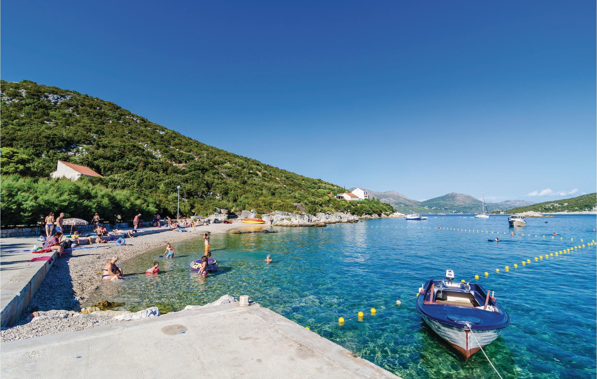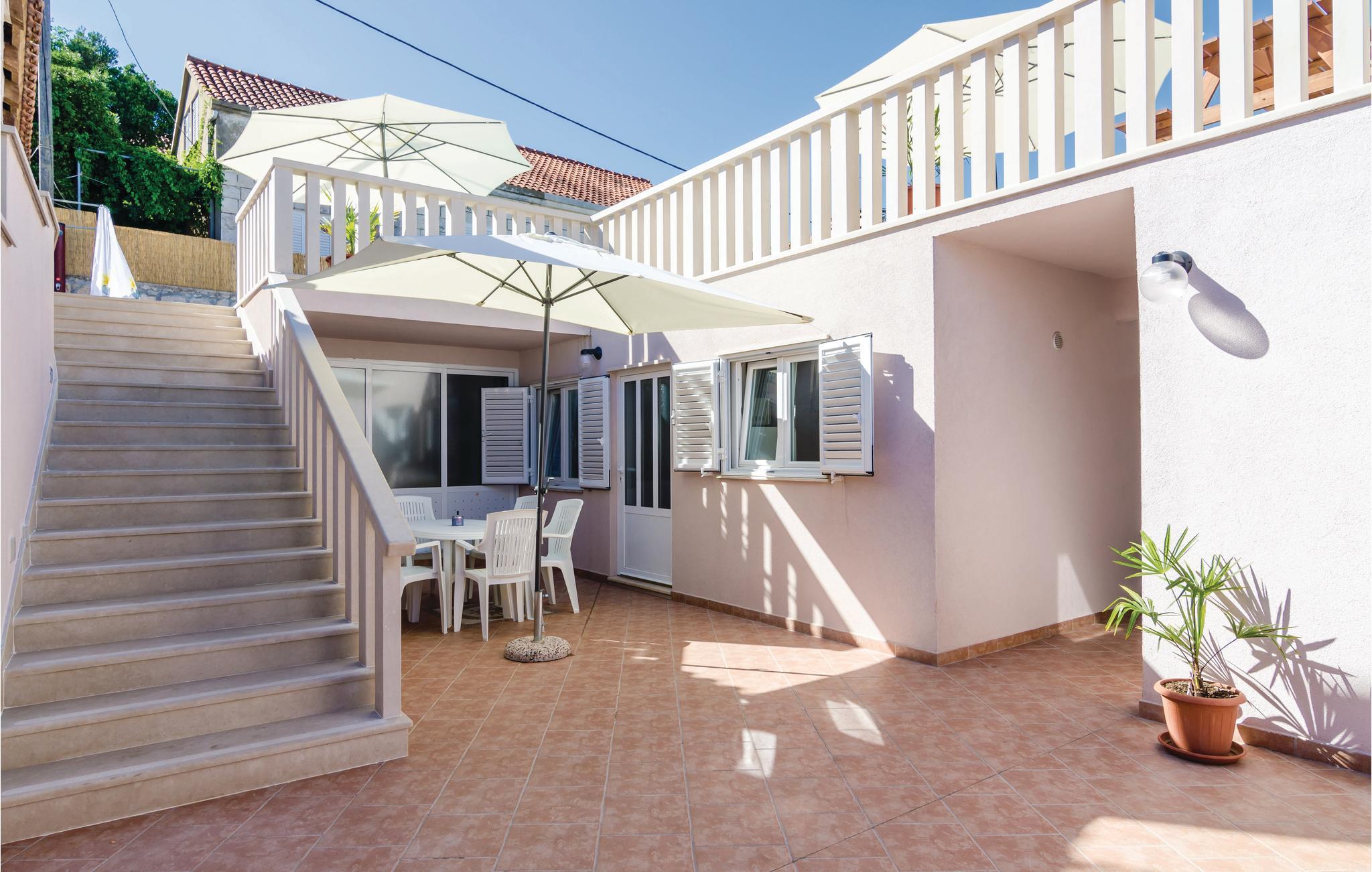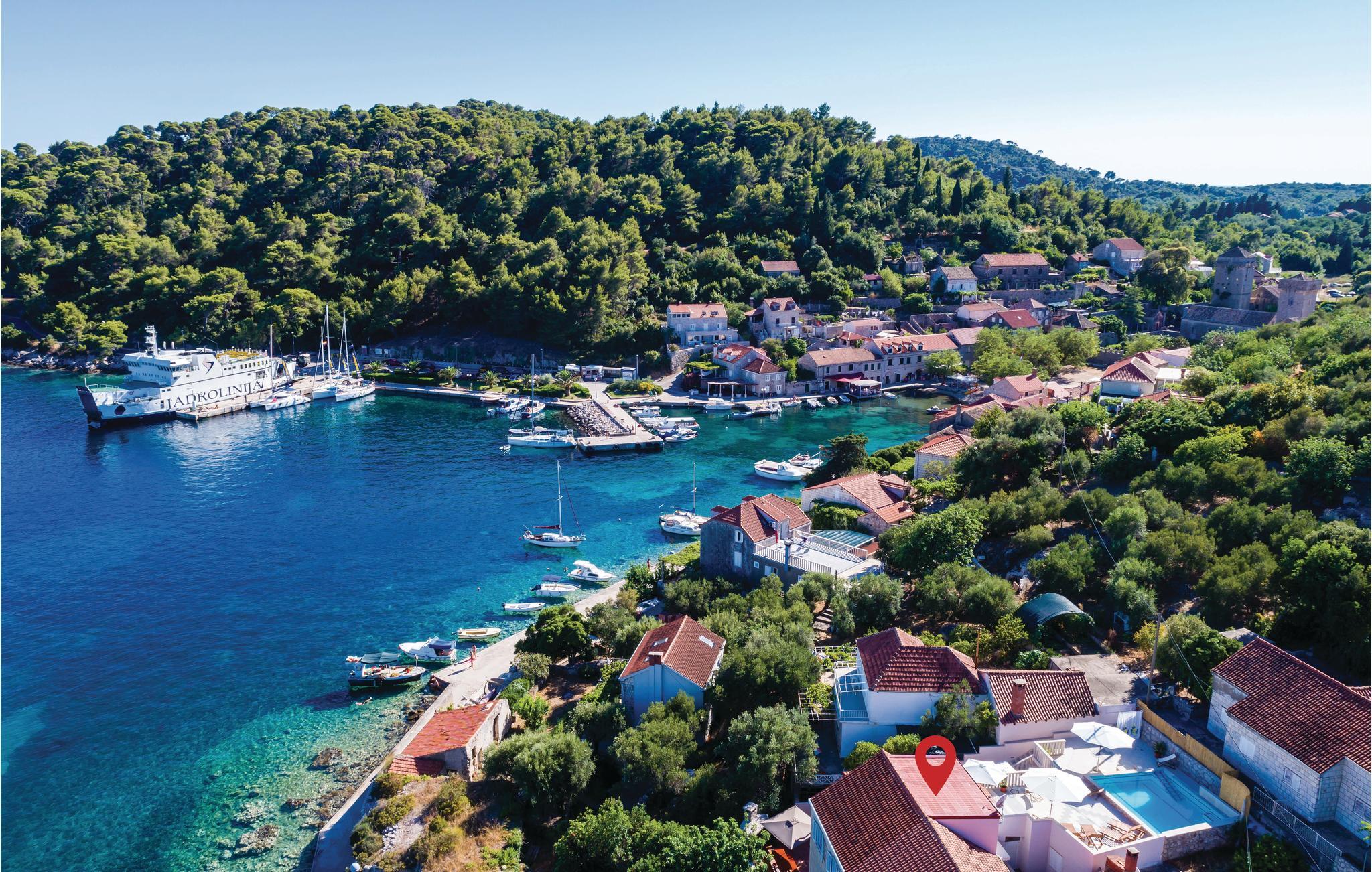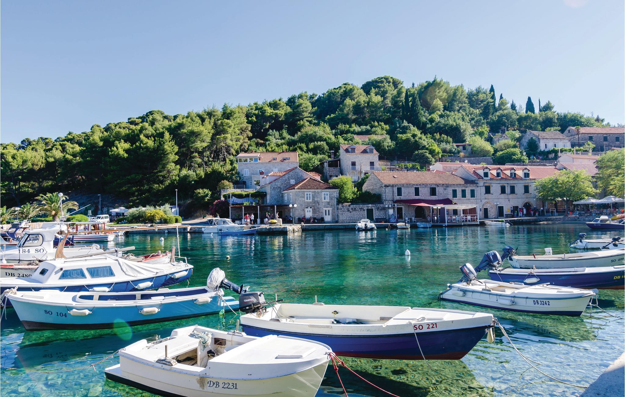 Hold jeres næste ferie i skønne omgivelser i en fortryllende mediterran atmosfære med mange solskinstimer og lune sommervinde. Bo i Sudurad, på øen Sipan, blot 30 m fra havet og stranden. Øen er kendt for sine mange figentræer, kendt vinsorter og en underskøn natur. De fire lejligheder er forbundet med terrasser og udendørs trapper. Et særligt stort plus er huset terrasse med udendørs pool og en betagende udsigt over havet. I kan lave lækker og enkel grillmad på trækulsgrillen der står på terrassen i stueplan. I højsæsonen om sommeren er der færgeforbindelse til øen mellem fem og seks gange dagligt.