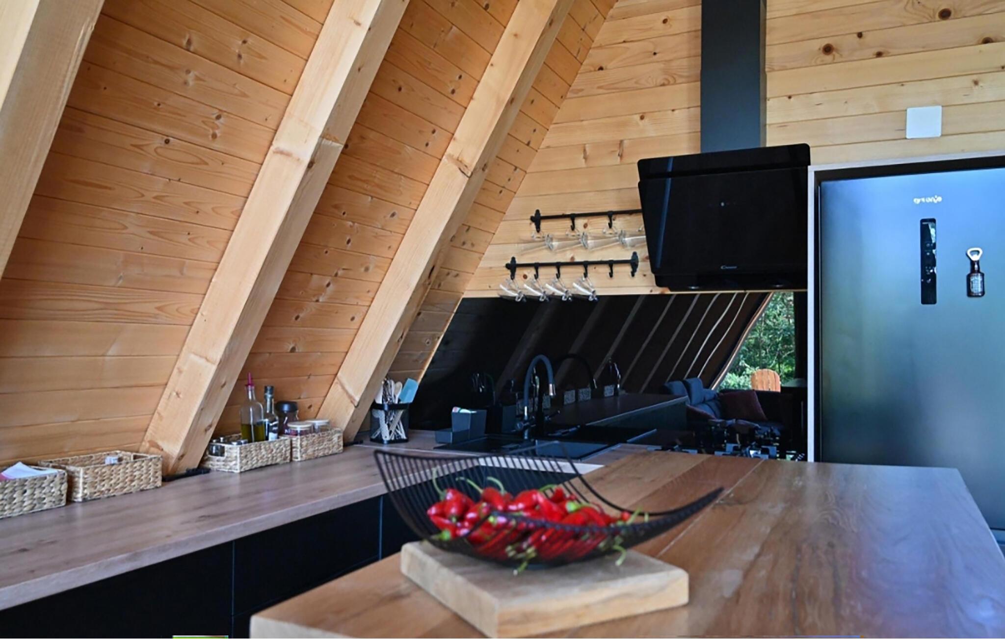 Velkommen til dette behagelige feriedomicil, hvor det varme træinteriør og den smagfulde indretning skaber en afslappende atmosfære. Her finder I alt, hvad I behøver for en ferie i harmoni med naturen. Slap af og nyd hverdagsfri stunder i den hyggelige opholdsstue.
