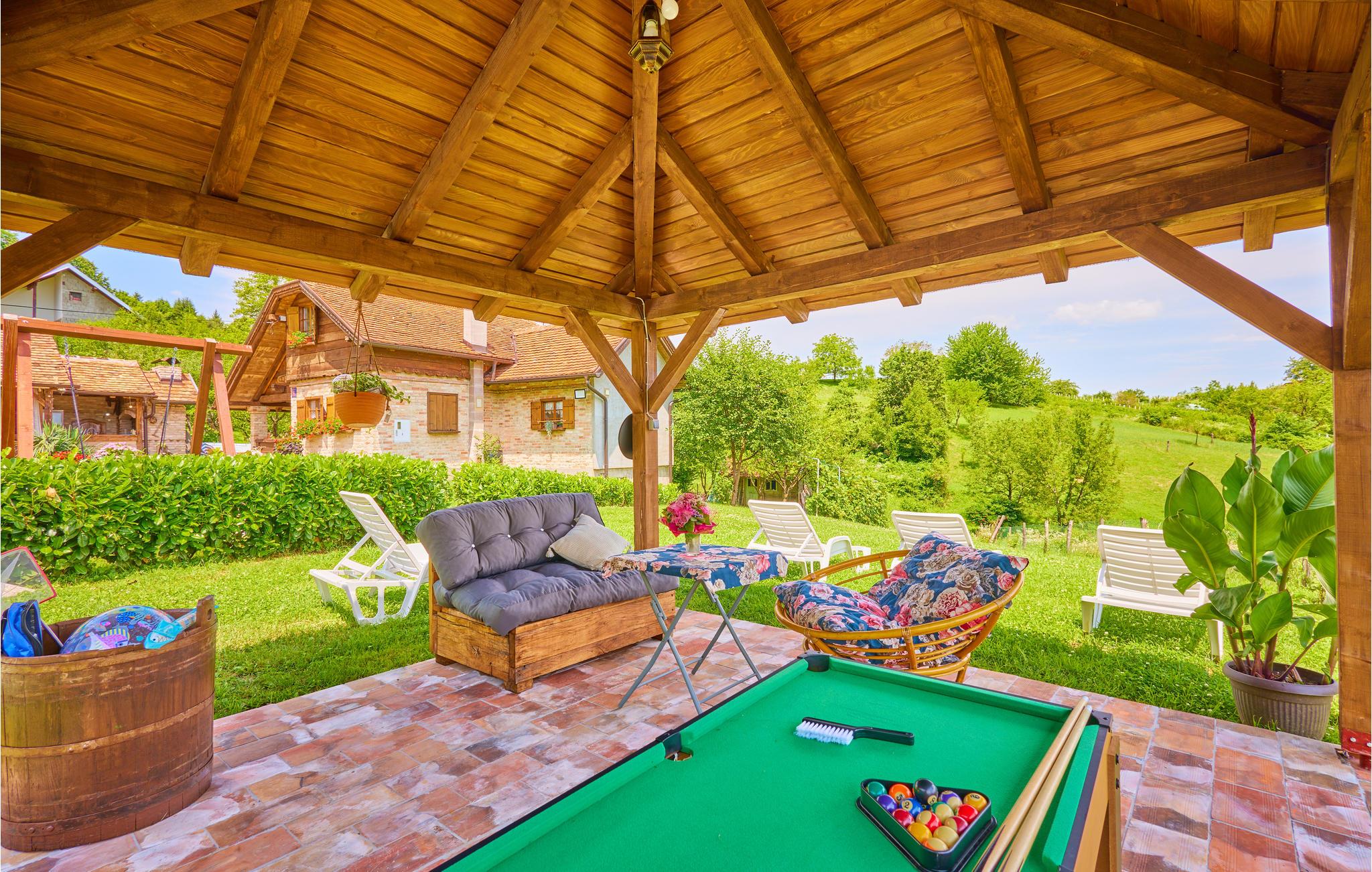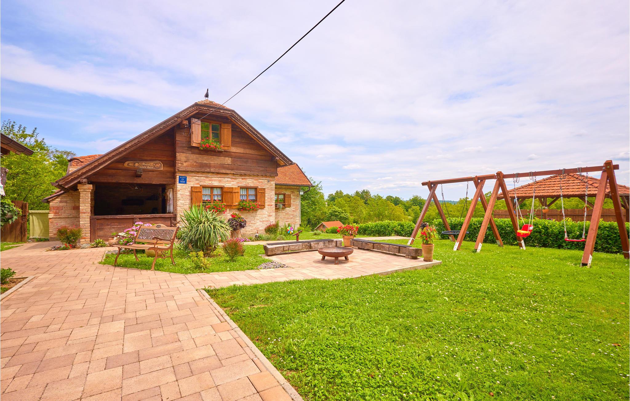 I udkanten af ??Hrastovica ligger dette hyggelige, rustikke feriehus med pool og legeplads i haven.