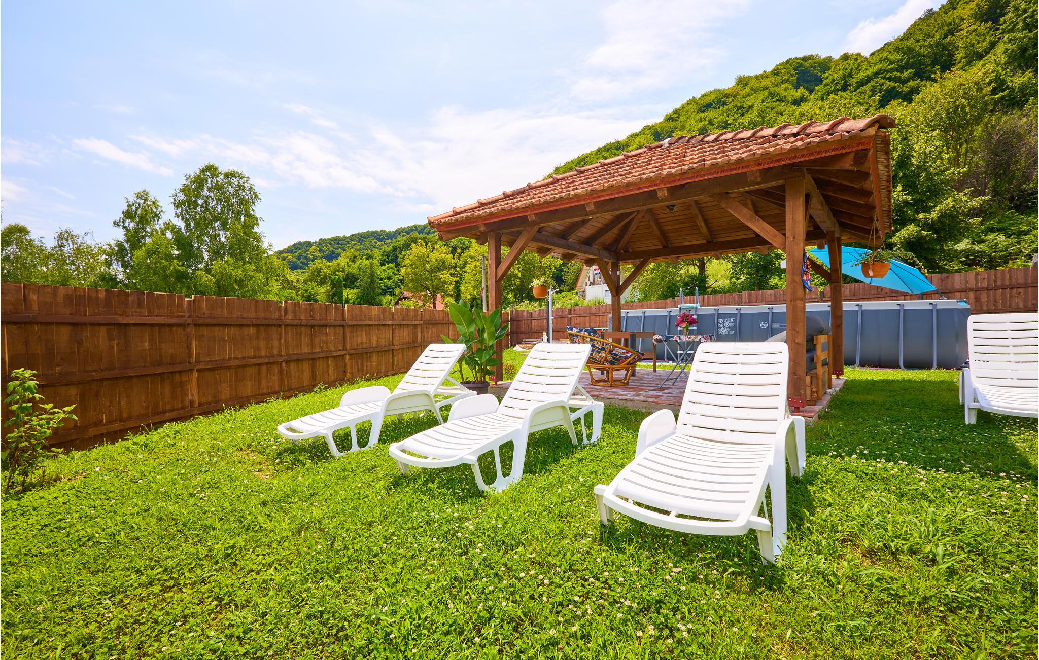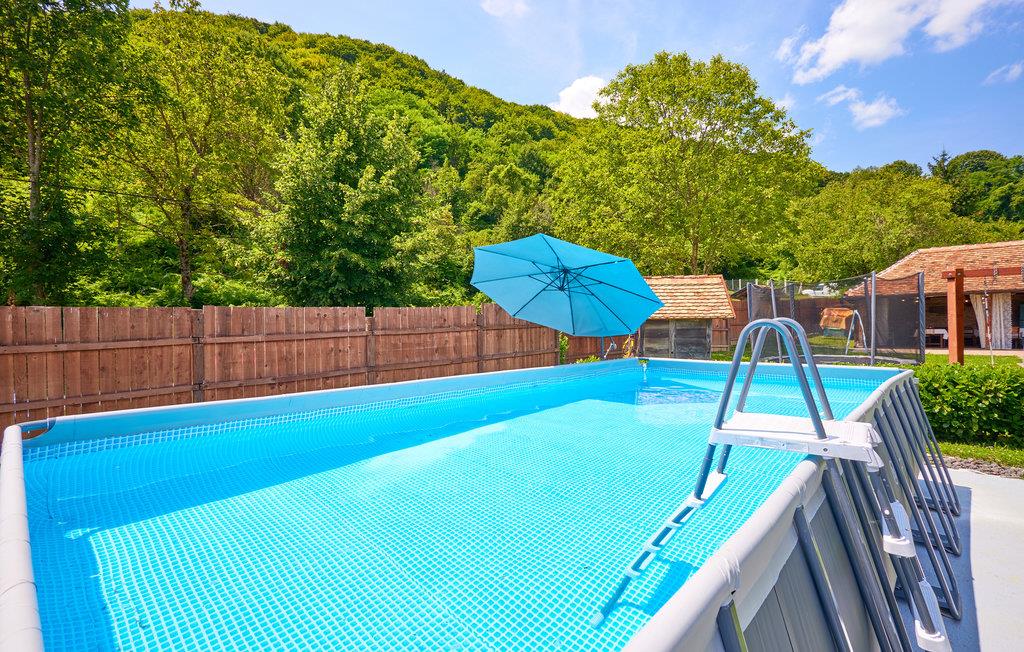 Velkommen til dette skønne feriehus, som er rustikt indrettet med kakkelovn, massive træmøbler og træpaneler, hvilket skaber en helt særlig atmosfære. Her kan I se frem til gode fællesarealer og en charmerende sovesal i loftsrummet. Haven er et paradis for store og små, og jeres børn vil sikkert hurtigt kaste sig over gyngerne og poolen. De voksne kan holde øje med børnene i skyggen på terrassen og køle ned med en iskaffe. Om aftenen kan I samles omkring bålfadet og riste skumfiduser over bålet, mens I nyder naturens stilhed og stjernerne på himlen.