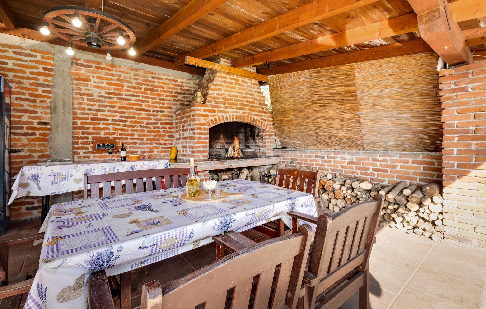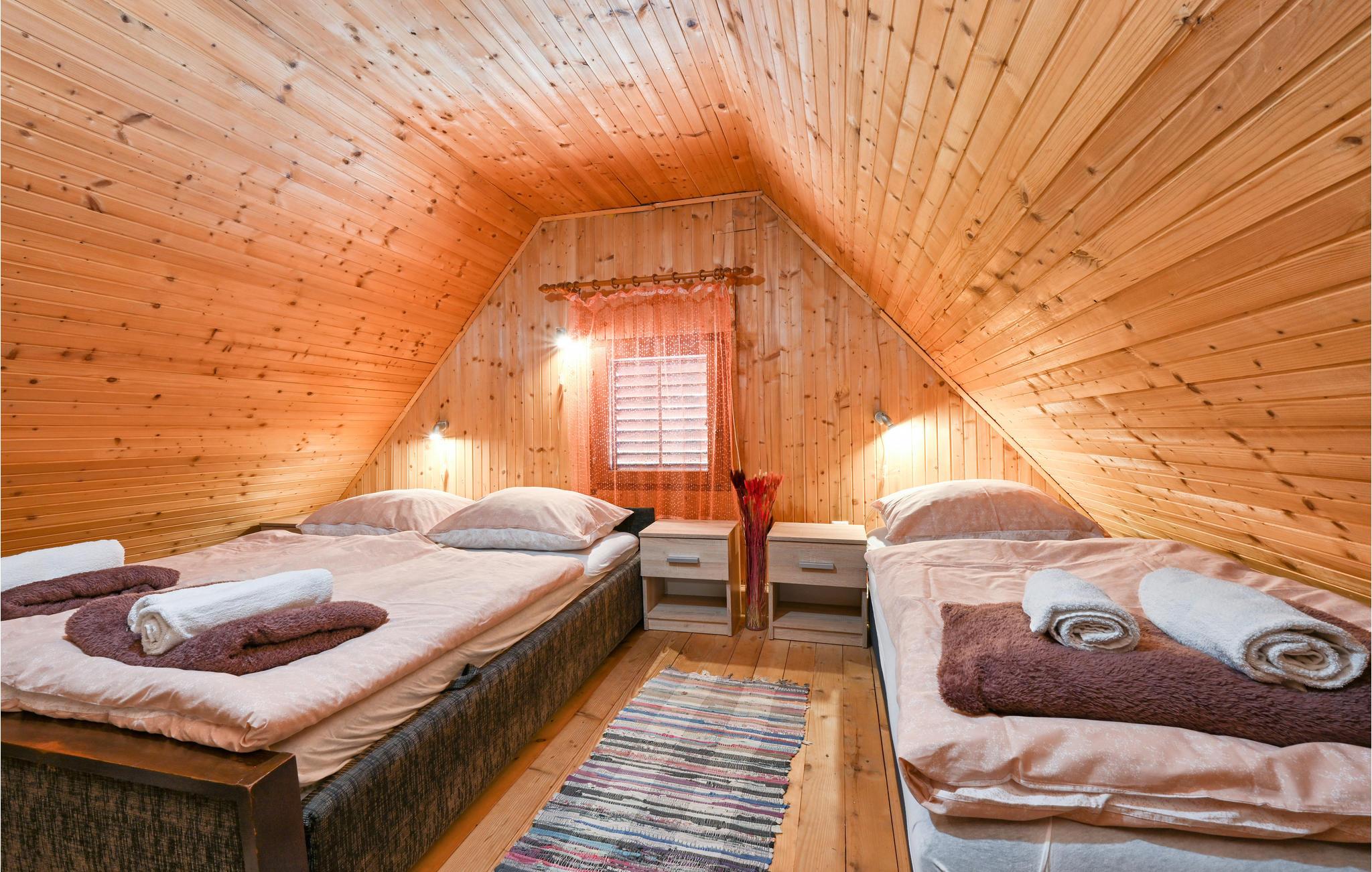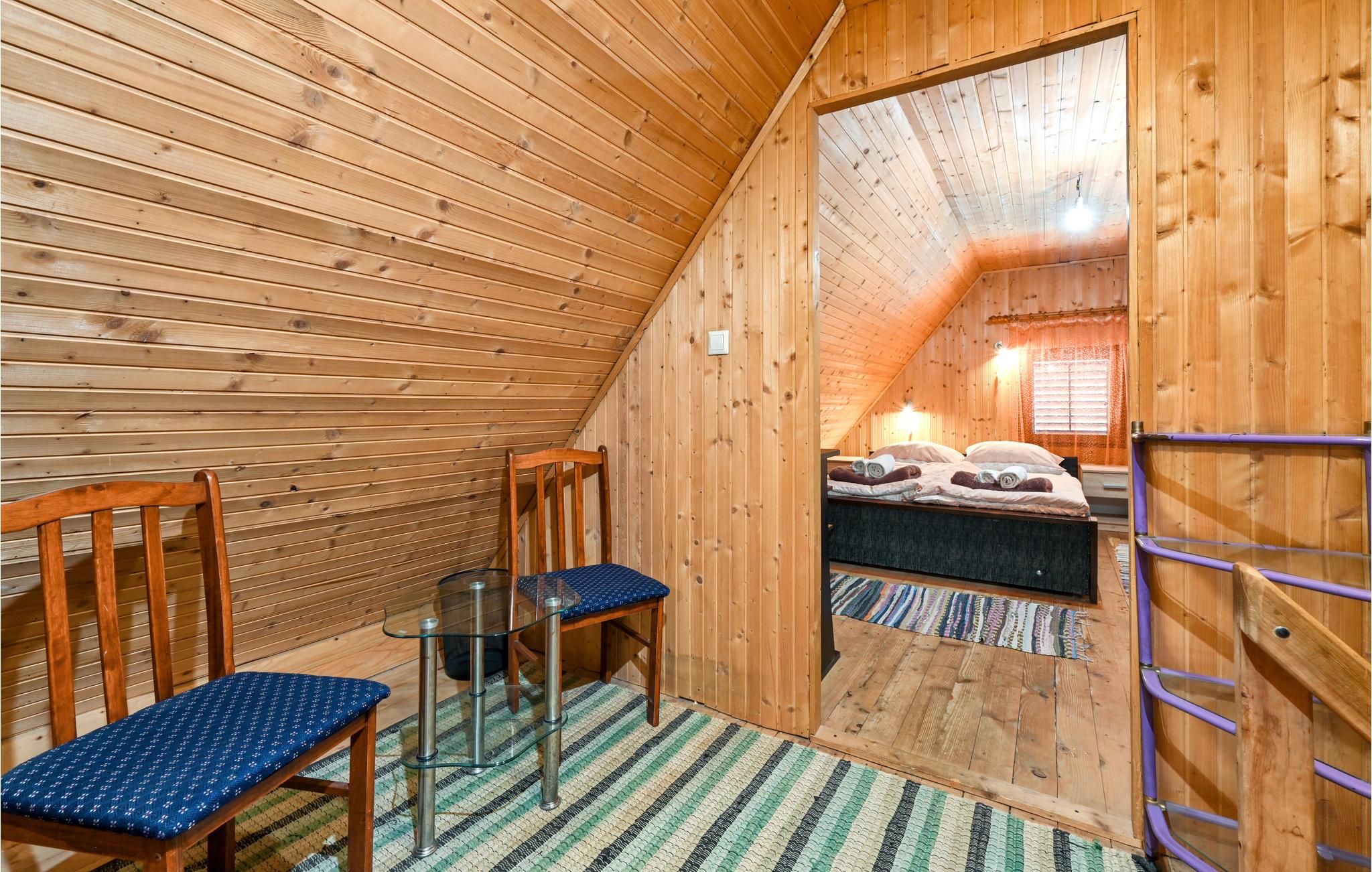 Dette rustikke feriehus med pool, ligger i regionen Turopolje, i det centrale Kroatien. Grunden er domineret af poolen hvor der står behagelige liggestole i kanten, ved siden af et overdækket udendørs køkken med havemøbler og en muret grill. I stueplan er der et køkken i åben forbindelse med stuen, hvorfra en stejl trappe før op til øverste etage (skrå vægge, i siden 40 cm loftshøjde). På øverste etage ligger de to soveværelser med en skøn vid udsigt over landskabet. Nyd dagens første kop kaffe og aftenens sidste glas vin på den overdækkede terrasse og gå de ca. 50 m ned til floden Kupa, hvor I kan bade og fiske eller bare sidde på bredden og nyde den skønne natur.
