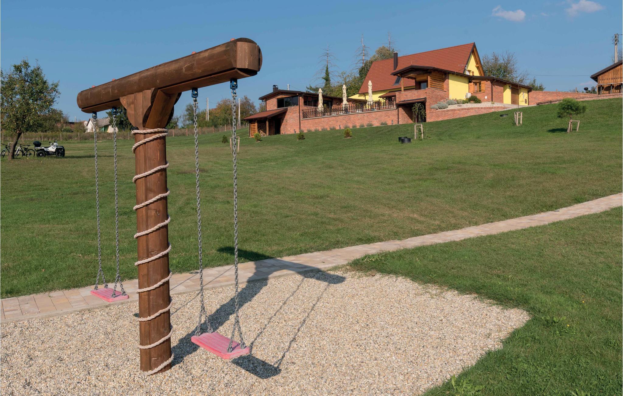 Huset består af fire smukke lejligheder, der også kan fungere som separate enheder. To lejligheder ligger på øverste etage med eksterne indgange. Der er en rummelig græsplæne til solbadning ved siden af ??den opvarmede pool med udsigt over skoven. Slap af i wellness-området med sauna og boblebad med udsigt over poolen eller den glasinddækkede veranda med en stor grill med et veludstyret køkken.