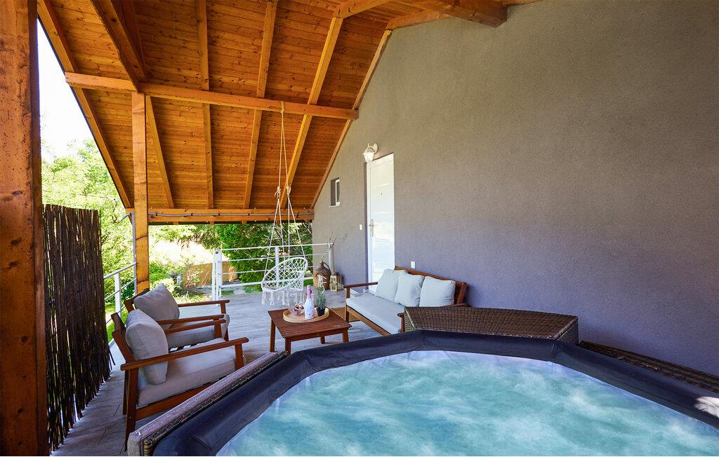Et absolut højdepunkt er spabadet på terrassen, hvor I kan slappe dejligt af. Se børnene lege på grunden, mens I forbereder alt til en dejlig frokost i det grønne. Om aftenen kan I slappe af i gyngerne og nettene ved træet eller ved den udendørs bålplads, mens I lægger planer for de kommende dage.