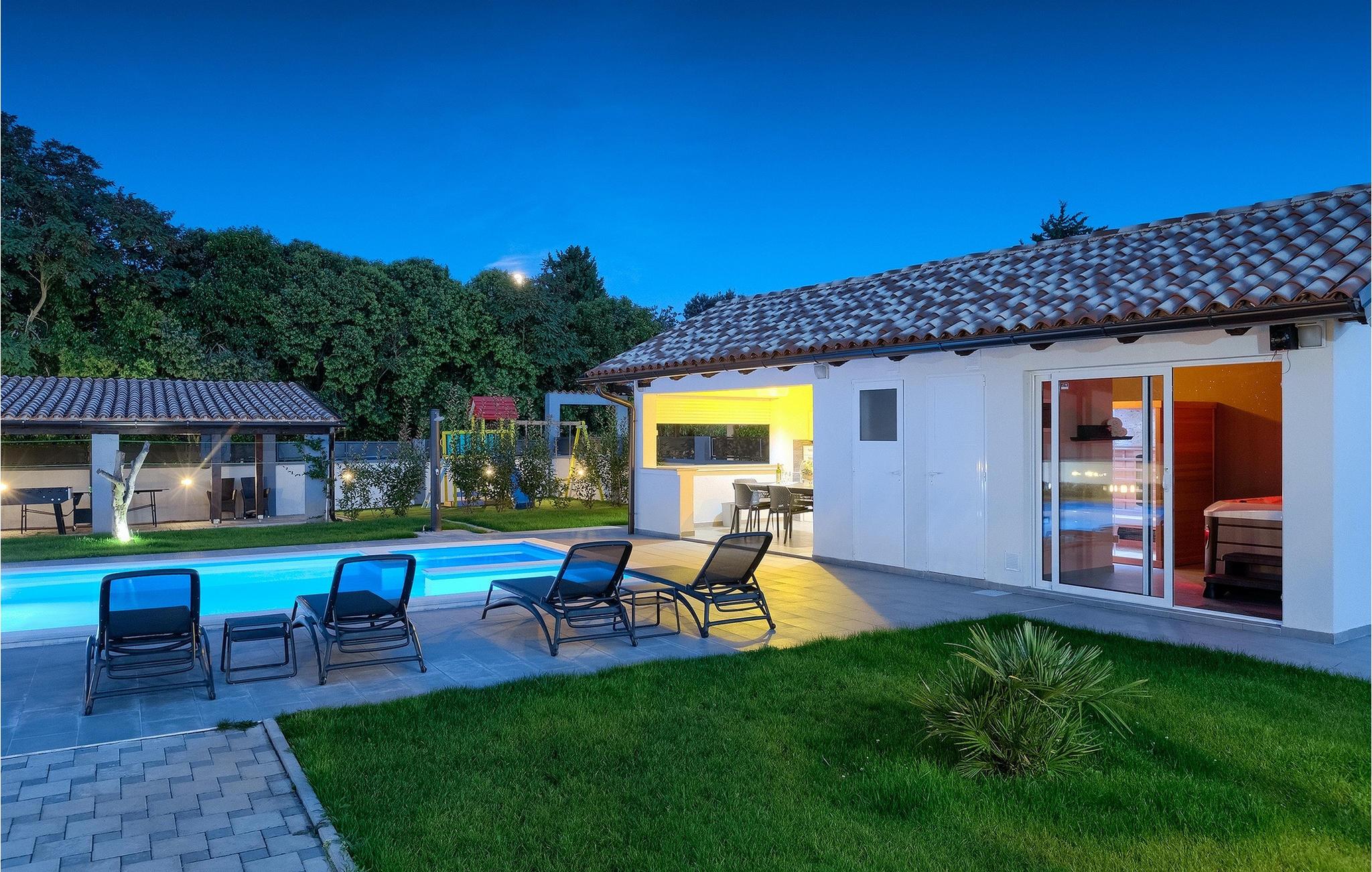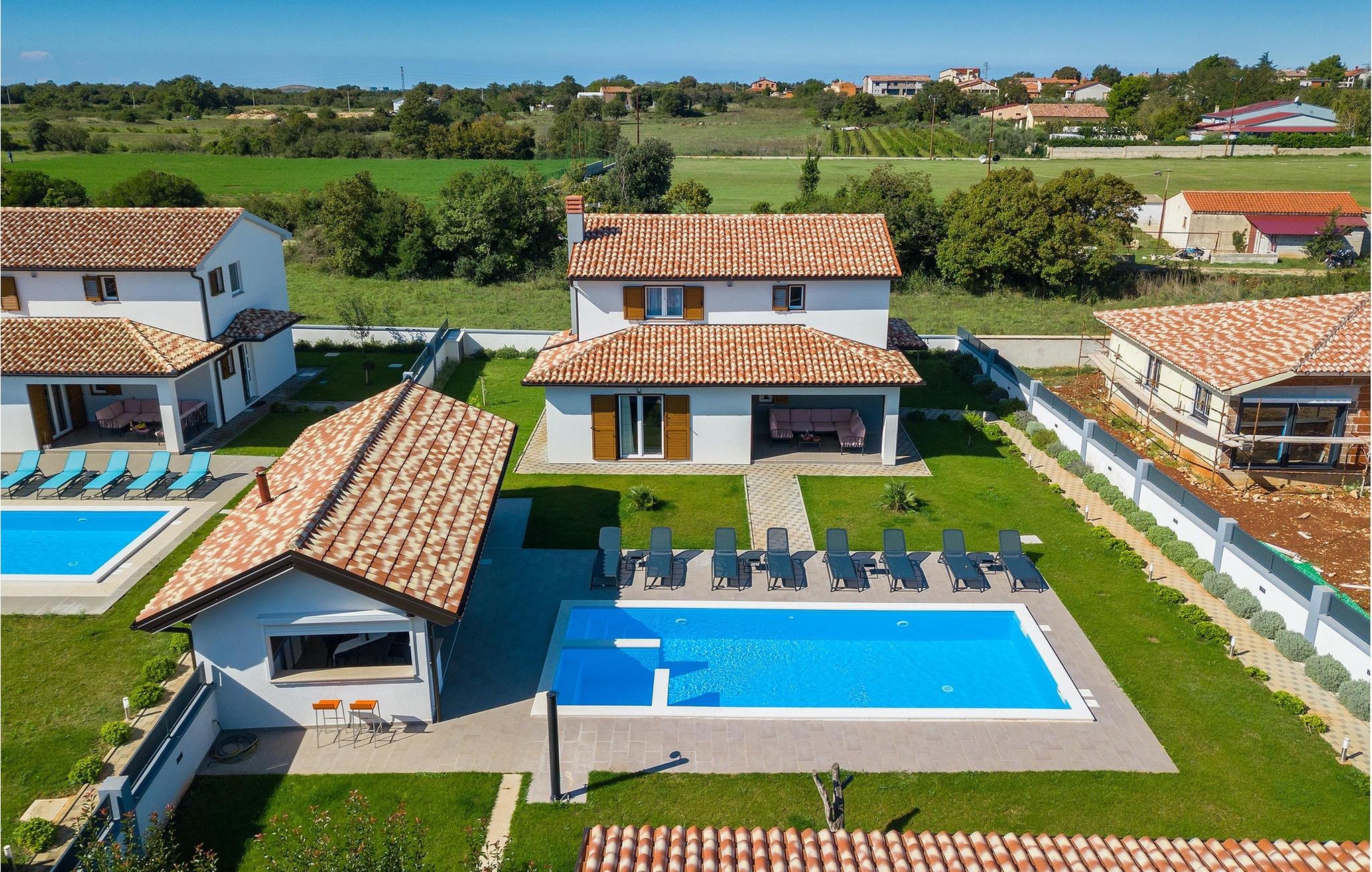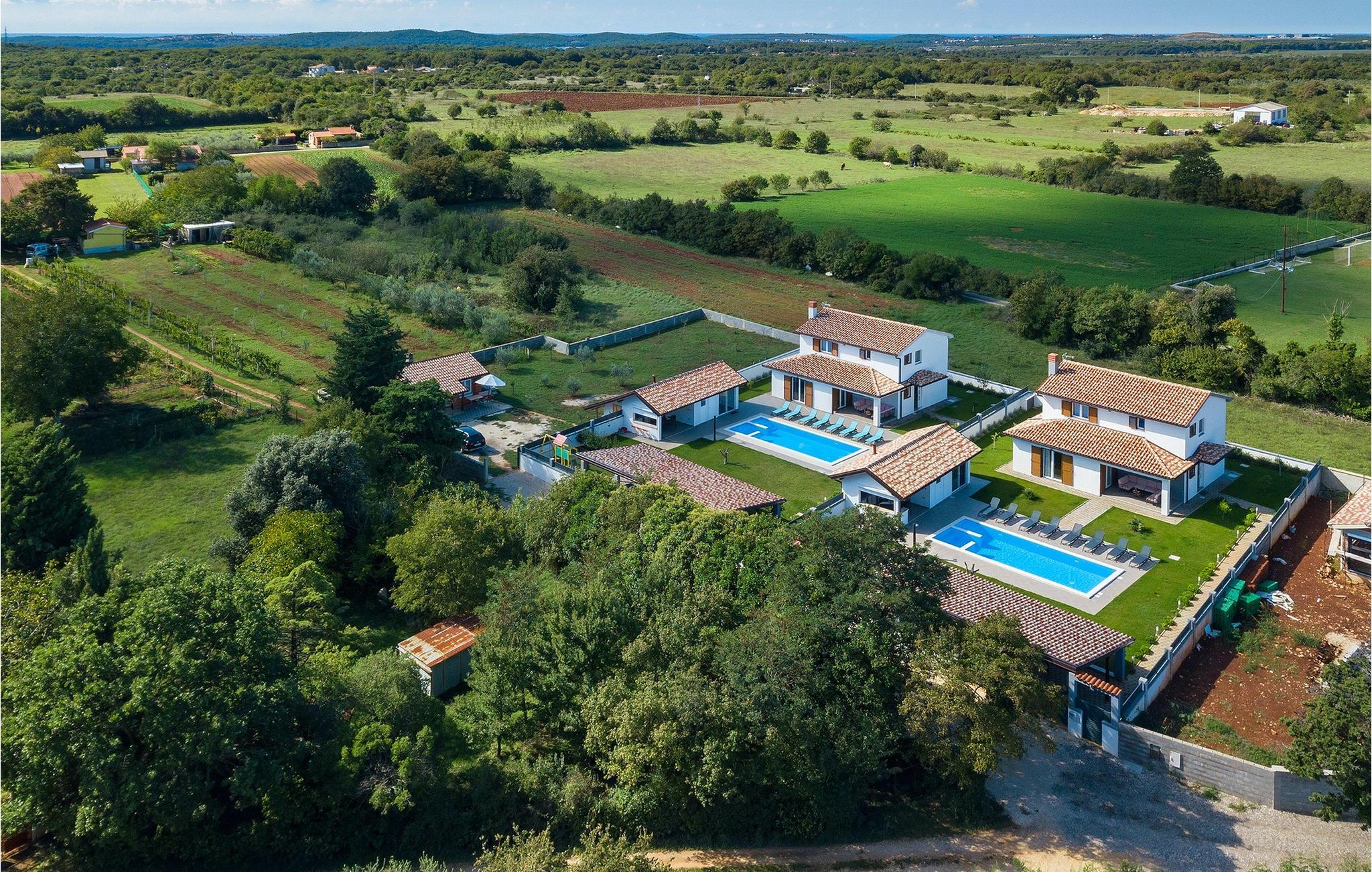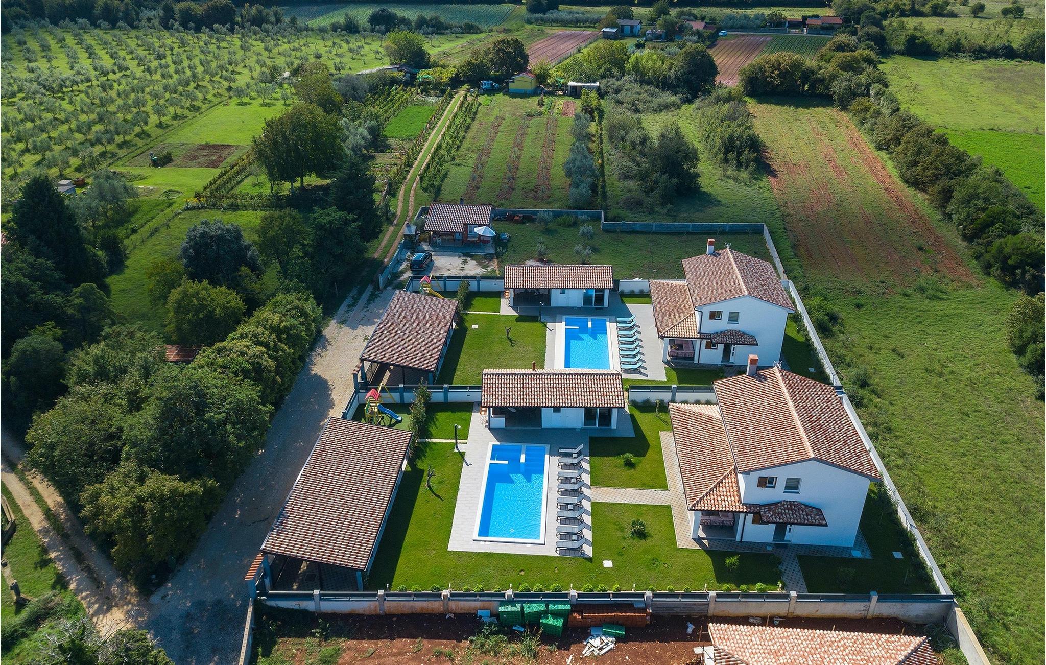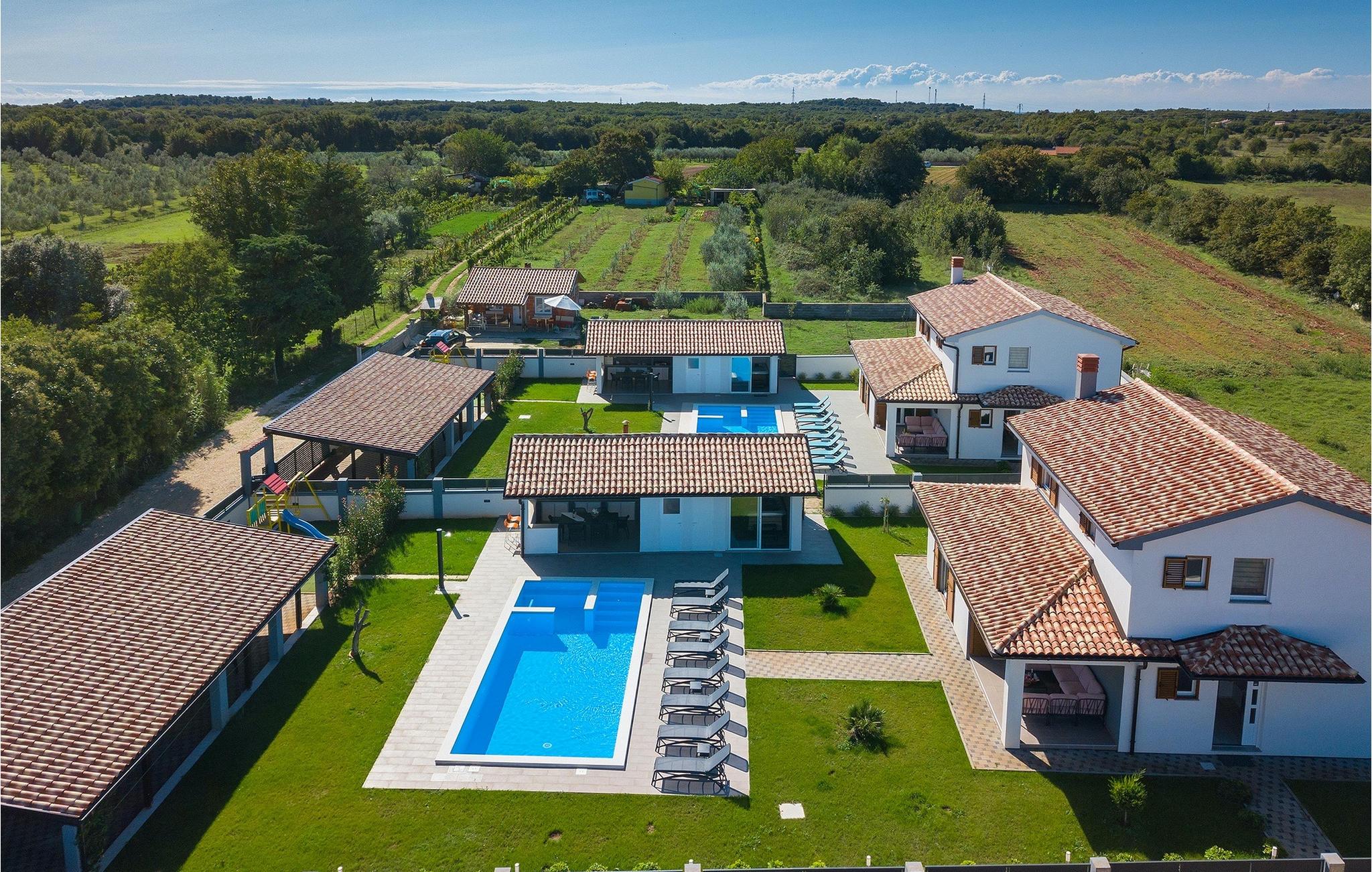Denne smukke villa Alba Rossa er beliggende i den lille by Sisan nær den største by i Istrien - Pula. Ligesom hendes søstervilla Alba Bianca tilbyder denne villa dig alt til den perfekte ferie med din familie. Villaen kan rumme op til 8 personer. Hver villa fungerer som en separat enhed, og hvert hus har sin egen swimmingpool, jacuzzi, spa, grill, legeplads, bordtennis og bordfodbold. Husene hænger sammen, så de kan lejes af en større familie, og I kan alle slappe af og nyde naturens lyde og den smukke stemning, som begge villaer har at byde på. Ligesom Villa Alba Bianca har stueetagen i Villa Alba Rossa et vidunderligt køkken og spiseplads, en komfortabel og hyggelig stue og et soveværelse med to enkeltsenge. På første sal finder du to fuldt udstyrede dobbeltværelser med tv og aircondition og hver med eget badeværelse. Du ønsker at tilbringe det meste af din tid udendørs, hvilket er en god idé, da villaen byder på et smukt og stort overdækket sommerkøkken, hvor du kan tilberede lækre istriske delikatesser eller friske op og svømme i poolen. Vi tænkte også på jeres små, der kan hænge ud og hygge sig på den søde legeplads, mens de voksne hygger sig med jacuzzi eller grill. Hvis du vil have en drømmeferie, skal du sørge for at booke Alba Bianca Villa eller Alba Rossa Villa, det vil du ikke fortryde.Villaen Alba Rossa ligger i den beboede lille by Sisan i kommunen Liznjan i Istrien Amt, nær den største istriske by Pula. Kun 1,5 km væk fra villaen vil du støde på smukke sten- og sandstrande. Er du interesseret i mere aktive ferier og adrenalin, er der forskellige faciliteter såsom sejlads, golf, cykling, ridning, adrenalinpark osv. Der er en masse historiske og kulturelle seværdigheder i denne del af Istrien, som du skal besøge. Specialiteten i denne del af Istrien er de lækre istriske delikatesser lavet af Adriaterhavsfisk og den hjemmelavede "Malvazija", der passer til næsten enhver fiskeret. En uundværlig del af Pula er det mest berømte amfiteater fra det første århundrede, endda det sjette største i verden kaldet Arena, som stadig bruges i dag under forskellige kulturelle remedier og film- og sommerfestivaler. Byen har en lang tradition inden for vinfremstilling, fiskeri, skibsbygning og turisme.