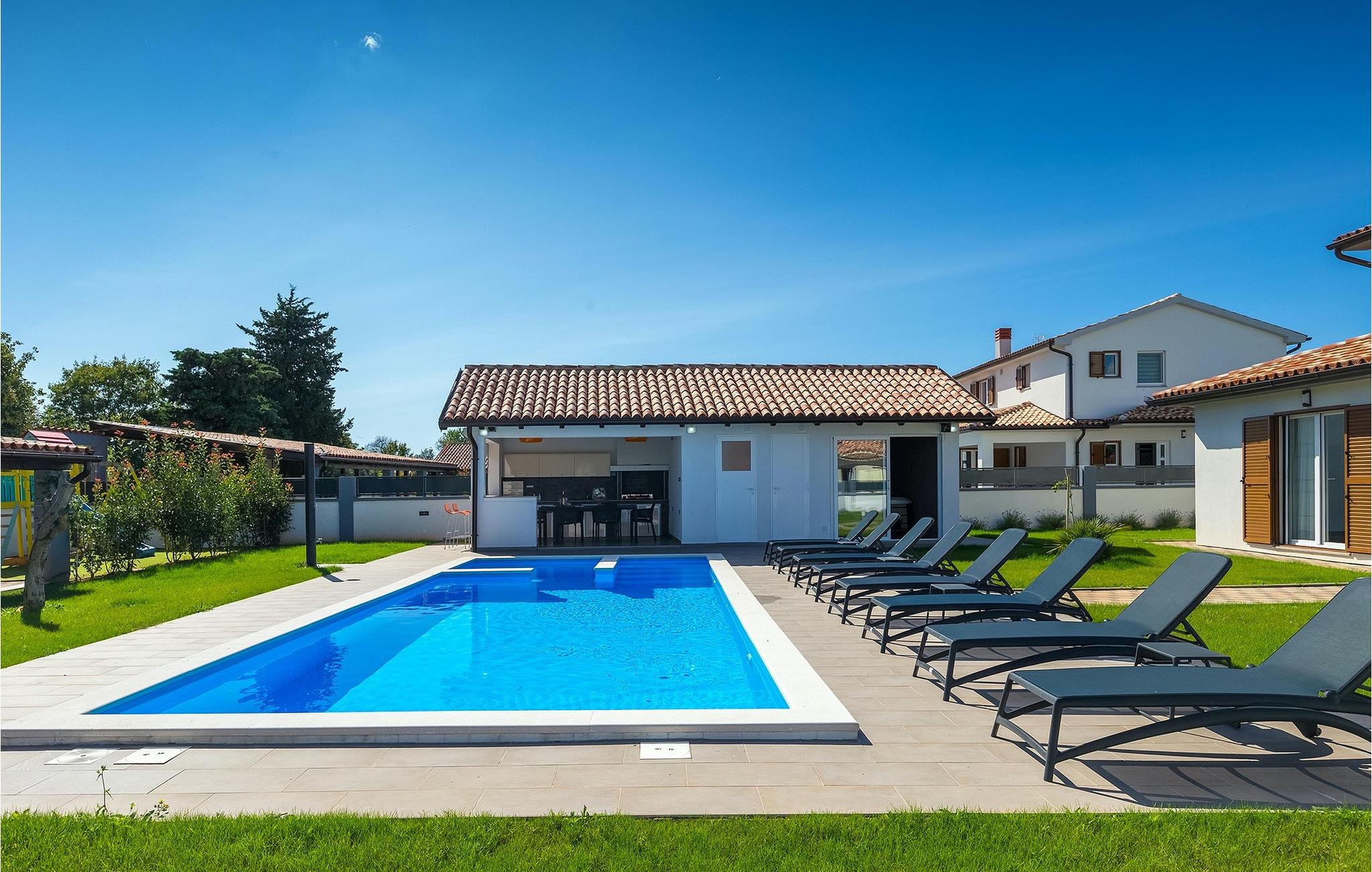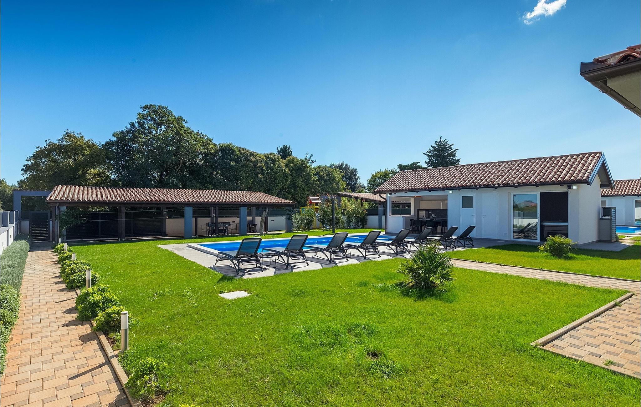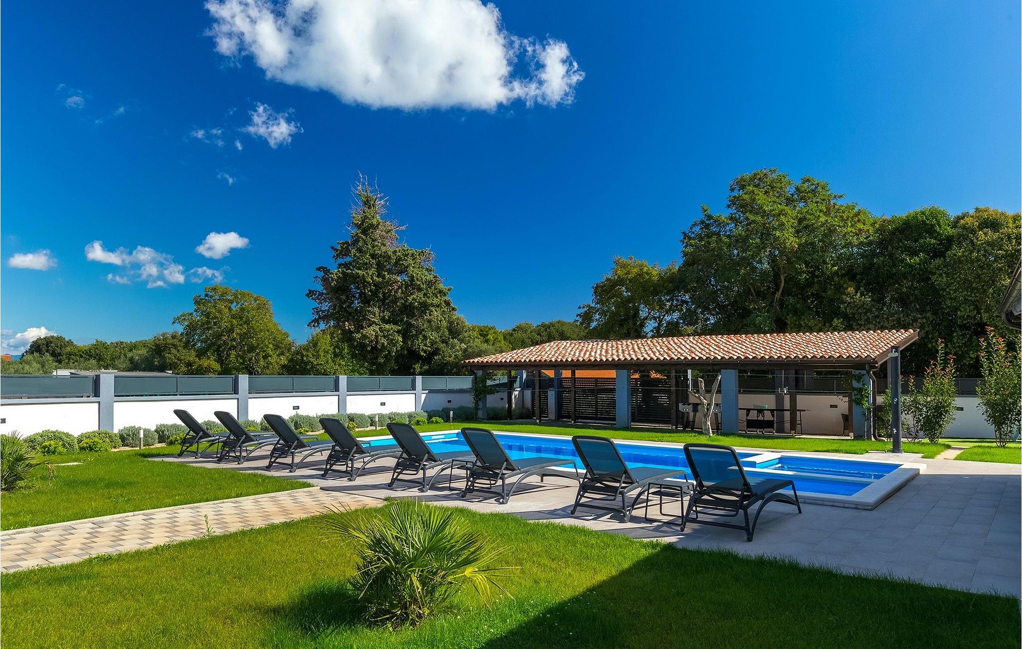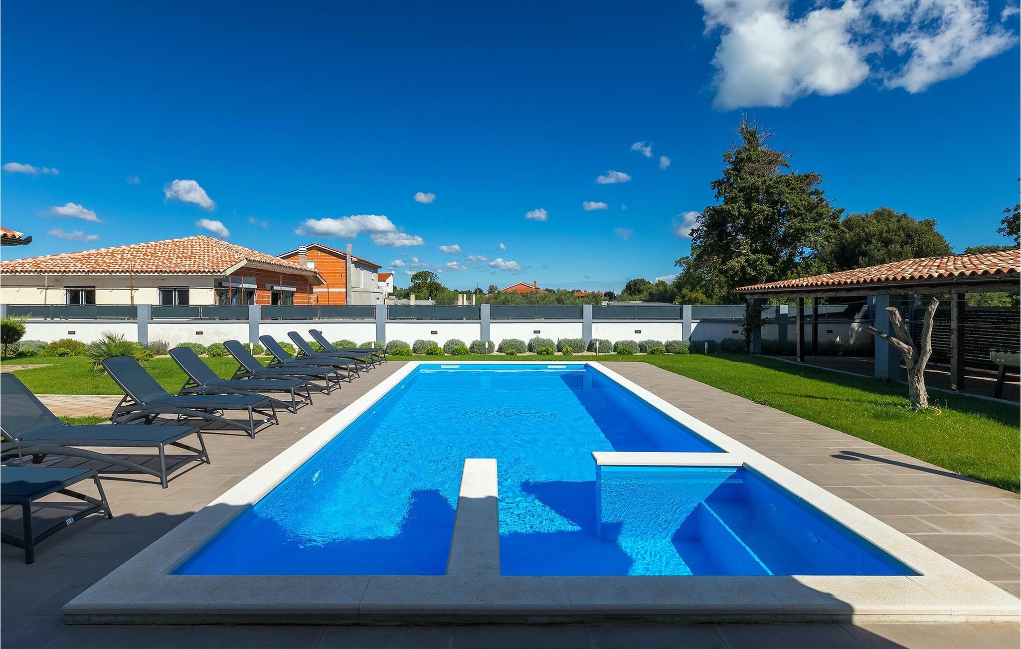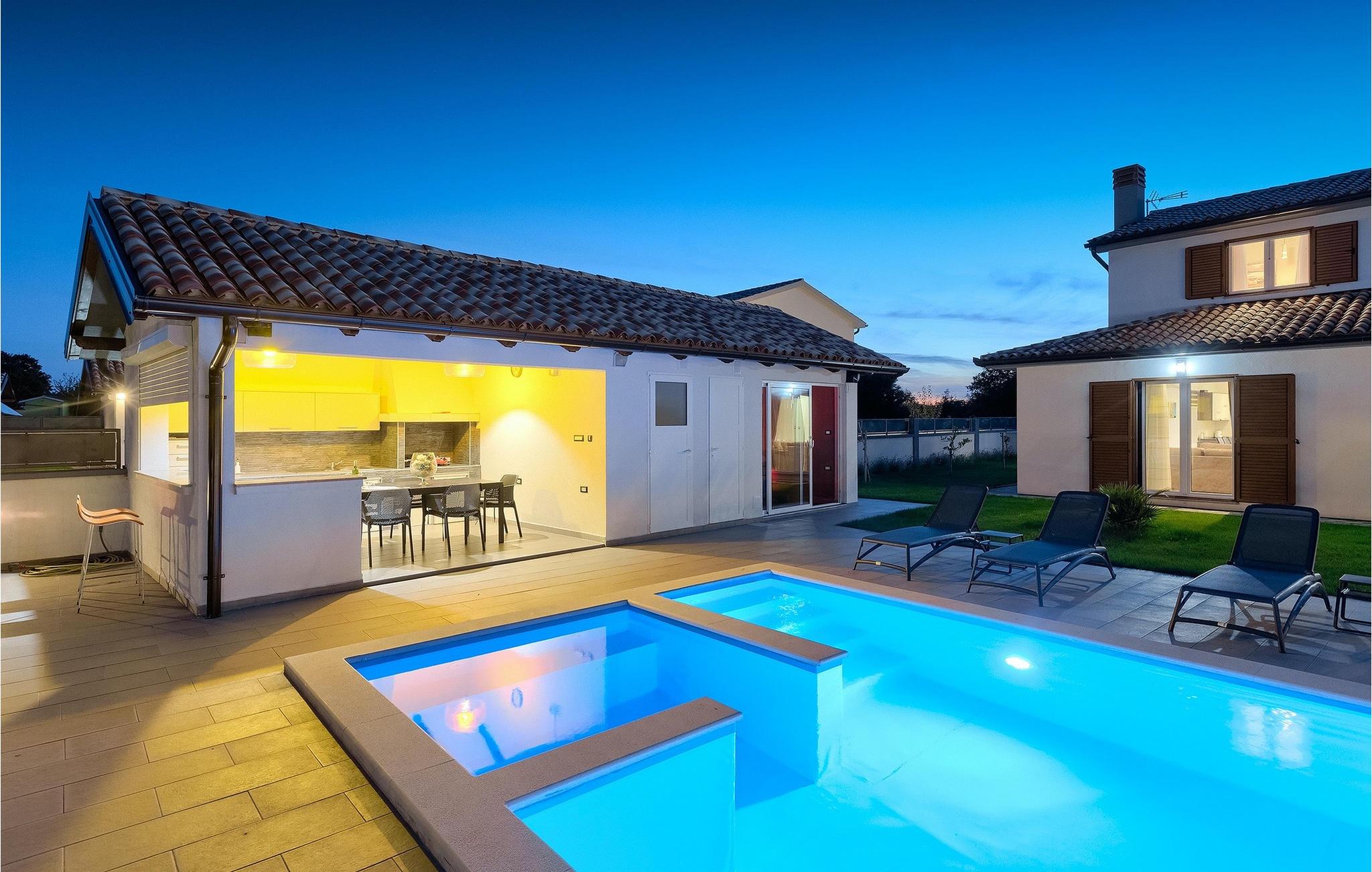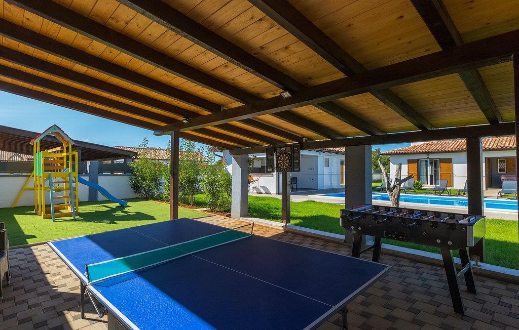 Denne smukke villa Alba Rossa er beliggende i den lille by Sisan nær den største by i Istrien - Pula. Ligesom hendes søstervilla Alba Bianca tilbyder denne villa dig alt til den perfekte ferie med din familie. Villaen kan rumme op til 8 personer. Hver villa fungerer som en separat enhed, og hvert hus har sin egen swimmingpool, jacuzzi, spa, grill, legeplads, bordtennis og bordfodbold. Husene hænger sammen, så de kan lejes af en større familie, og I kan alle slappe af og nyde naturens lyde og den smukke stemning, som begge villaer har at byde på. Ligesom Villa Alba Bianca har stueetagen i Villa Alba Rossa et vidunderligt køkken og spiseplads, en komfortabel og hyggelig stue og et soveværelse med to enkeltsenge. På første sal finder du to fuldt udstyrede dobbeltværelser med tv og aircondition og hver med eget badeværelse. Du ønsker at tilbringe det meste af din tid udendørs, hvilket er en god idé, da villaen byder på et smukt og stort overdækket sommerkøkken, hvor du kan tilberede lækre istriske delikatesser eller friske op og svømme i poolen. Vi tænkte også på jeres små, der kan hænge ud og hygge sig på den søde legeplads, mens de voksne hygger sig med jacuzzi eller grill. Hvis du vil have en drømmeferie, skal du sørge for at booke Alba Bianca Villa eller Alba Rossa Villa, det vil du ikke fortryde.Villaen Alba Rossa ligger i den beboede lille by Sisan i kommunen Liznjan i Istrien Amt, nær den største istriske by Pula. Kun 1,5 km væk fra villaen vil du støde på smukke sten- og sandstrande. Er du interesseret i mere aktive ferier og adrenalin, er der forskellige faciliteter såsom sejlads, golf, cykling, ridning, adrenalinpark osv. Der er en masse historiske og kulturelle seværdigheder i denne del af Istrien, som du skal besøge. Specialiteten i denne del af Istrien er de lækre istriske delikatesser lavet af Adriaterhavsfisk og den hjemmelavede "Malvazija", der passer til næsten enhver fiskeret. En uundværlig del af Pula er det mest berømte amfiteater fra det første århundrede, endda det sjette største i verden kaldet Arena, som stadig bruges i dag under forskellige kulturelle remedier og film- og sommerfestivaler. Byen har en lang tradition inden for vinfremstilling, fiskeri, skibsbygning og turisme.