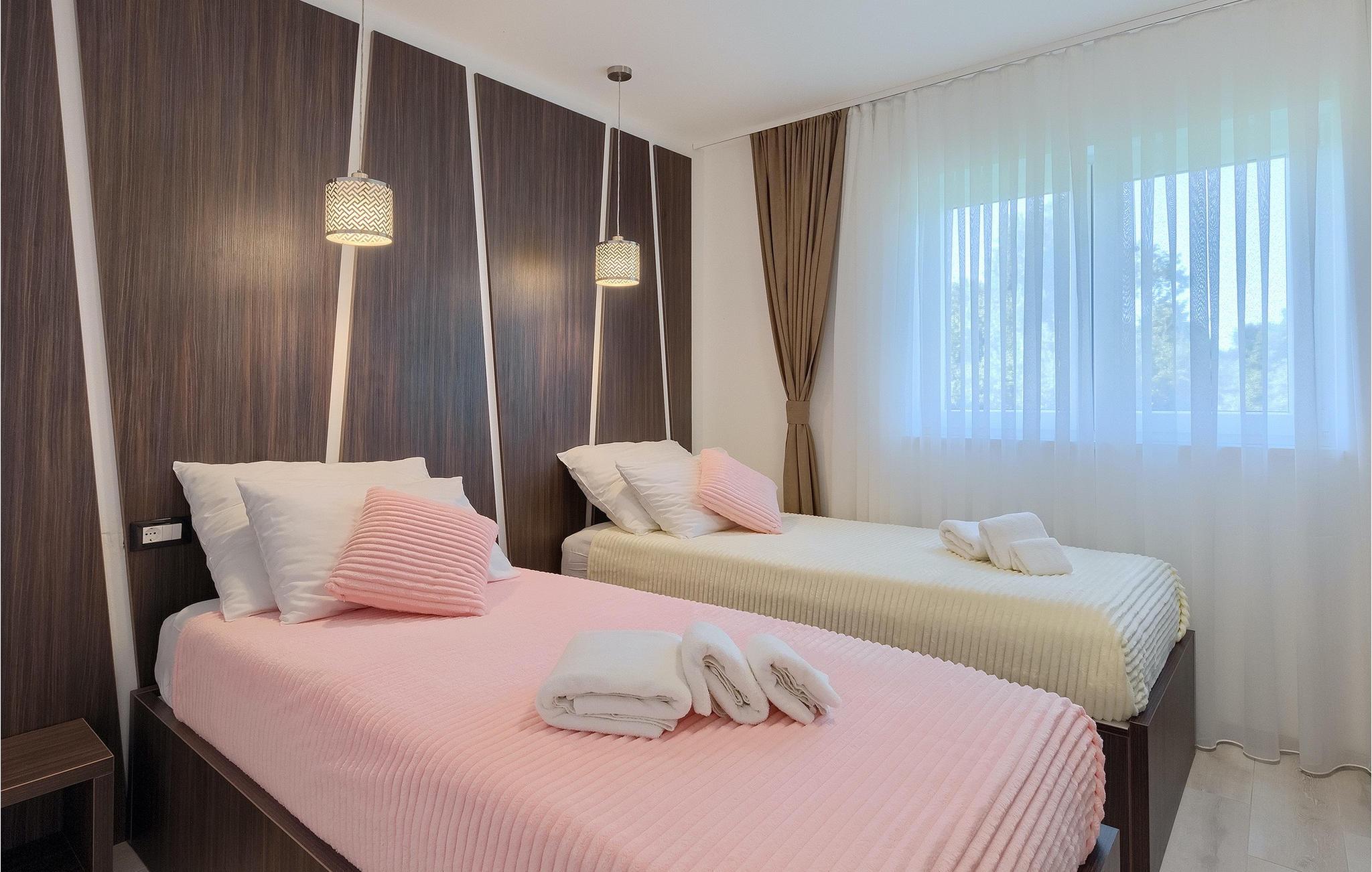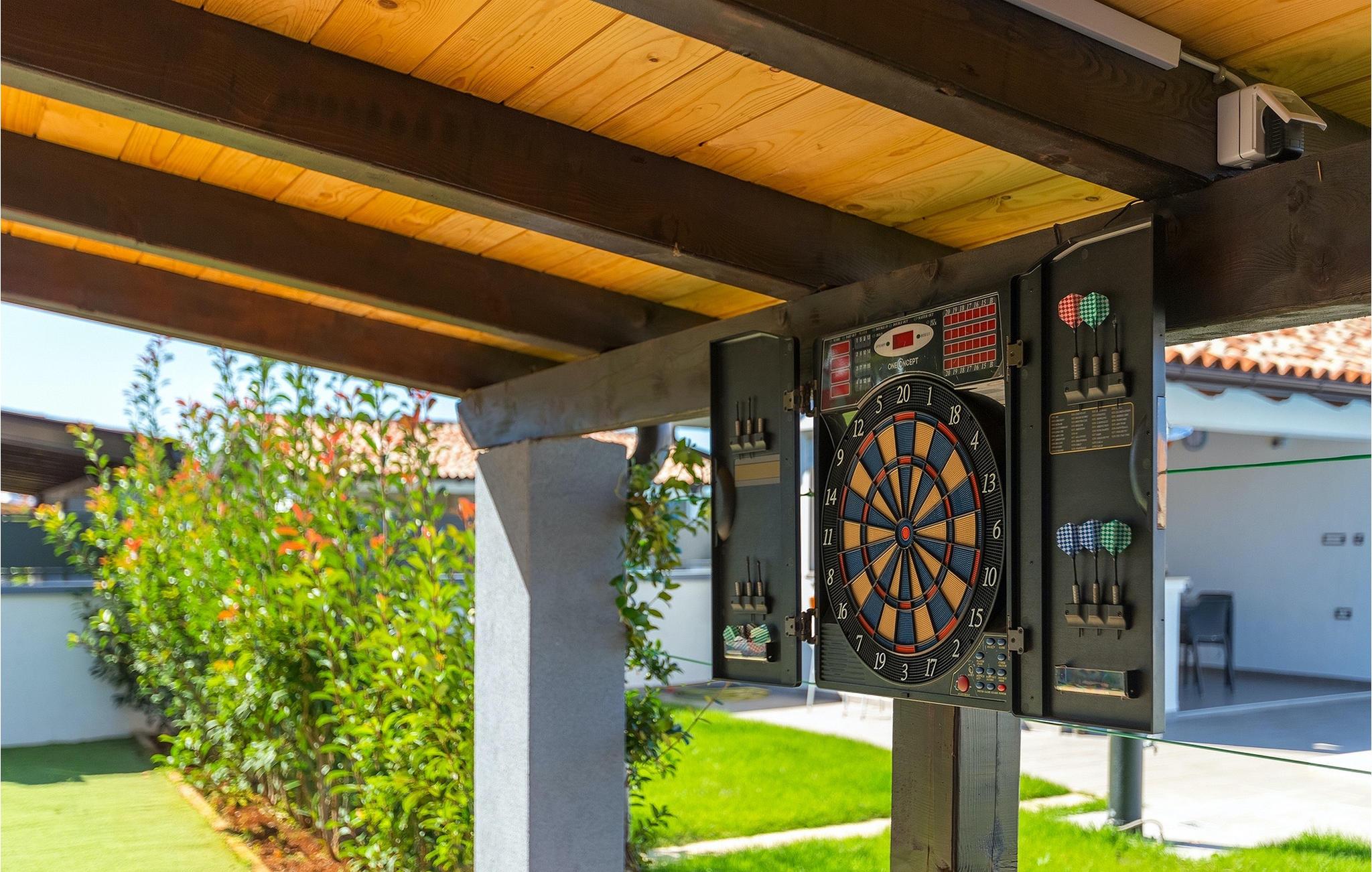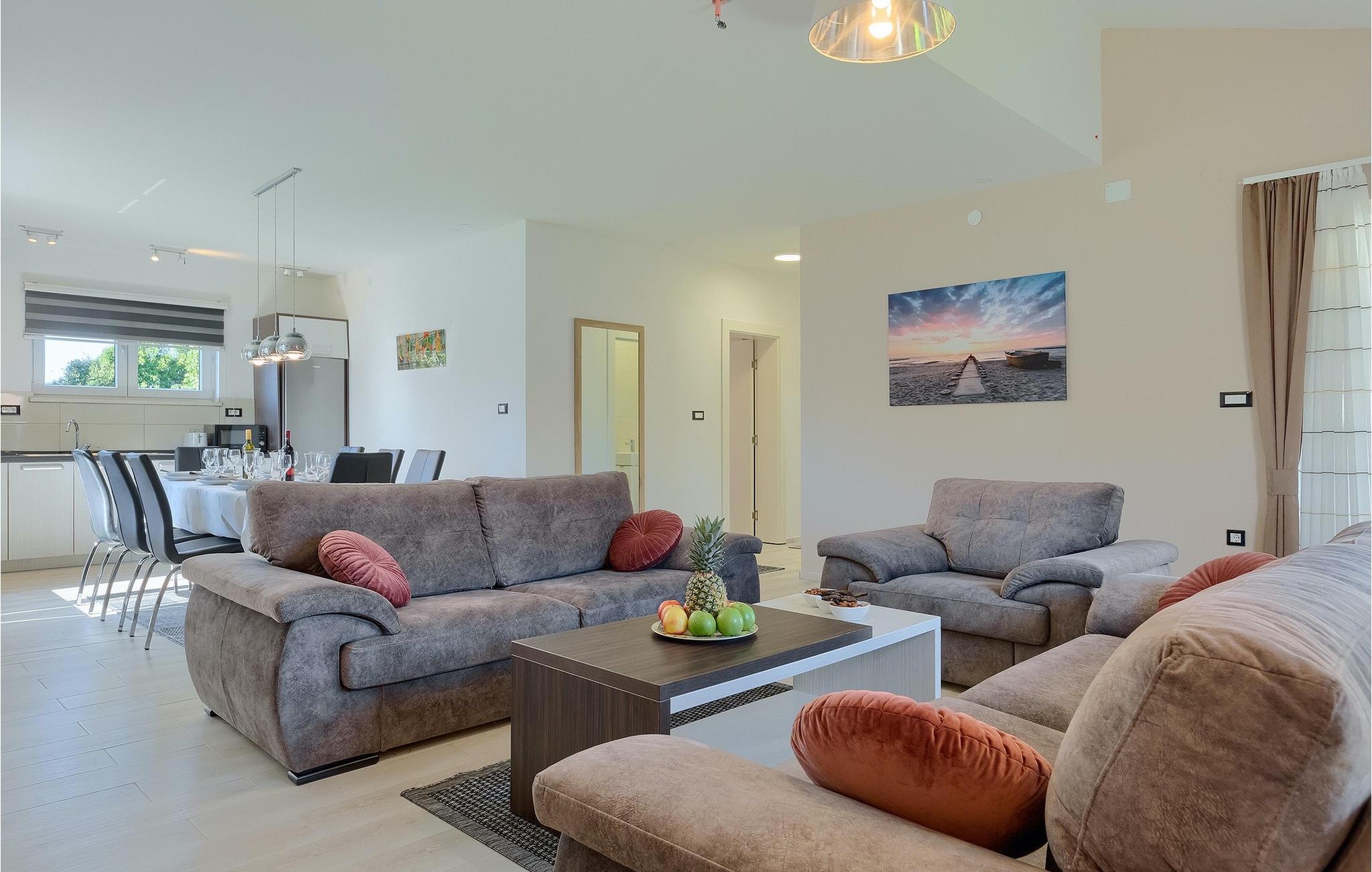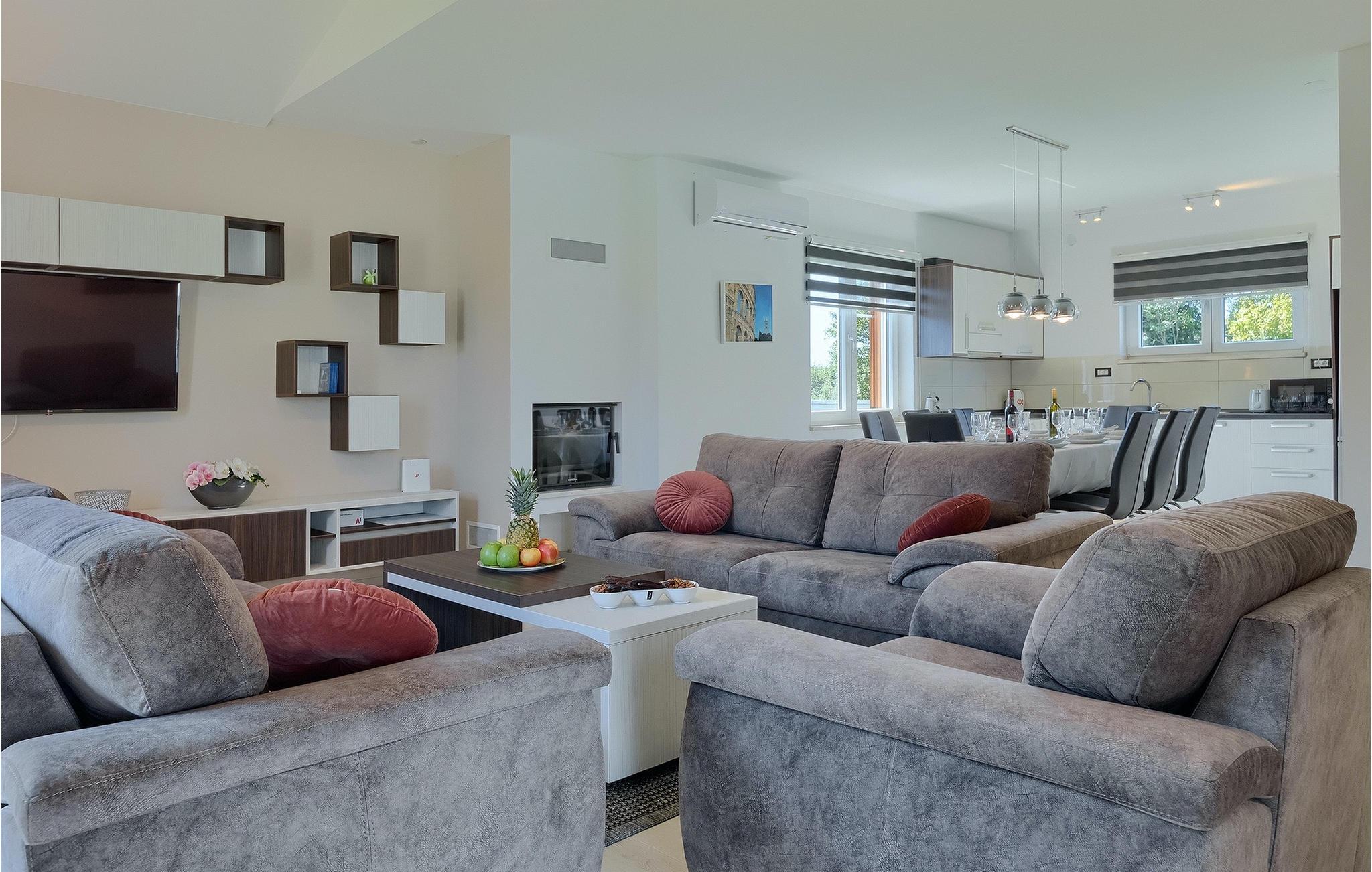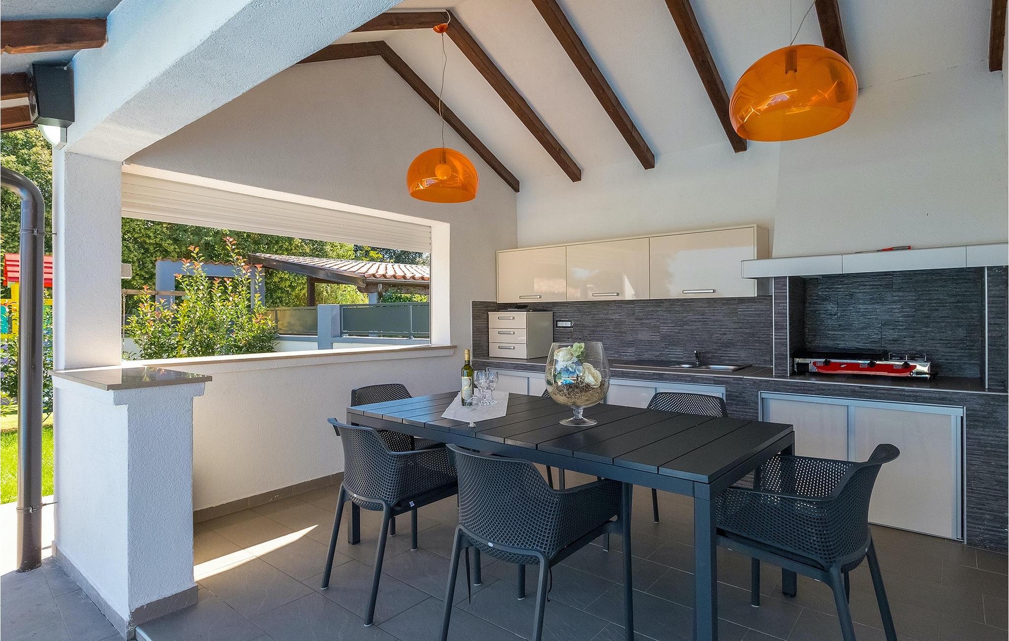 Denne smukke villa Alba Rossa er beliggende i den lille by Sisan nær den største by i Istrien - Pula. Ligesom hendes søstervilla Alba Bianca tilbyder denne villa dig alt til den perfekte ferie med din familie. Villaen kan rumme op til 8 personer. Hver villa fungerer som en separat enhed, og hvert hus har sin egen swimmingpool, jacuzzi, spa, grill, legeplads, bordtennis og bordfodbold. Husene hænger sammen, så de kan lejes af en større familie, og I kan alle slappe af og nyde naturens lyde og den smukke stemning, som begge villaer har at byde på. Ligesom Villa Alba Bianca har stueetagen i Villa Alba Rossa et vidunderligt køkken og spiseplads, en komfortabel og hyggelig stue og et soveværelse med to enkeltsenge. På første sal finder du to fuldt udstyrede dobbeltværelser med tv og aircondition og hver med eget badeværelse. Du ønsker at tilbringe det meste af din tid udendørs, hvilket er en god idé, da villaen byder på et smukt og stort overdækket sommerkøkken, hvor du kan tilberede lækre istriske delikatesser eller friske op og svømme i poolen. Vi tænkte også på jeres små, der kan hænge ud og hygge sig på den søde legeplads, mens de voksne hygger sig med jacuzzi eller grill. Hvis du vil have en drømmeferie, skal du sørge for at booke Alba Bianca Villa eller Alba Rossa Villa, det vil du ikke fortryde.Villaen Alba Rossa ligger i den beboede lille by Sisan i kommunen Liznjan i Istrien Amt, nær den største istriske by Pula. Kun 1,5 km væk fra villaen vil du støde på smukke sten- og sandstrande. Er du interesseret i mere aktive ferier og adrenalin, er der forskellige faciliteter såsom sejlads, golf, cykling, ridning, adrenalinpark osv. Der er en masse historiske og kulturelle seværdigheder i denne del af Istrien, som du skal besøge. Specialiteten i denne del af Istrien er de lækre istriske delikatesser lavet af Adriaterhavsfisk og den hjemmelavede "Malvazija", der passer til næsten enhver fiskeret. En uundværlig del af Pula er det mest berømte amfiteater fra det første århundrede, endda det sjette største i verden kaldet Arena, som stadig bruges i dag under forskellige kulturelle remedier og film- og sommerfestivaler. Byen har en lang tradition inden for vinfremstilling, fiskeri, skibsbygning og turisme.