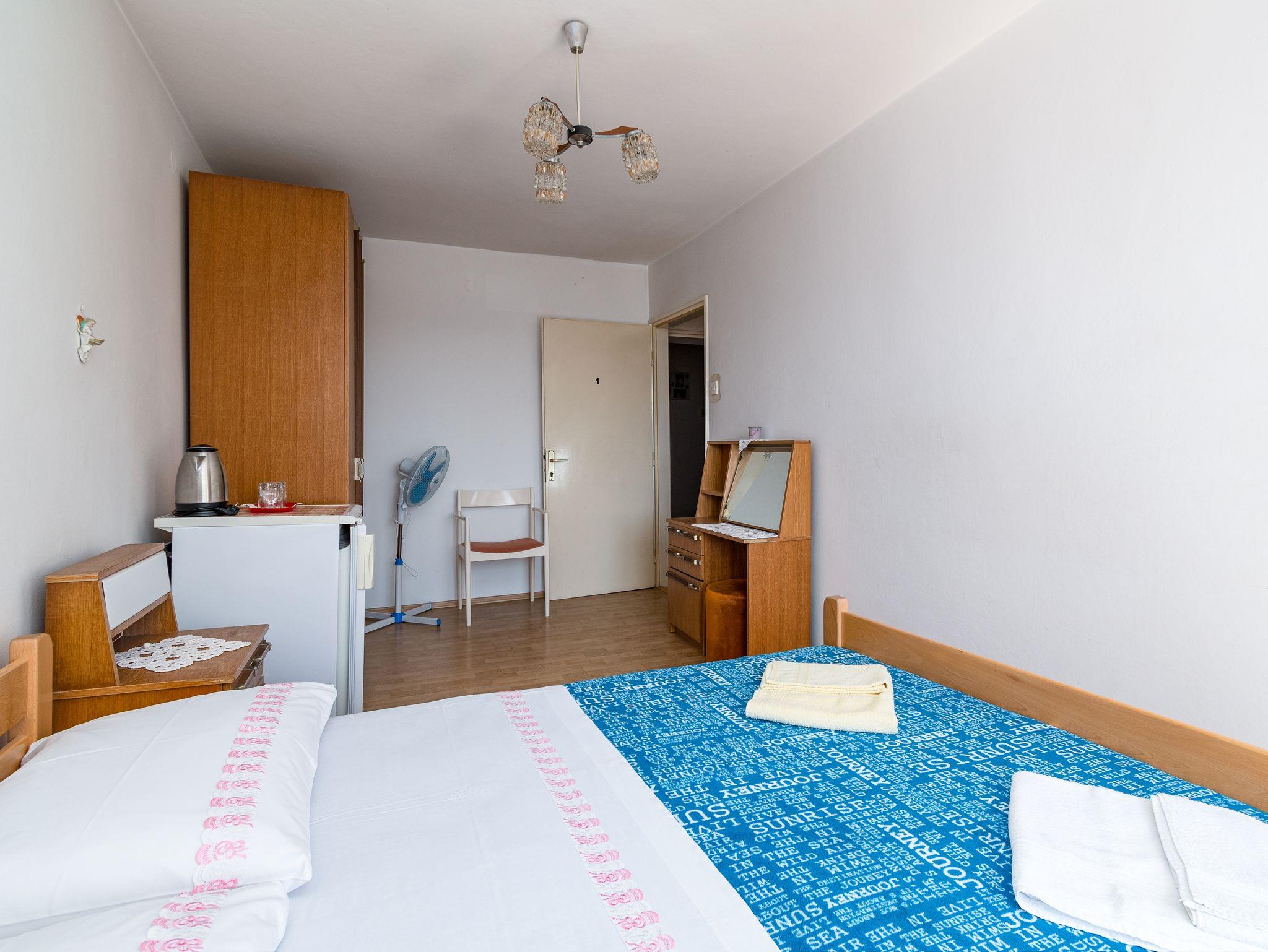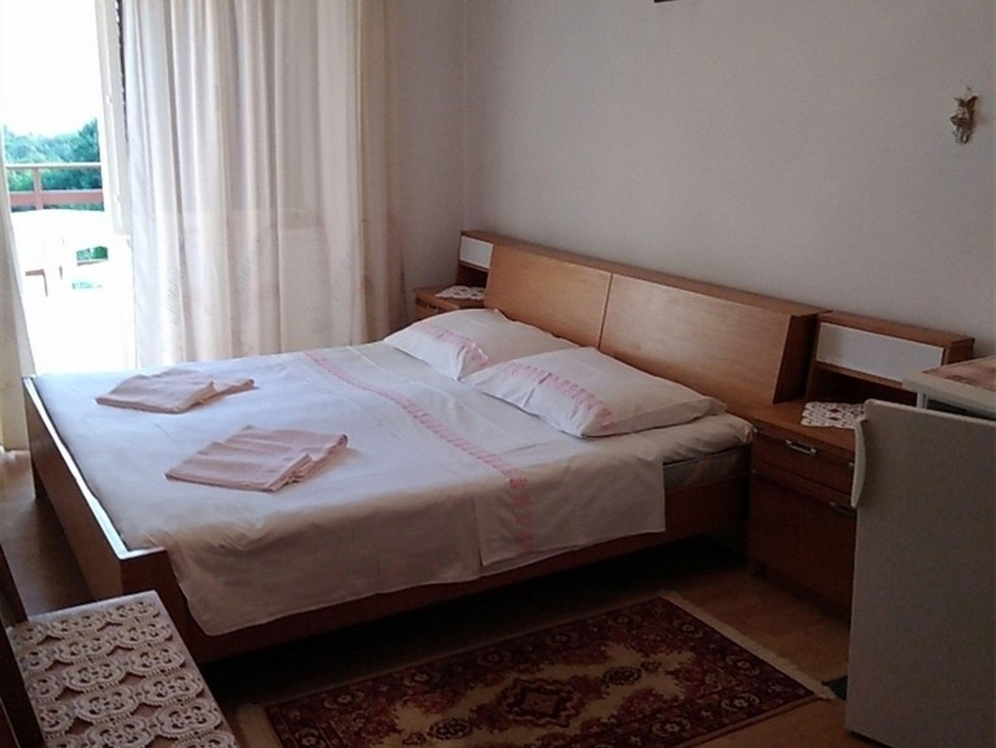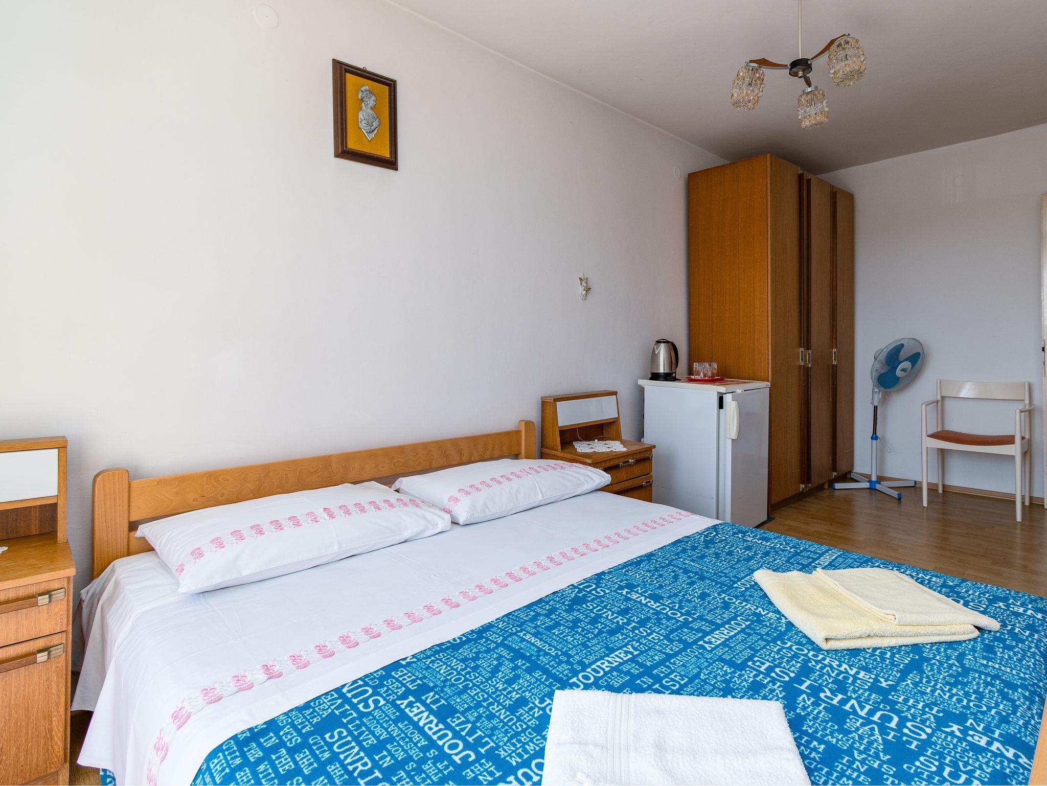 Zimmer bietet Platz für 2 Gäste. Die Betten sind in Schlafzimmern, die es 1 gibt, innerhalb einer Gesamtfläche von 18m2, angeordnet. Die Gäste haben eine eigene Terrasse zur Verfügung, auf der sie in warmen Sommernächten genießen können. Es ist erlaubt, Speisen auf dem Gemeinschafts-Grill vorzubereiten. Die reservierte Unterkunftseinheit ist ein Zimmer mit eigenem Badezimmer ohne die Möglichkeit der Nutzung einer Küche. Räume der gebuchten Unterkunftseinheit werden nicht in eine Ganze verbunden. Unterkunftseinheit hat Räume, die von dem Rest der Einheit abgetrennt werden. IM PREIS INBEGRIFFEN: Kurtaxe, Endreinigung, Klimatisierung, Parkplatz, Internet, Bügeleisen, Bügelbrett. VERBINDLICHE ZUSÄTZLICHE KOSTEN: Aufzahlung für Kurzaufenthalte (prozentualer Zuschlag pro Nächtigungsanzahl: 30% - 1, 20% - 2, 10% - 3). UNVERBINDLICHE ZUSÄTZLICHE KOSTEN: Zusatzbett (10,00 € pro Nacht). Die Verfügbarkeit zusätzlicher Dienstleistungen in Ihrem reservierten Termin und die Preise derselben (falls nicht aufgeführt) müssen im Voraus überprüft werden. Zusätzliche Dienstleistungen die in der Zahlungsaufforderung nicht aufgeführt sind werden direkt beim Vermieter bezahlt, angenommen der Gast nutzt auch diese. Ermäßigung auf den Grundpreis: Gratistag 14=13 (bei einem Aufenthalt von 14 Tagen oder mehr erhalten Sie einen Gratistag für den Aufenthalt bis 31.12.26).
