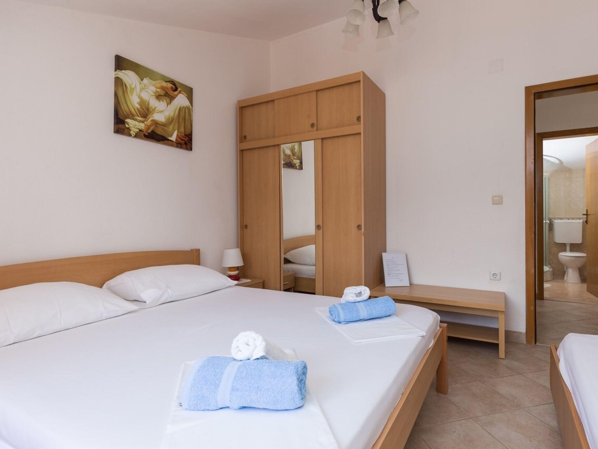 Ferienwohnung bietet Platz für 4 Gäste. Die Betten sind in Schlafzimmern, die es 1 gibt, und in Esszimmer, innerhalb einer Gesamtfläche von 24m2, angeordnet. Das Apartment bietet Meerblick. Es ist erlaubt, Speisen auf dem Gemeinschafts-Grill vorzubereiten. In der Unterkunftseinheit besteht die Möglichkeit des Mitbringens von Haustieren gegen Aufpreis. Die reservierte Unterkunftseinheit verfügt über einen gemeinsame Terrasse. IM PREIS INBEGRIFFEN: Kurtaxe, Endreinigung, Klimatisierung, Internet, Kinderbett, Bügeleisen, Bügelbrett, Föhn. UNVERBINDLICHE ZUSÄTZLICHE KOSTEN: Wäschewaschen (5,00 € Waschen), Bootsanlegeplatz (10,00 € pro Nacht), Haustiere (10,00 € pro Nacht). Die Verfügbarkeit zusätzlicher Dienstleistungen in Ihrem reservierten Termin und die Preise derselben (falls nicht aufgeführt) müssen im Voraus überprüft werden. Zusätzliche Dienstleistungen die in der Zahlungsaufforderung nicht aufgeführt sind werden direkt beim Vermieter bezahlt, angenommen der Gast nutzt auch diese.