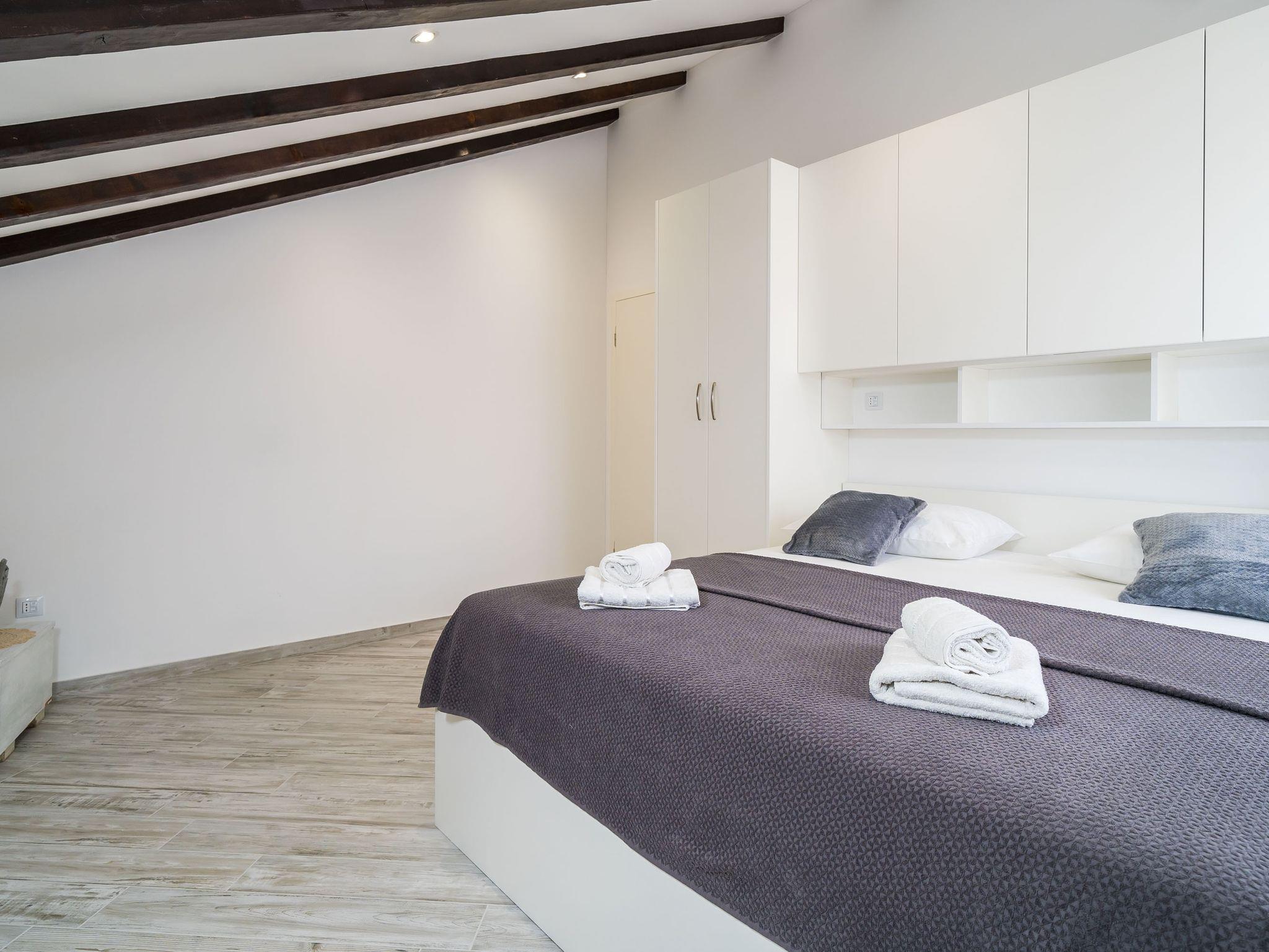 Haus bietet Platz für 12 Gäste. Die Betten sind in Schlafzimmern, die es 6 gibt, innerhalb einer Gesamtfläche von 194m2, angeordnet. Die Gäste haben eine eigene Terrasse zur Verfügung, auf der sie in warmen Sommernächten genießen können. Das Haus bietet Meerblick. Für vollen Genuss und Entspannung gibt es einen privaten Grill für Gäste dieser Unterkunft. Räume der gebuchten Unterkunftseinheit werden nicht in eine Ganze verbunden. IM PREIS INBEGRIFFEN: Kurtaxe, Endreinigung, Klimatisierung, Parkplatz, Internet, Bügeleisen, Bügelbrett, Föhn. VERBINDLICHE ZUSÄTZLICHE KOSTEN: Aufzahlung für Kurzaufenthalte (prozentualer Zuschlag pro Nächtigungsanzahl: 30% - 1, 20% - 2, 10% - 3). Die Verfügbarkeit zusätzlicher Dienstleistungen in Ihrem reservierten Termin und die Preise derselben (falls nicht aufgeführt) müssen im Voraus überprüft werden. Zusätzliche Dienstleistungen die in der Zahlungsaufforderung nicht aufgeführt sind werden direkt beim Vermieter bezahlt, angenommen der Gast nutzt auch diese.