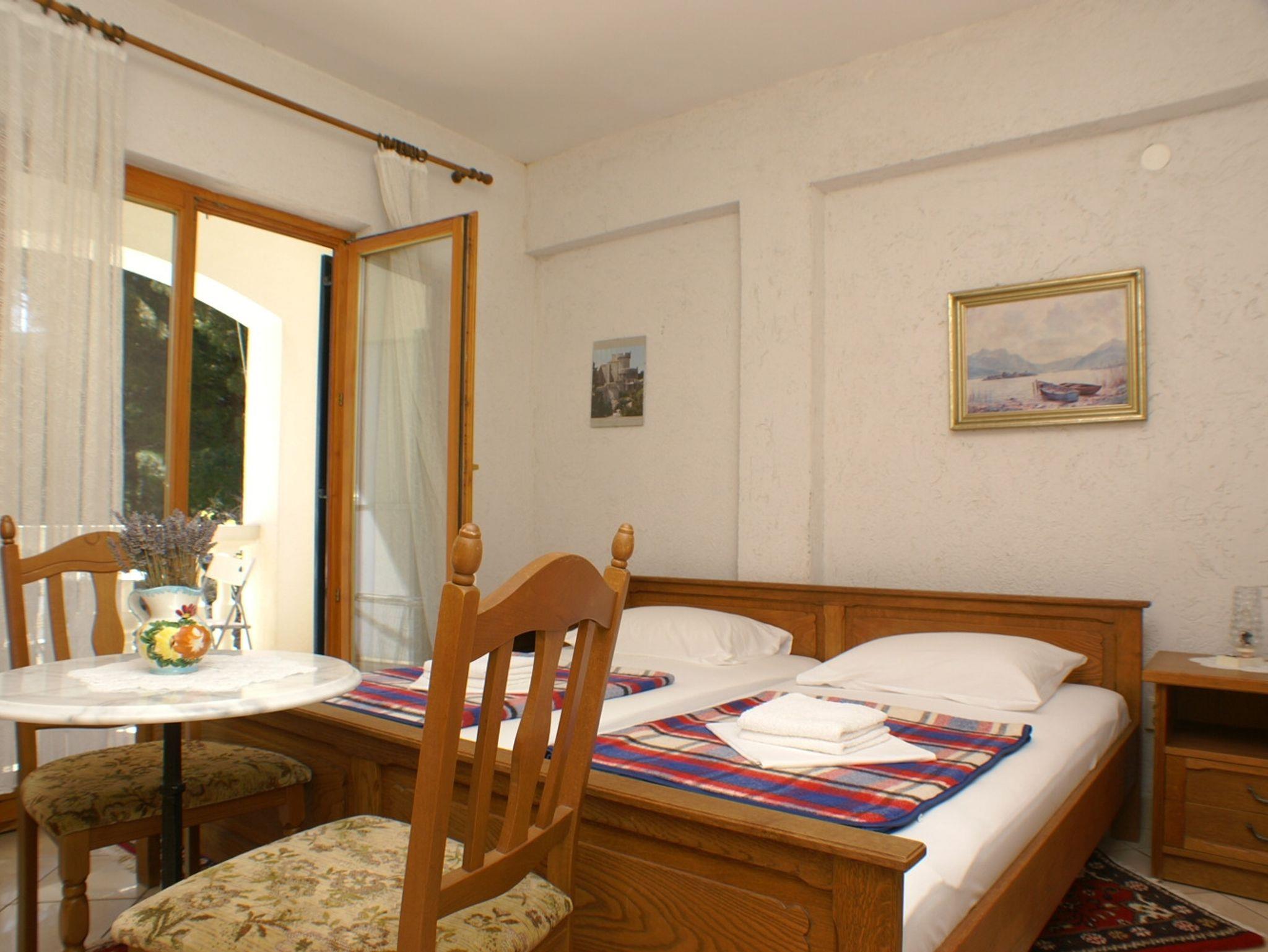 Zimmer bietet Platz für 2 Gäste. Die Betten sind in Schlafzimmern, die es 1 gibt, innerhalb einer Gesamtfläche von 16m2, angeordnet. Die Gäste haben eine eigene Terrasse zur Verfügung, auf der sie in warmen Sommernächten genießen können. Das Zimmer bietet Meerblick. In der Unterkunftseinheit besteht die Möglichkeit des Mitbringens von Haustieren gegen Aufpreis. Die reservierte Unterkunftseinheit ist ein Zimmer mit eigenem Badezimmer ohne die Möglichkeit der Nutzung einer Küche. IM PREIS INBEGRIFFEN: Kurtaxe, Endreinigung, Klimatisierung, Parkplatz, Internet, Kinderbett, Bügeleisen, Bügelbrett, Föhn. VERBINDLICHE ZUSÄTZLICHE KOSTEN: Aufzahlung für Kurzaufenthalte (prozentualer Zuschlag pro Nächtigungsanzahl: 30% - 1, 20% - 2, 10% - 3). UNVERBINDLICHE ZUSÄTZLICHE KOSTEN: Wäschewaschen (5,00 € Waschen), Bootsanlegeplatz (3,00 € pro Nacht), Haustiere (5,00 € pro Nacht), Zusatzbett (10,00 € pro Nacht). Die Verfügbarkeit zusätzlicher Dienstleistungen in Ihrem reservierten Termin und die Preise derselben (falls nicht aufgeführt) müssen im Voraus überprüft werden. Zusätzliche Dienstleistungen die in der Zahlungsaufforderung nicht aufgeführt sind werden direkt beim Vermieter bezahlt, angenommen der Gast nutzt auch diese.