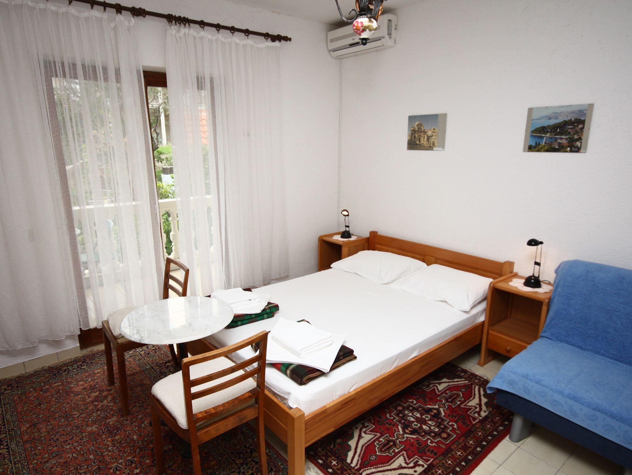 Zimmer bietet Platz für 3 Gäste. Die Betten sind in Schlafzimmern, die es 1 gibt, innerhalb einer Gesamtfläche von 16m2, angeordnet. Die Gäste haben eine eigene Terrasse zur Verfügung, auf der sie in warmen Sommernächten genießen können. In der Unterkunftseinheit besteht die Möglichkeit des Mitbringens von Haustieren gegen Aufpreis. Die reservierte Unterkunftseinheit ist ein Zimmer mit eigenem Badezimmer ohne die Möglichkeit der Nutzung einer Küche. IM PREIS INBEGRIFFEN: Kurtaxe, Endreinigung, Klimatisierung, Parkplatz, Internet, Kinderbett, Bügeleisen, Bügelbrett, Föhn. VERBINDLICHE ZUSÄTZLICHE KOSTEN: Aufzahlung für Kurzaufenthalte (prozentualer Zuschlag pro Nächtigungsanzahl: 30% - 1, 20% - 2, 10% - 3). UNVERBINDLICHE ZUSÄTZLICHE KOSTEN: Wäschewaschen (5,00 € Waschen), Bootsanlegeplatz (3,00 € pro Nacht), Haustiere (5,00 € pro Nacht). Die Verfügbarkeit zusätzlicher Dienstleistungen in Ihrem reservierten Termin und die Preise derselben (falls nicht aufgeführt) müssen im Voraus überprüft werden. Zusätzliche Dienstleistungen die in der Zahlungsaufforderung nicht aufgeführt sind werden direkt beim Vermieter bezahlt, angenommen der Gast nutzt auch diese.