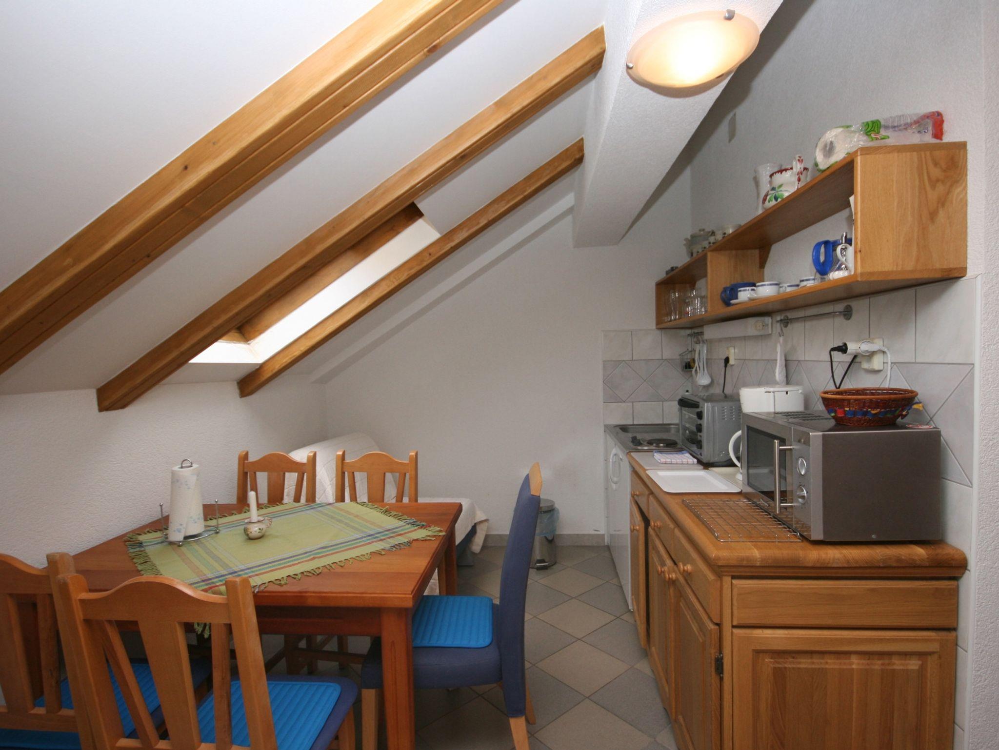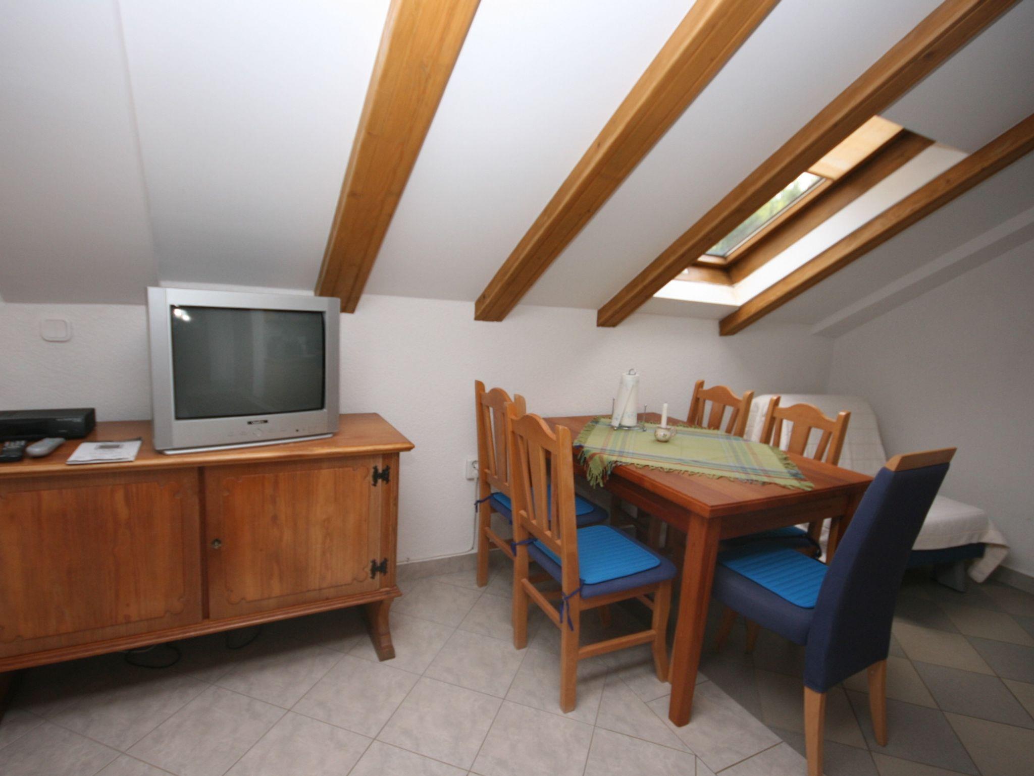 Ferienwohnung bietet Platz für 5 Gäste. Die Betten sind in Schlafzimmern, die es 1 gibt, und in Wohnzimmer und Esszimmer, innerhalb einer Gesamtfläche von 32m2, angeordnet. Die Gäste haben eine eigene Terrasse zur Verfügung, auf der sie in warmen Sommernächten genießen können. Das Apartment bietet Meerblick. In der Unterkunftseinheit besteht die Möglichkeit des Mitbringens von Haustieren gegen Aufpreis. IM PREIS INBEGRIFFEN: Kurtaxe, Endreinigung, Klimatisierung, Parkplatz, Internet, Kinderbett, Bügeleisen, Bügelbrett, Föhn. VERBINDLICHE ZUSÄTZLICHE KOSTEN: Aufzahlung für Kurzaufenthalte (prozentualer Zuschlag pro Nächtigungsanzahl: 30% - 1, 20% - 2, 10% - 3). UNVERBINDLICHE ZUSÄTZLICHE KOSTEN: Wäschewaschen (5,00 € Waschen), Bootsanlegeplatz (3,00 € pro Nacht), Haustiere (5,00 € pro Nacht). Die Verfügbarkeit zusätzlicher Dienstleistungen in Ihrem reservierten Termin und die Preise derselben (falls nicht aufgeführt) müssen im Voraus überprüft werden. Zusätzliche Dienstleistungen die in der Zahlungsaufforderung nicht aufgeführt sind werden direkt beim Vermieter bezahlt, angenommen der Gast nutzt auch diese.
