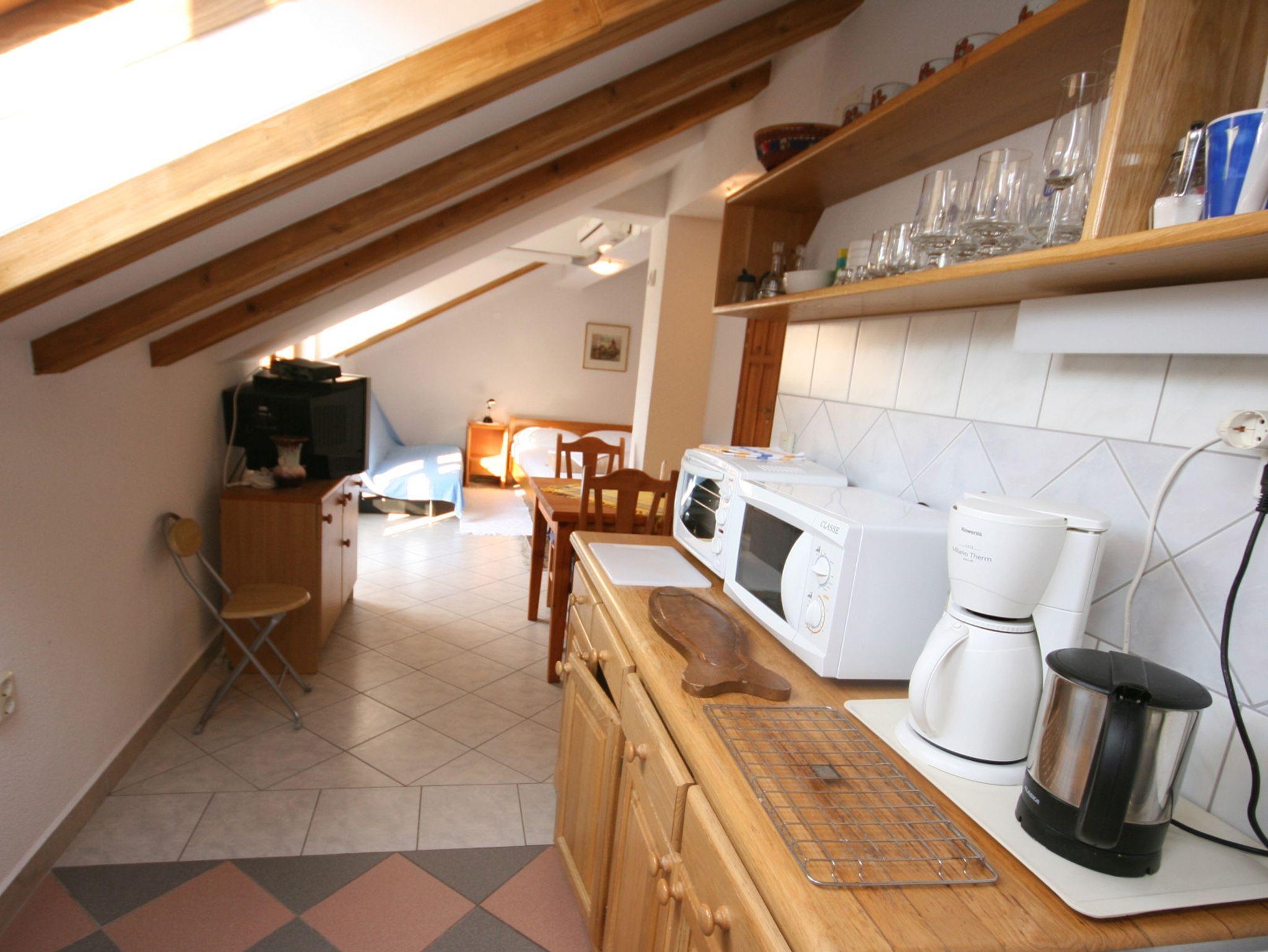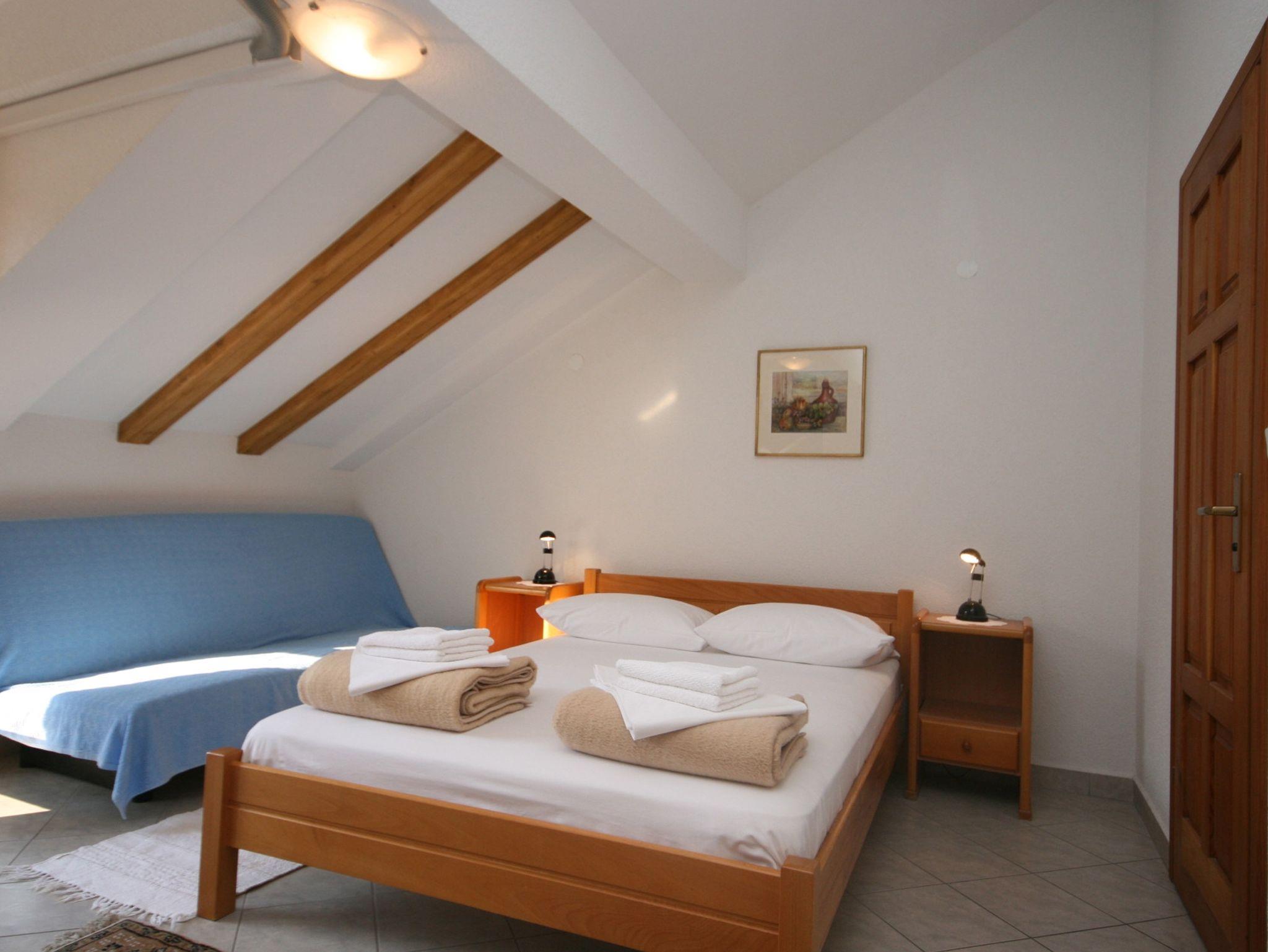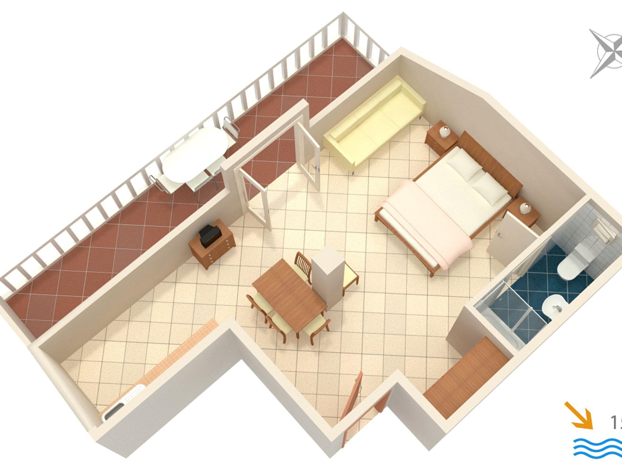 Studio bietet Platz für 4 Gäste. Die Betten sind in Schlafzimmern, die es 1 gibt, innerhalb einer Gesamtfläche von 31m2, angeordnet. Die Gäste haben eine eigene Terrasse zur Verfügung, auf der sie in warmen Sommernächten genießen können. In der Unterkunftseinheit besteht die Möglichkeit des Mitbringens von Haustieren gegen Aufpreis. IM PREIS INBEGRIFFEN: Kurtaxe, Endreinigung, Klimatisierung, Parkplatz, Internet, Kinderbett, Bügeleisen, Bügelbrett, Föhn. VERBINDLICHE ZUSÄTZLICHE KOSTEN: Aufzahlung für Kurzaufenthalte (prozentualer Zuschlag pro Nächtigungsanzahl: 30% - 1, 20% - 2, 10% - 3). UNVERBINDLICHE ZUSÄTZLICHE KOSTEN: Wäschewaschen (5,00 € Waschen), Bootsanlegeplatz (3,00 € pro Nacht), Haustiere (5,00 € pro Nacht). Die Verfügbarkeit zusätzlicher Dienstleistungen in Ihrem reservierten Termin und die Preise derselben (falls nicht aufgeführt) müssen im Voraus überprüft werden. Zusätzliche Dienstleistungen die in der Zahlungsaufforderung nicht aufgeführt sind werden direkt beim Vermieter bezahlt, angenommen der Gast nutzt auch diese.