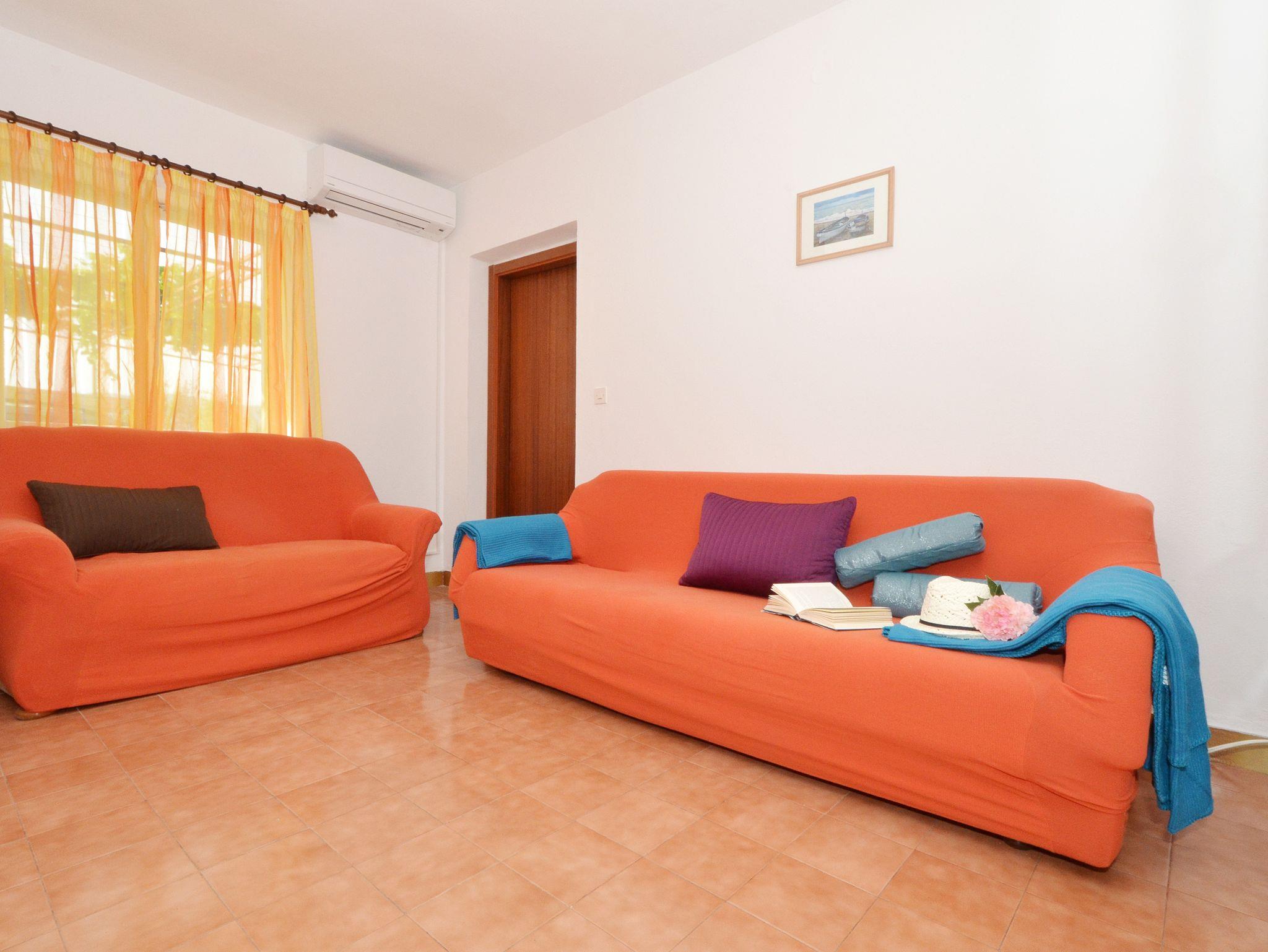 Ferienwohnung bietet Platz für 4 Gäste. Die Betten sind in Schlafzimmern, die es 1 gibt, und in Wohnzimmer, innerhalb einer Gesamtfläche von 43m2, angeordnet. Die Gäste haben eine eigene Terrasse zur Verfügung, auf der sie in warmen Sommernächten genießen können. Es ist erlaubt, Speisen auf dem Gemeinschafts-Grill vorzubereiten. Durch die Terrasse der gebuchten Unterkunftseinheit gehen auch andere Gäste oder Vermieter. IM PREIS INBEGRIFFEN: Kurtaxe, Endreinigung, Klimatisierung, Parkplatz, Internet, Wäschewaschen. VERBINDLICHE ZUSÄTZLICHE KOSTEN: Aufzahlung für Kurzaufenthalte (prozentualer Zuschlag pro Nächtigungsanzahl: 30% - 1, 20% - 2, 10% - 3). UNVERBINDLICHE ZUSÄTZLICHE KOSTEN: Bootsanlegeplatz (5,00 € pro Nacht). Die Verfügbarkeit zusätzlicher Dienstleistungen in Ihrem reservierten Termin und die Preise derselben (falls nicht aufgeführt) müssen im Voraus überprüft werden. Zusätzliche Dienstleistungen die in der Zahlungsaufforderung nicht aufgeführt sind werden direkt beim Vermieter bezahlt, angenommen der Gast nutzt auch diese.