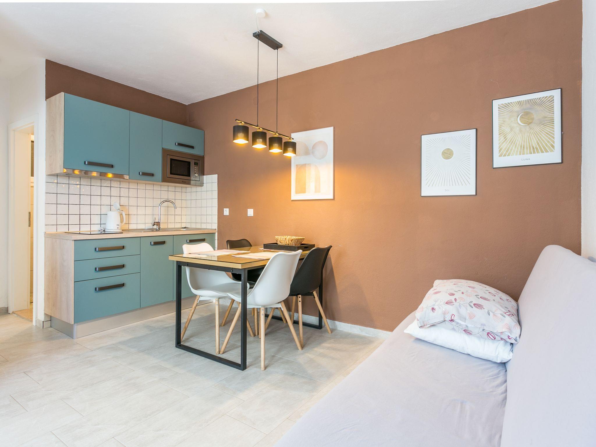 Ferienwohnung bietet Platz für 3 Gäste. Die Betten sind in Schlafzimmern, die es 1 gibt, und in Wohnzimmer, innerhalb einer Gesamtfläche von 31m2, angeordnet. Die Gäste haben eine eigene Terrasse zur Verfügung, auf der sie in warmen Sommernächten genießen können. Das Apartment bietet Meerblick. Es ist erlaubt, Speisen auf dem Gemeinschafts-Grill vorzubereiten. IM PREIS INBEGRIFFEN: Kurtaxe, Endreinigung, Klimatisierung, Parkplatz, Internet, Bootsanlegeplatz, Liegestühle. Die Verfügbarkeit zusätzlicher Dienstleistungen in Ihrem reservierten Termin und die Preise derselben (falls nicht aufgeführt) müssen im Voraus überprüft werden. Zusätzliche Dienstleistungen die in der Zahlungsaufforderung nicht aufgeführt sind werden direkt beim Vermieter bezahlt, angenommen der Gast nutzt auch diese.