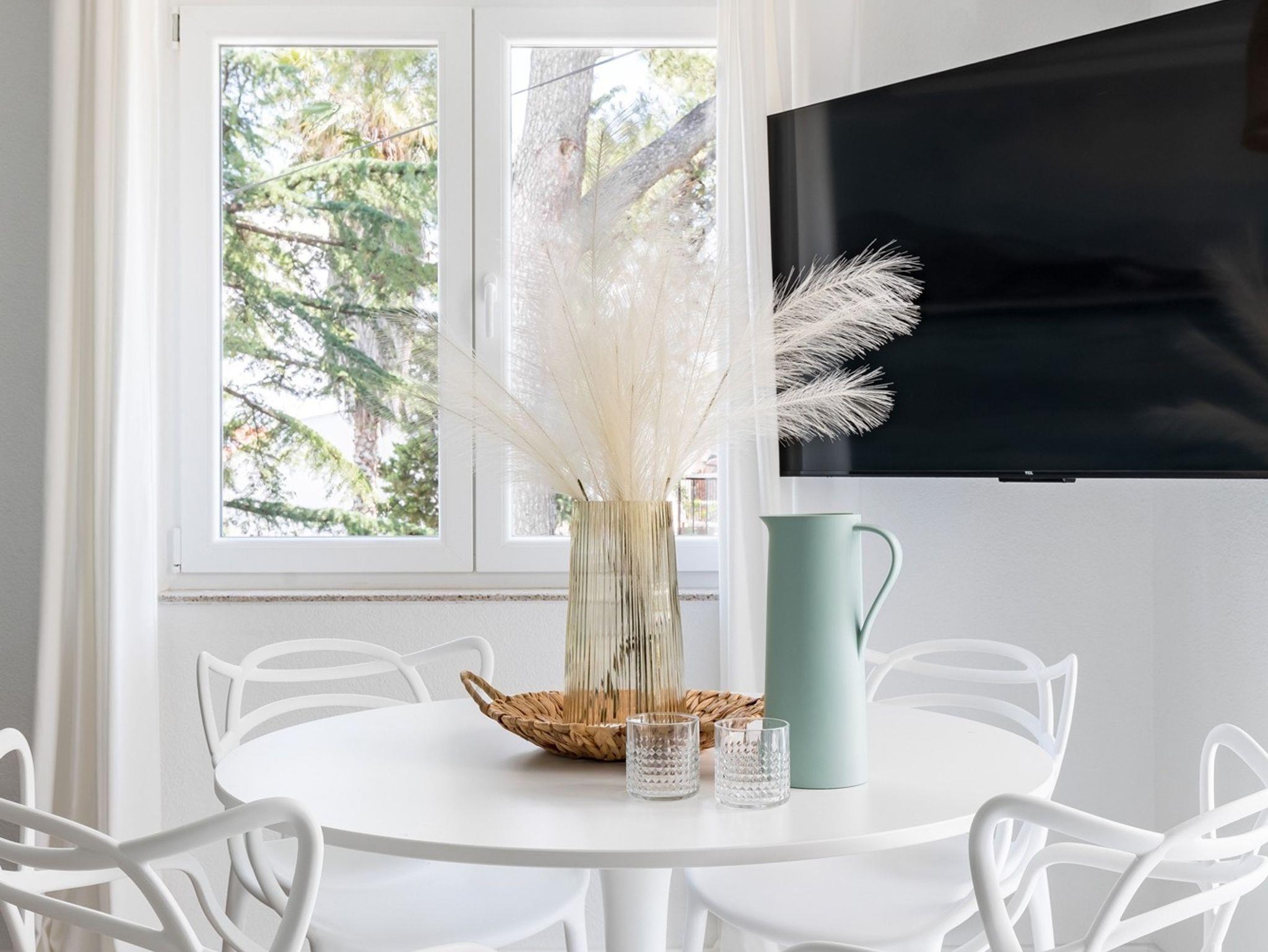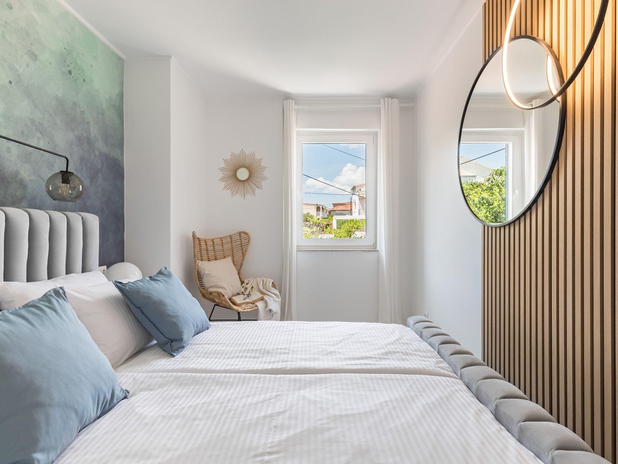 Ferienwohnung bietet Platz für 6 Gäste. Die Betten sind in Schlafzimmern, die es 2 gibt, und in Wohnzimmer, innerhalb einer Gesamtfläche von 44m2, angeordnet. Die Gäste haben eine eigene Terrasse zur Verfügung, auf der sie in warmen Sommernächten genießen können. Das Apartment bietet Meerblick. Für vollen Genuss und Entspannung gibt es einen privaten Grill für Gäste dieser Unterkunft. Während ihres Aufenthalts können Gäste das gemeinsam zur Nutzung stehende Schwimmbad benutzen. In der Unterkunftseinheit besteht die Möglichkeit des Mitbringens von Haustieren gegen Aufpreis. IM PREIS INBEGRIFFEN: Endreinigung, Klimatisierung, Pool, Parkplatz, Internet, Kinderbett, Bügeleisen, Bügelbrett, Föhn. VERBINDLICHE ZUSÄTZLICHE KOSTEN: Kurtaxe (Erwachsene 0,93 € - 2,65 € Nacht/Person, Kinderermäßigung 12 - 17 Jahre). UNVERBINDLICHE ZUSÄTZLICHE KOSTEN: Wäschewaschen (5,00 € Waschen), Haustiere (5,00 € pro Nacht). Die Verfügbarkeit zusätzlicher Dienstleistungen in Ihrem reservierten Termin und die Preise derselben (falls nicht aufgeführt) müssen im Voraus überprüft werden. Zusätzliche Dienstleistungen die in der Zahlungsaufforderung nicht aufgeführt sind werden direkt beim Vermieter bezahlt, angenommen der Gast nutzt auch diese.