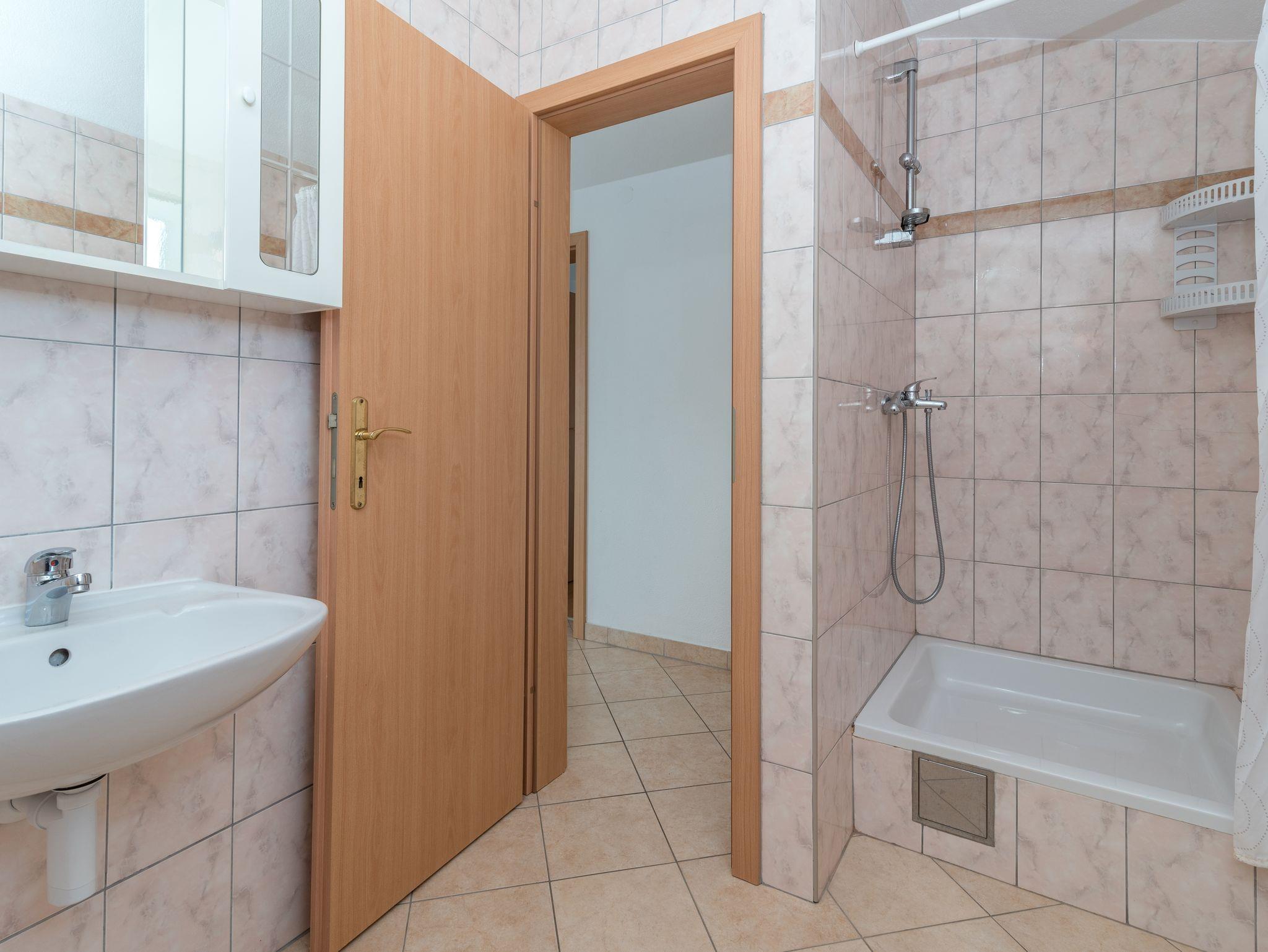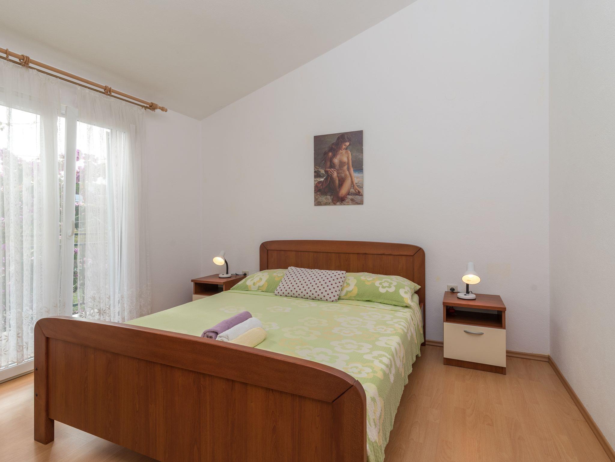 Ferienwohnung bietet Platz für 5 Gäste. Die Betten sind in Schlafzimmern, die es 2 gibt, und in Esszimmer, innerhalb einer Gesamtfläche von 50m2, angeordnet. Die Gäste haben einen eigenen Balkon zur Verfügung, auf der sie in warmen Sommernächten genießen können. Das Apartment bietet Meerblick. Es ist erlaubt, Speisen auf dem Gemeinschafts-Grill vorzubereiten. IM PREIS INBEGRIFFEN: Kurtaxe, Endreinigung, Klimatisierung, Parkplatz, Internet, Wäschewaschen, Bügeleisen, Bügelbrett, Föhn. VERBINDLICHE ZUSÄTZLICHE KOSTEN: Aufzahlung für Kurzaufenthalte (prozentualer Zuschlag pro Nächtigungsanzahl: 30% - 1, 20% - 2, 10% - 3). Die Verfügbarkeit zusätzlicher Dienstleistungen in Ihrem reservierten Termin und die Preise derselben (falls nicht aufgeführt) müssen im Voraus überprüft werden. Zusätzliche Dienstleistungen die in der Zahlungsaufforderung nicht aufgeführt sind werden direkt beim Vermieter bezahlt, angenommen der Gast nutzt auch diese.