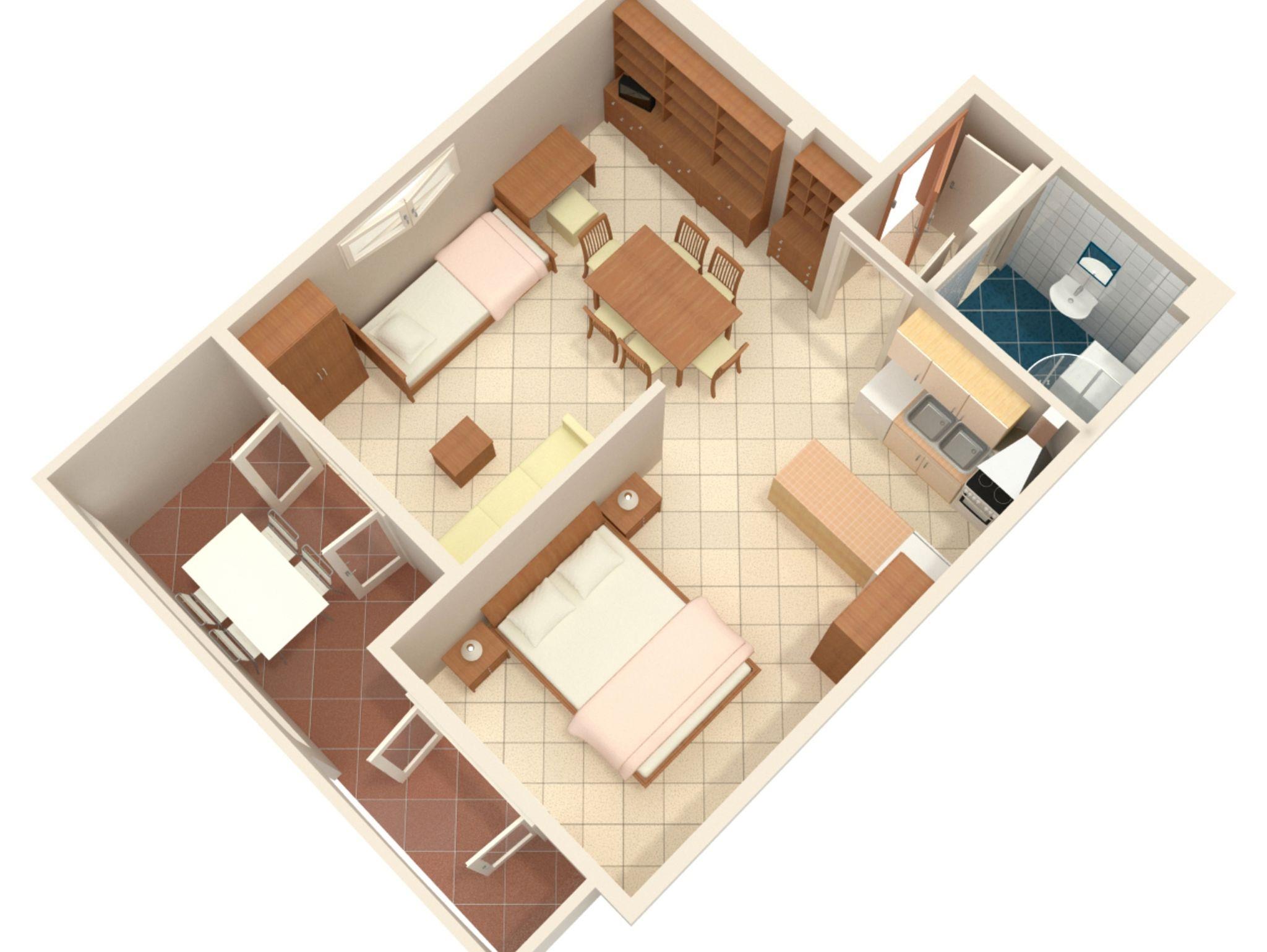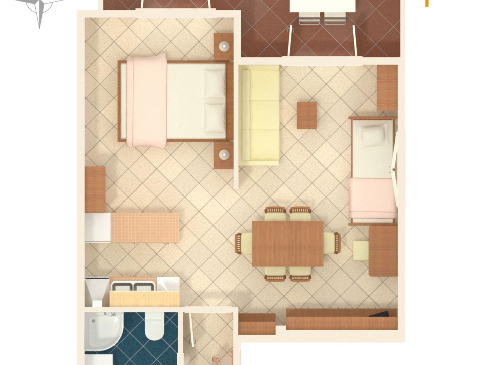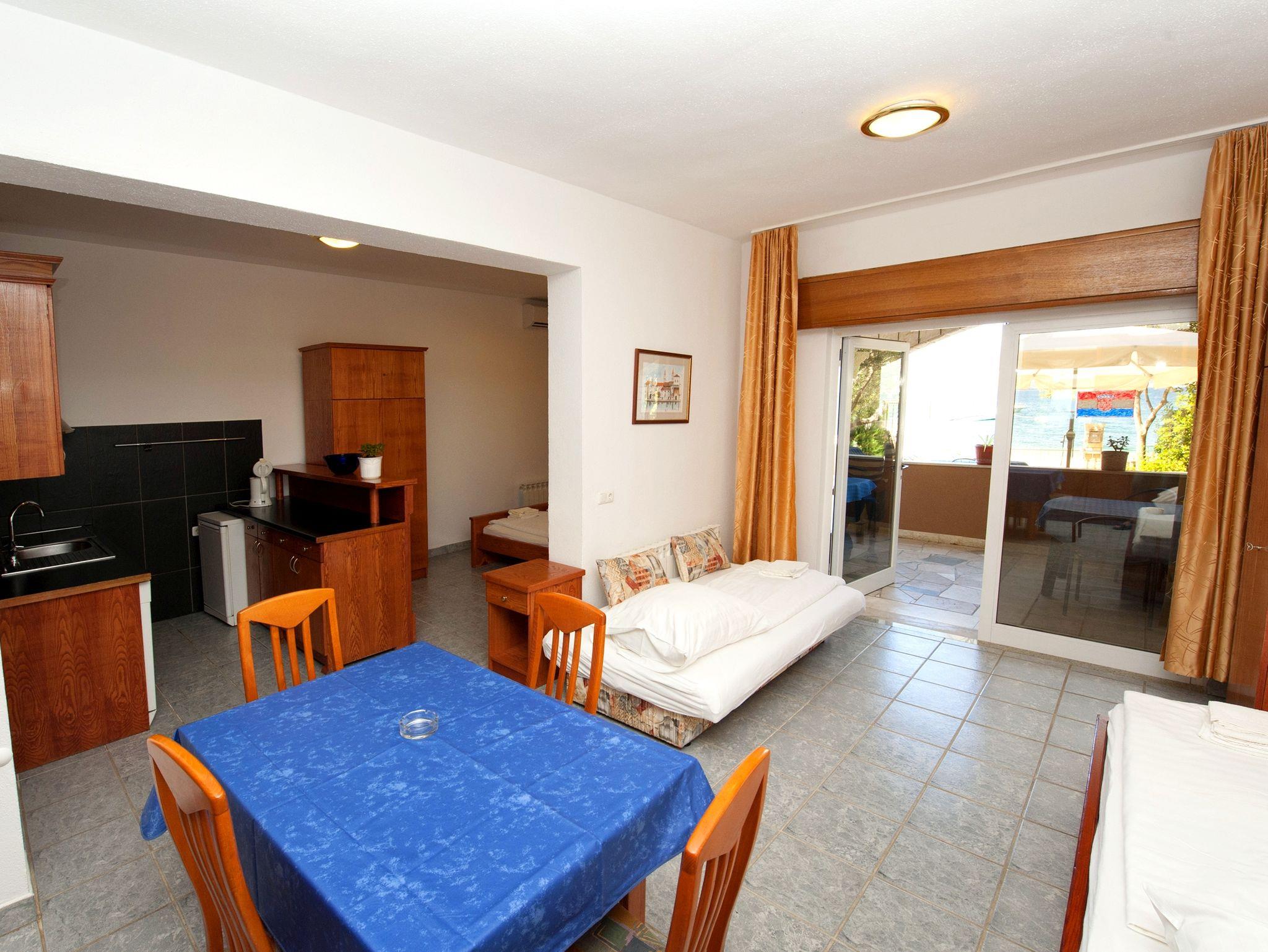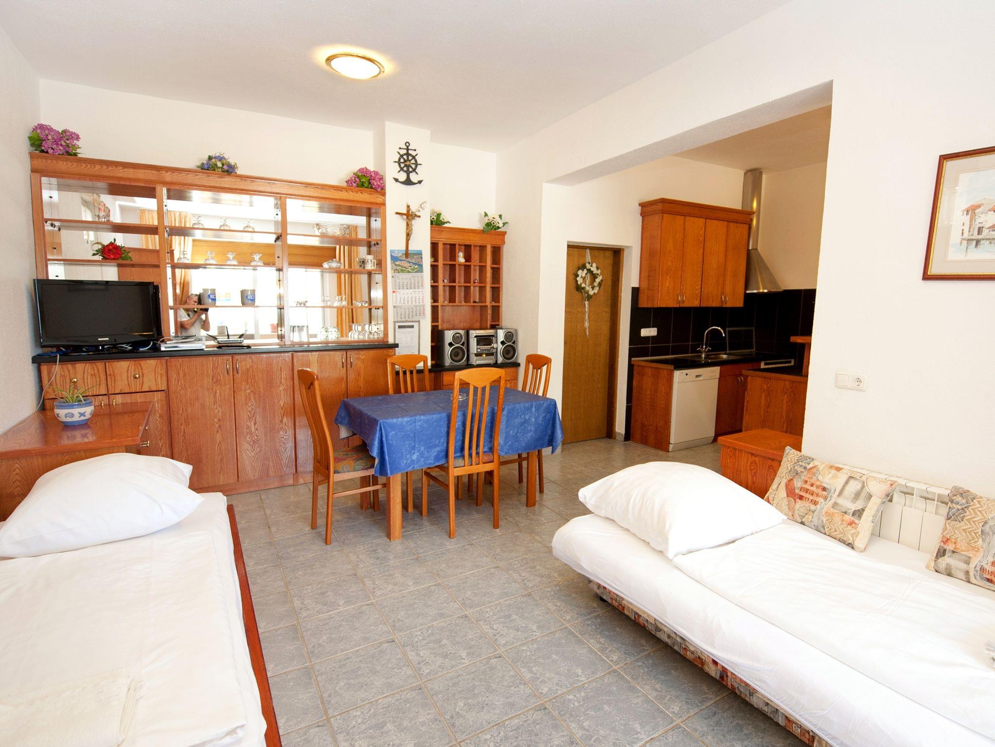 Studio bietet Platz für 4 Gäste. Die Betten sind in Schlafzimmern, die es 1 gibt, und in Esszimmer, innerhalb einer Gesamtfläche von 41m2, angeordnet. Die Gäste haben eine eigene Terrasse zur Verfügung, auf der sie in warmen Sommernächten genießen können. Das Studio-Apartment bietet Meerblick. Es ist erlaubt, Speisen auf dem Gemeinschafts-Grill vorzubereiten. IM PREIS INBEGRIFFEN: Kurtaxe, Endreinigung, Klimatisierung, Parkplatz, Internet, Bügeleisen, Bügelbrett. VERBINDLICHE ZUSÄTZLICHE KOSTEN: Aufzahlung für Kurzaufenthalte (prozentualer Zuschlag pro Nächtigungsanzahl: 30% - 1, 20% - 2, 10% - 3). Die Verfügbarkeit zusätzlicher Dienstleistungen in Ihrem reservierten Termin und die Preise derselben (falls nicht aufgeführt) müssen im Voraus überprüft werden. Zusätzliche Dienstleistungen die in der Zahlungsaufforderung nicht aufgeführt sind werden direkt beim Vermieter bezahlt, angenommen der Gast nutzt auch diese.