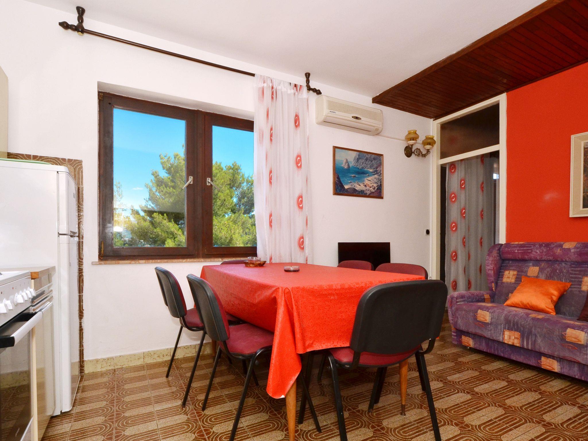 Ferienwohnung bietet Platz für 5 Gäste. Die Betten sind in Schlafzimmern, die es 2 gibt, und in Esszimmer, innerhalb einer Gesamtfläche von 48m2, angeordnet. Die Gäste haben eine eigene Terrasse zur Verfügung, auf der sie in warmen Sommernächten genießen können. Das Apartment bietet Meerblick. Es ist erlaubt, Speisen auf dem Gemeinschafts-Grill vorzubereiten. In der Unterkunftseinheit besteht die Möglichkeit des Mitbringens von Haustieren gegen Aufpreis. IM PREIS INBEGRIFFEN: Kurtaxe, Endreinigung, Klimatisierung, Parkplatz, Garage, Internet, Bootsanlegeplatz, Kinderbett. VERBINDLICHE ZUSÄTZLICHE KOSTEN: Aufzahlung für Kurzaufenthalte (prozentualer Zuschlag pro Nächtigungsanzahl: 30% - 1, 20% - 2, 10% - 3). UNVERBINDLICHE ZUSÄTZLICHE KOSTEN: Haustiere (10,00 € pro Nacht). Die Verfügbarkeit zusätzlicher Dienstleistungen in Ihrem reservierten Termin und die Preise derselben (falls nicht aufgeführt) müssen im Voraus überprüft werden. Zusätzliche Dienstleistungen die in der Zahlungsaufforderung nicht aufgeführt sind werden direkt beim Vermieter bezahlt, angenommen der Gast nutzt auch diese. Ermäßigung auf den Grundpreis: Gratistag 14=13 (bei einem Aufenthalt von 14 Tagen oder mehr erhalten Sie einen Gratistag für den Aufenthalt bis 31.12.26).