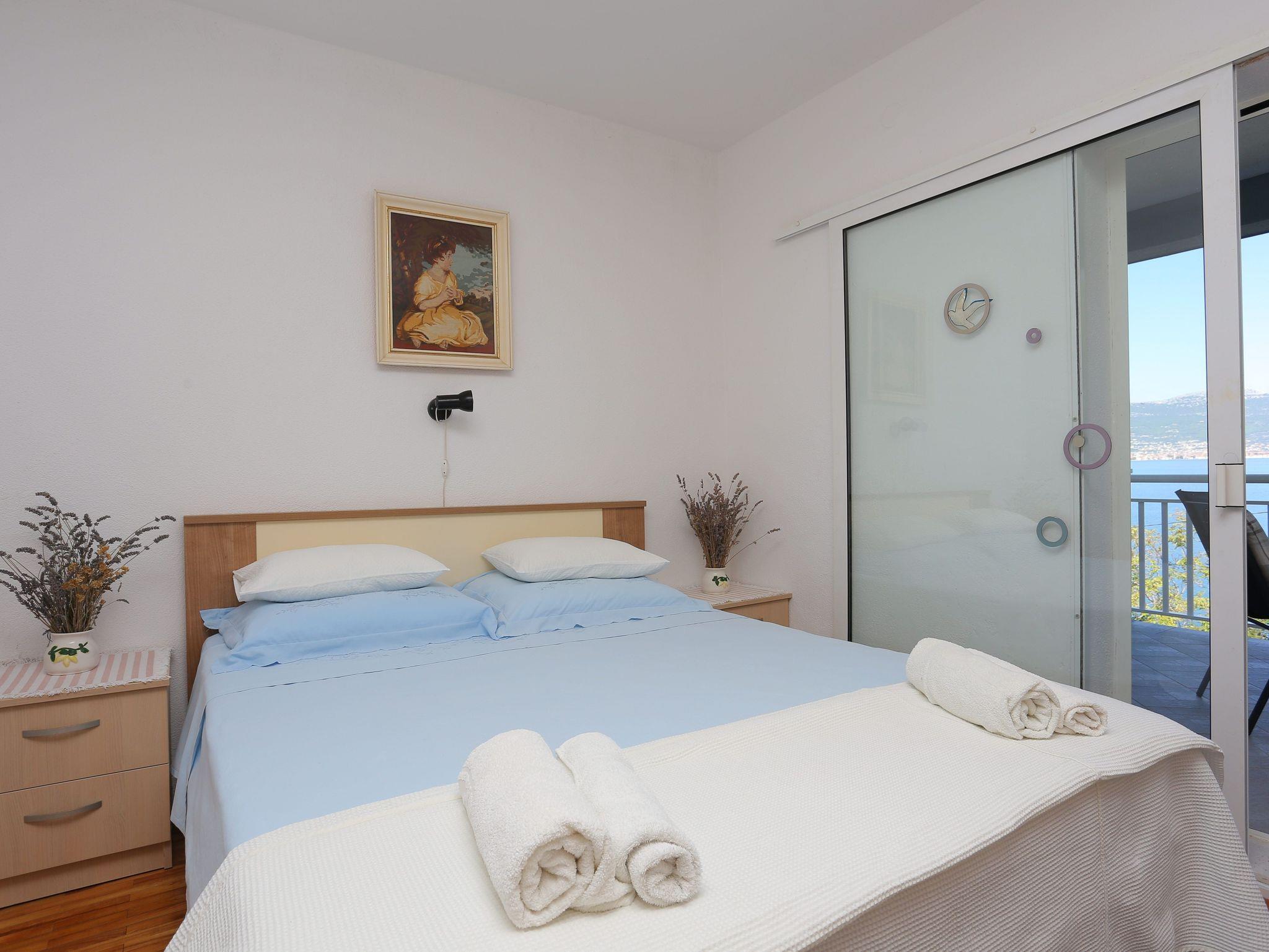 Ferienwohnung bietet Platz für 4 Gäste. Die Betten sind in Schlafzimmern, die es 1 gibt, und in Esszimmer, innerhalb einer Gesamtfläche von 40m2, angeordnet. Die Gäste haben eine eigene Terrasse zur Verfügung, auf der sie in warmen Sommernächten genießen können. Das Apartment bietet Meerblick. Es ist erlaubt, Speisen auf dem Gemeinschafts-Grill vorzubereiten. IM PREIS INBEGRIFFEN: Kurtaxe, Endreinigung, Klimatisierung, Parkplatz, Internet, Bügeleisen, Föhn, Sonnenschirm. VERBINDLICHE ZUSÄTZLICHE KOSTEN: Aufzahlung für Kurzaufenthalte (prozentualer Zuschlag pro Nächtigungsanzahl: 30% - 1, 20% - 2, 10% - 3). Die Verfügbarkeit zusätzlicher Dienstleistungen in Ihrem reservierten Termin und die Preise derselben (falls nicht aufgeführt) müssen im Voraus überprüft werden. Zusätzliche Dienstleistungen die in der Zahlungsaufforderung nicht aufgeführt sind werden direkt beim Vermieter bezahlt, angenommen der Gast nutzt auch diese. Ermäßigung auf den Grundpreis: Gratistag 14=13 (bei einem Aufenthalt von 14 Tagen oder mehr erhalten Sie einen Gratistag für den Aufenthalt bis 31.12.26).