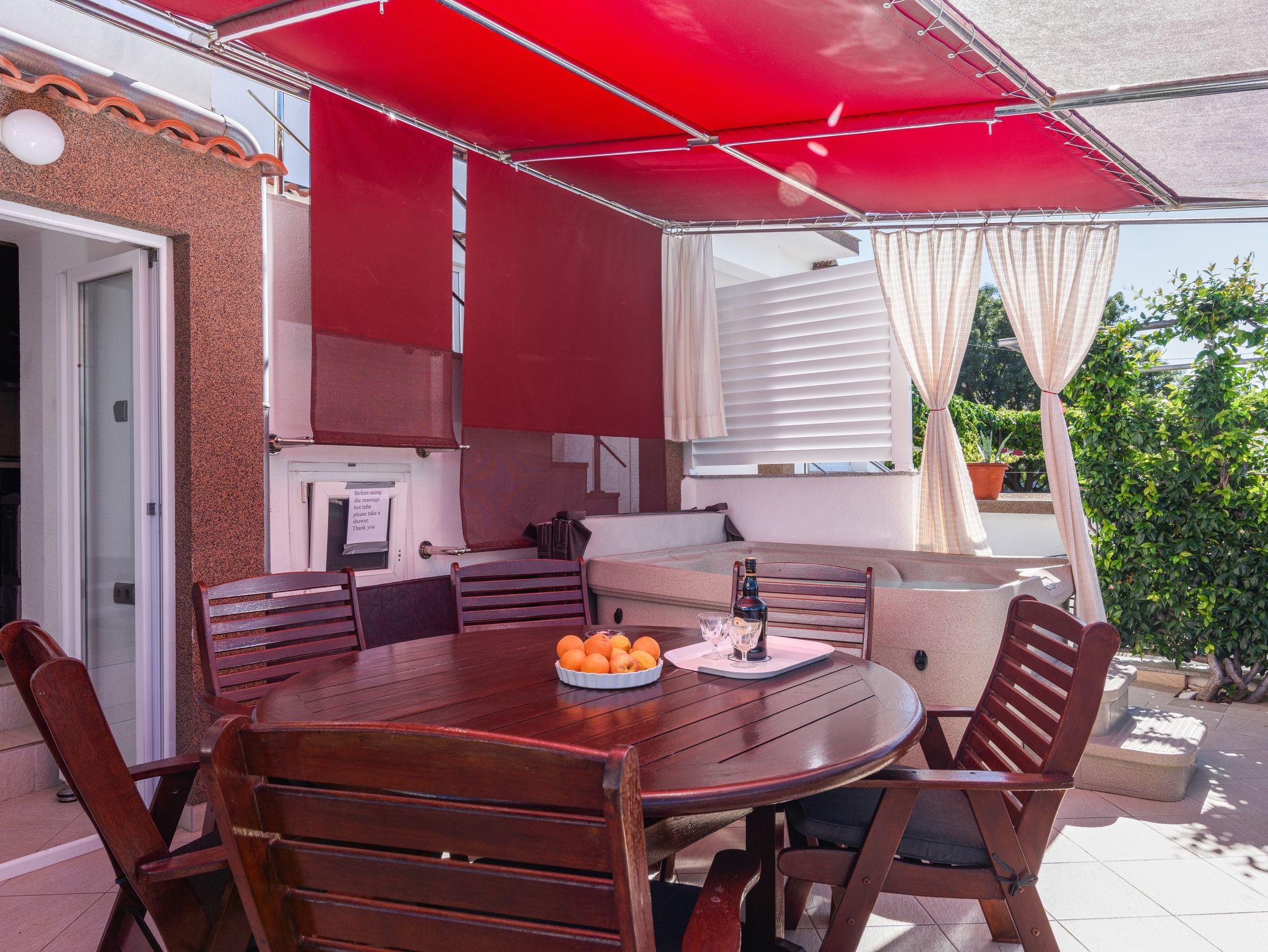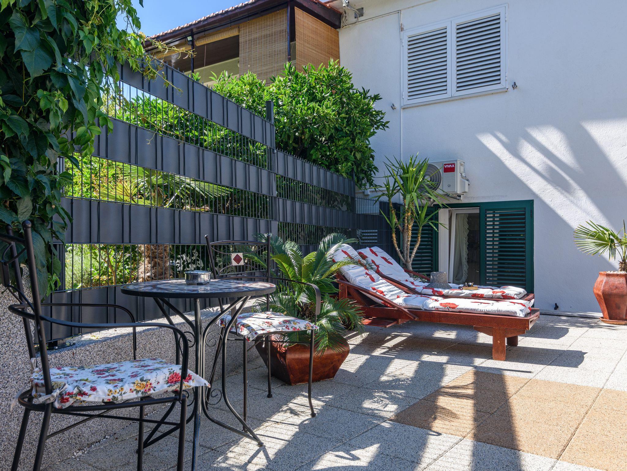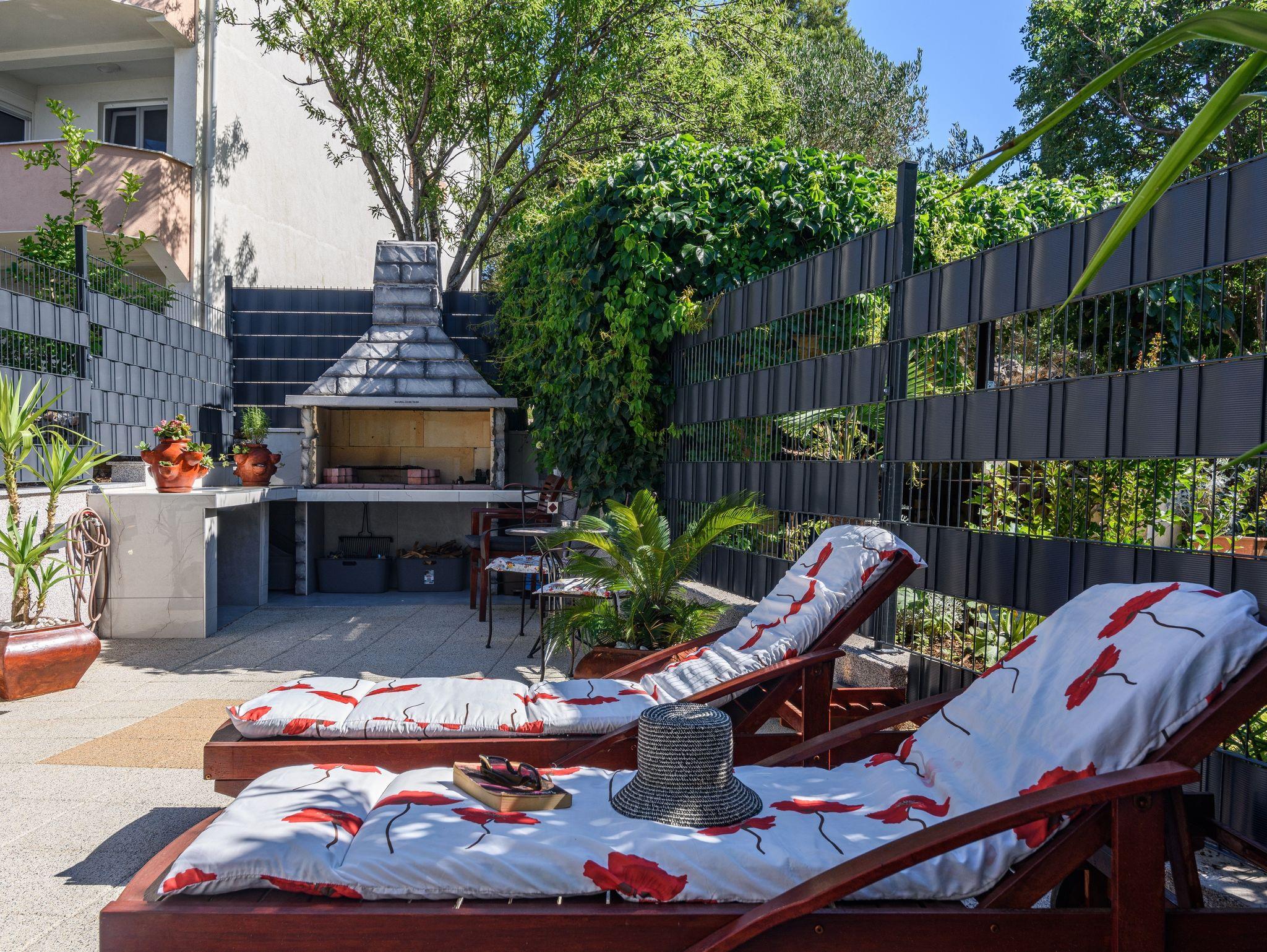 Ferienwohnung bietet Platz für 5 Gäste. Die Betten sind in Schlafzimmern, die es 2 gibt, und in Wohnzimmer, innerhalb einer Gesamtfläche von 63m2, angeordnet. Die Gäste haben eine eigene Terrasse zur Verfügung, auf der sie in warmen Sommernächten genießen können. Das Apartment bietet Meerblick. Für vollen Genuss und Entspannung gibt es einen privaten Grill für Gäste dieser Unterkunft. In der Unterkunftseinheit besteht die Möglichkeit des Mitbringens von Haustieren gegen Aufpreis. IM PREIS INBEGRIFFEN: Kurtaxe, Endreinigung, Klimatisierung, Parkplatz, Internet, Kinderbett, Föhn. VERBINDLICHE ZUSÄTZLICHE KOSTEN: Aufzahlung für Kurzaufenthalte (prozentualer Zuschlag pro Nächtigungsanzahl: 30% - 1, 20% - 2, 10% - 3). UNVERBINDLICHE ZUSÄTZLICHE KOSTEN: Haustiere (5,00 € pro Nacht). Die Verfügbarkeit zusätzlicher Dienstleistungen in Ihrem reservierten Termin und die Preise derselben (falls nicht aufgeführt) müssen im Voraus überprüft werden. Zusätzliche Dienstleistungen die in der Zahlungsaufforderung nicht aufgeführt sind werden direkt beim Vermieter bezahlt, angenommen der Gast nutzt auch diese.