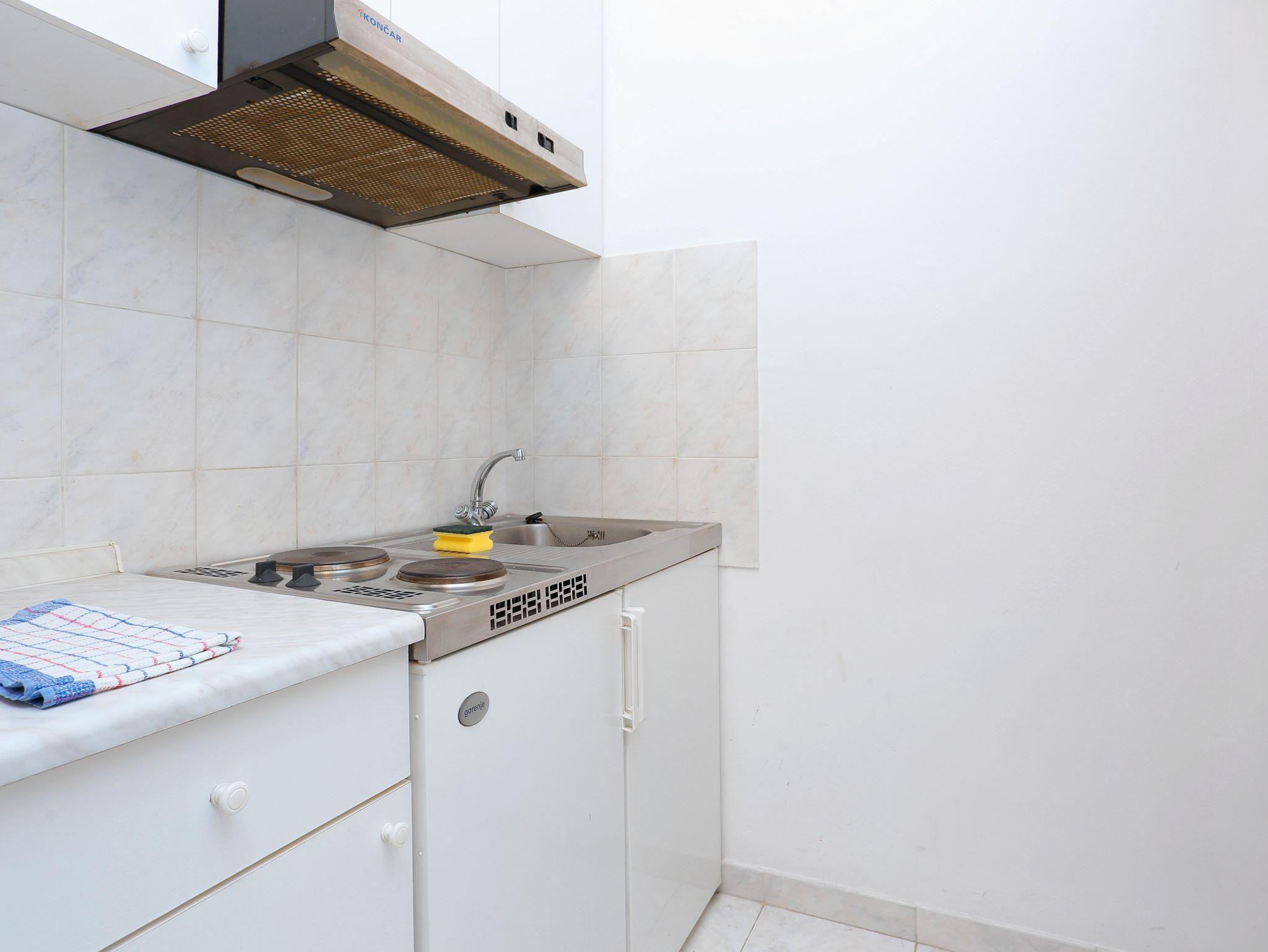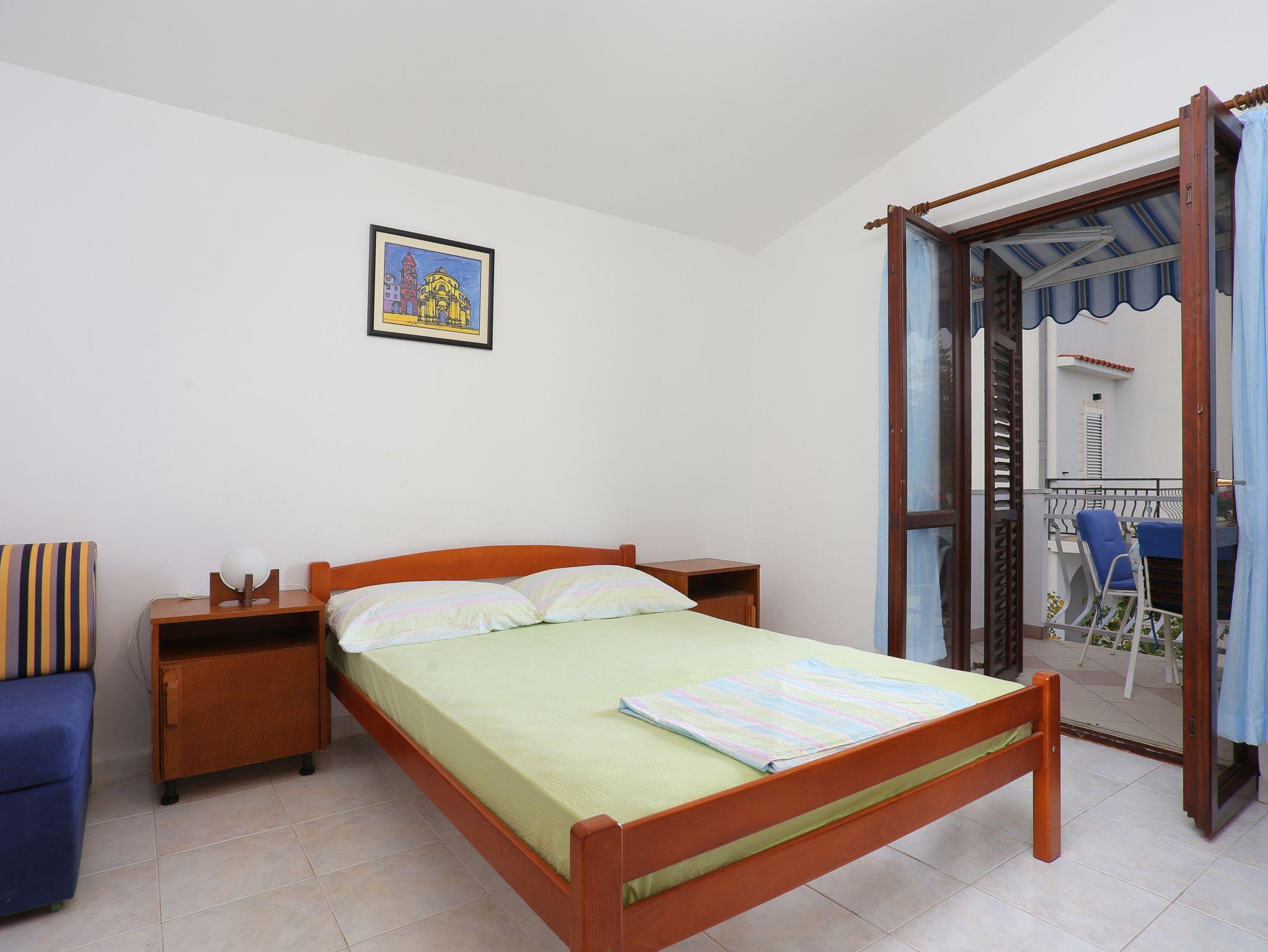 Studio bietet Platz für 2 Gäste. Die Betten sind in Schlafzimmern, die es 1 gibt, innerhalb einer Gesamtfläche von 18m2, angeordnet. Die Gäste haben einen eigenen Balkon zur Verfügung, auf der sie in warmen Sommernächten genießen können. Das Studio-Apartment bietet Meerblick. Es ist erlaubt, Speisen auf dem Gemeinschafts-Grill vorzubereiten. In der Unterkunftseinheit besteht die Möglichkeit des Mitbringens von Haustieren gegen Aufpreis. IM PREIS INBEGRIFFEN: Kurtaxe, Endreinigung, Klimatisierung, Parkplatz, Internet, Kinderbett, Zusatzbett. VERBINDLICHE ZUSÄTZLICHE KOSTEN: Aufzahlung für Kurzaufenthalte (prozentualer Zuschlag pro Nächtigungsanzahl: 30% - 1, 20% - 2, 10% - 3). UNVERBINDLICHE ZUSÄTZLICHE KOSTEN: Haustiere (18,00 € pro Nacht). Die Verfügbarkeit zusätzlicher Dienstleistungen in Ihrem reservierten Termin und die Preise derselben (falls nicht aufgeführt) müssen im Voraus überprüft werden. Zusätzliche Dienstleistungen die in der Zahlungsaufforderung nicht aufgeführt sind werden direkt beim Vermieter bezahlt, angenommen der Gast nutzt auch diese. Ermäßigung auf den Grundpreis: Gratistag 14=13 (bei einem Aufenthalt von 14 Tagen oder mehr erhalten Sie einen Gratistag für den Aufenthalt bis 31.12.26).