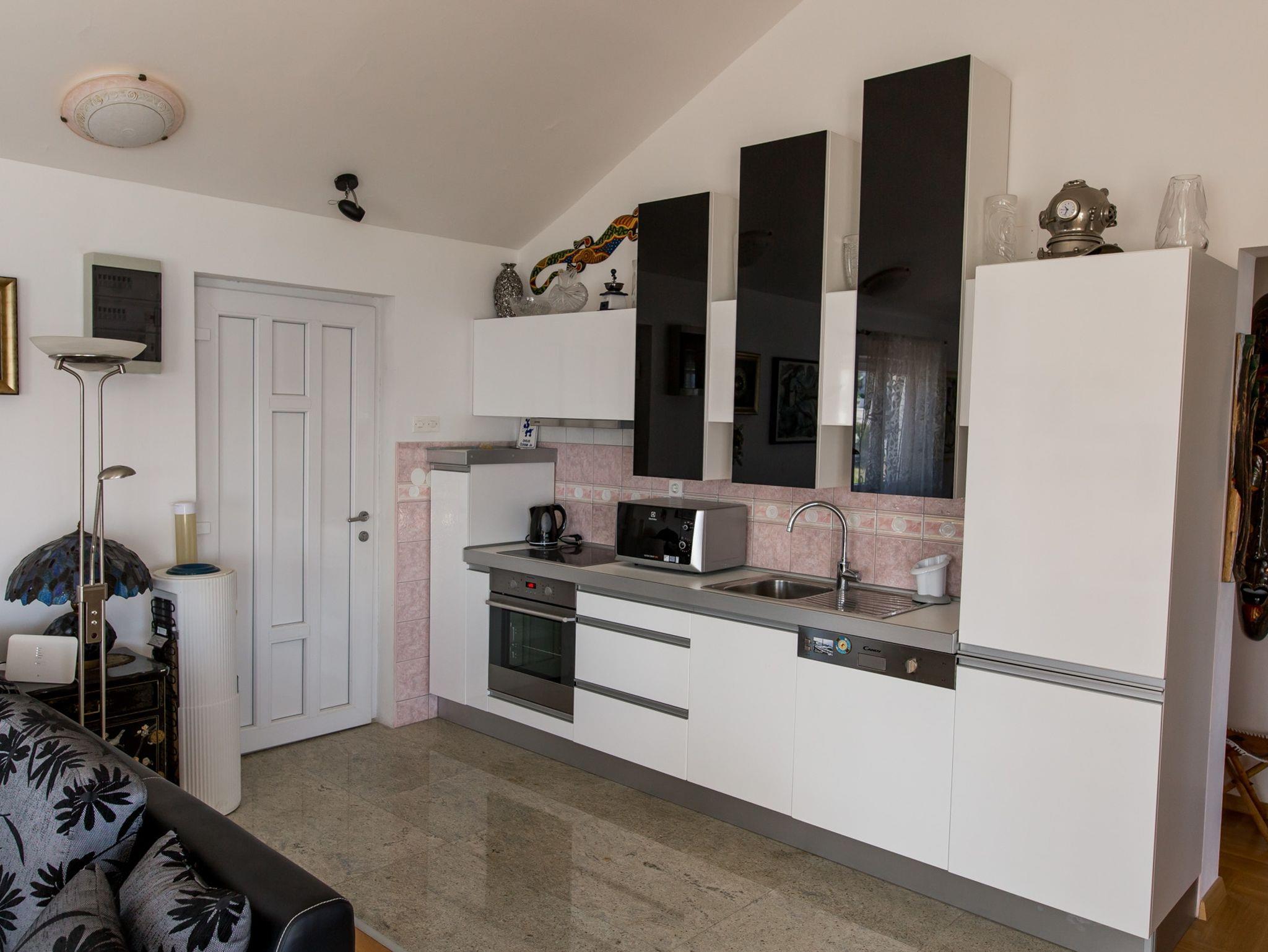 Ferienwohnung bietet Platz für 4 Gäste. Die Betten sind in Schlafzimmern, die es 2 gibt, innerhalb einer Gesamtfläche von 85m2, angeordnet. Die Gäste haben eine eigene Terrasse zur Verfügung, auf der sie in warmen Sommernächten genießen können. Das Apartment bietet Meerblick. Es ist erlaubt, Speisen auf dem Gemeinschafts-Grill vorzubereiten. In der gebuchten Unterkunftseinheit zahlt man am Ort ein Depositum ( der Preis ist an der Internetseite angeführt ). IM PREIS INBEGRIFFEN: Kurtaxe, Endreinigung, Klimatisierung, Parkplatz, Internet, Wäschewaschen, Bootsanlegeplatz, Kinderbett, Bügeleisen, Bügelbrett, Föhn, Sonnenschirm, Liegestühle. VERBINDLICHE ZUSÄTZLICHE KOSTEN: Kaution (200,00 € Einmalzahlung), Aufzahlung für Kurzaufenthalte (prozentualer Zuschlag pro Nächtigungsanzahl: 30% - 1, 20% - 2, 10% - 3). Die Verfügbarkeit zusätzlicher Dienstleistungen in Ihrem reservierten Termin und die Preise derselben (falls nicht aufgeführt) müssen im Voraus überprüft werden. Zusätzliche Dienstleistungen die in der Zahlungsaufforderung nicht aufgeführt sind werden direkt beim Vermieter bezahlt, angenommen der Gast nutzt auch diese. Ermäßigung auf den Grundpreis: Gratistag 14=13 (bei einem Aufenthalt von 14 Tagen oder mehr erhalten Sie einen Gratistag für den Aufenthalt bis 31.12.26).