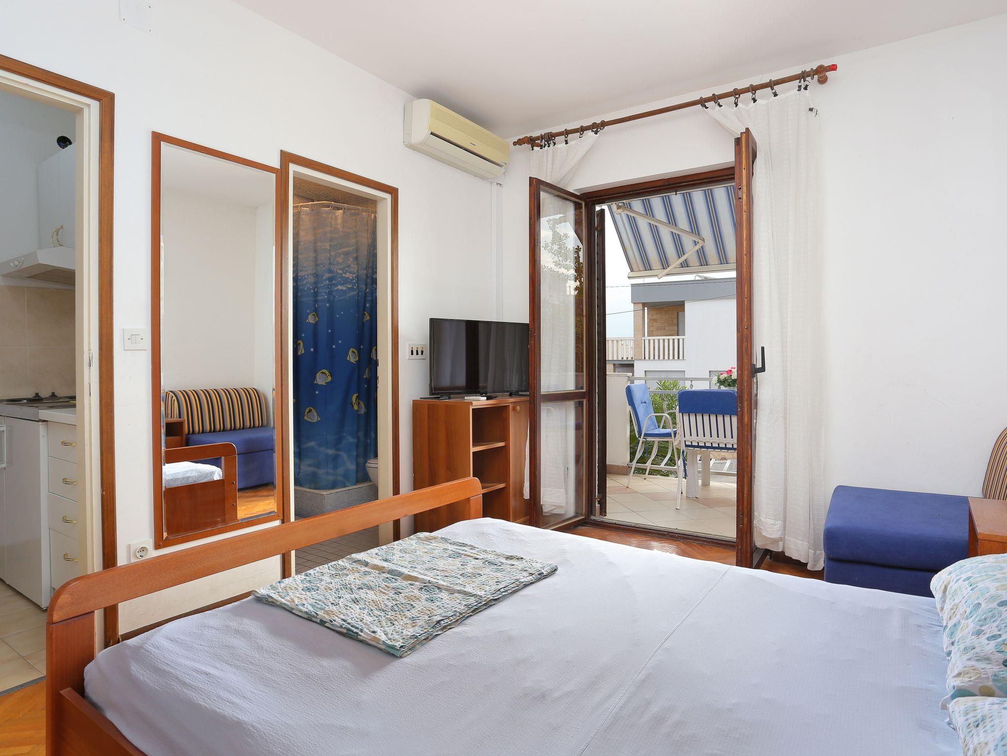 Studio bietet Platz für 3 Gäste. Die Betten sind in Schlafzimmern, die es 1 gibt, innerhalb einer Gesamtfläche von 20m2, angeordnet. Die Gäste haben einen eigenen Balkon zur Verfügung, auf der sie in warmen Sommernächten genießen können. Das Studio-Apartment bietet Meerblick. Es ist erlaubt, Speisen auf dem Gemeinschafts-Grill vorzubereiten. In der Unterkunftseinheit besteht die Möglichkeit des Mitbringens von Haustieren gegen Aufpreis. IM PREIS INBEGRIFFEN: Kurtaxe, Endreinigung, Klimatisierung, Parkplatz, Internet, Kinderbett, Zusatzbett. VERBINDLICHE ZUSÄTZLICHE KOSTEN: Aufzahlung für Kurzaufenthalte (prozentualer Zuschlag pro Nächtigungsanzahl: 30% - 1, 20% - 2, 10% - 3). UNVERBINDLICHE ZUSÄTZLICHE KOSTEN: Haustiere (18,00 € pro Nacht). Die Verfügbarkeit zusätzlicher Dienstleistungen in Ihrem reservierten Termin und die Preise derselben (falls nicht aufgeführt) müssen im Voraus überprüft werden. Zusätzliche Dienstleistungen die in der Zahlungsaufforderung nicht aufgeführt sind werden direkt beim Vermieter bezahlt, angenommen der Gast nutzt auch diese. Ermäßigung auf den Grundpreis: Gratistag 14=13 (bei einem Aufenthalt von 14 Tagen oder mehr erhalten Sie einen Gratistag für den Aufenthalt bis 31.12.26).