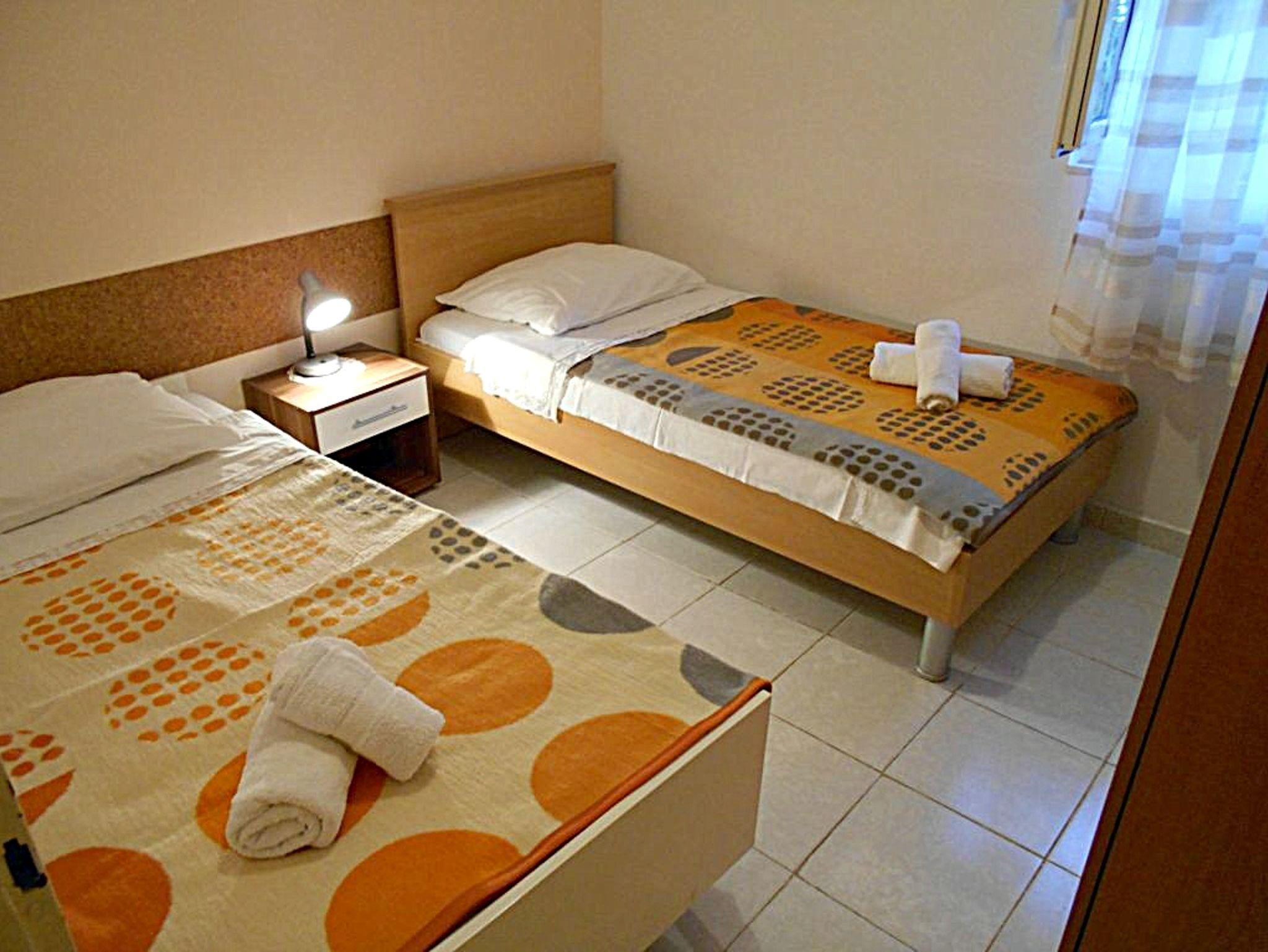 Ferienwohnung bietet Platz für 7 Gäste. Die Betten sind in Schlafzimmern, die es 2 gibt, und in Wohnzimmer, innerhalb einer Gesamtfläche von 60m2, angeordnet. Die Gäste haben einen eigenen Balkon zur Verfügung, auf der sie in warmen Sommernächten genießen können. Das Apartment bietet Meerblick. Es ist erlaubt, Speisen auf dem Gemeinschafts-Grill vorzubereiten. IM PREIS INBEGRIFFEN: Kurtaxe, Endreinigung, Klimatisierung, Parkplatz, Internet, Wäschewaschen. VERBINDLICHE ZUSÄTZLICHE KOSTEN: Aufzahlung für Kurzaufenthalte (prozentualer Zuschlag pro Nächtigungsanzahl: 30% - 1, 20% - 2, 10% - 3). Die Verfügbarkeit zusätzlicher Dienstleistungen in Ihrem reservierten Termin und die Preise derselben (falls nicht aufgeführt) müssen im Voraus überprüft werden. Zusätzliche Dienstleistungen die in der Zahlungsaufforderung nicht aufgeführt sind werden direkt beim Vermieter bezahlt, angenommen der Gast nutzt auch diese.
