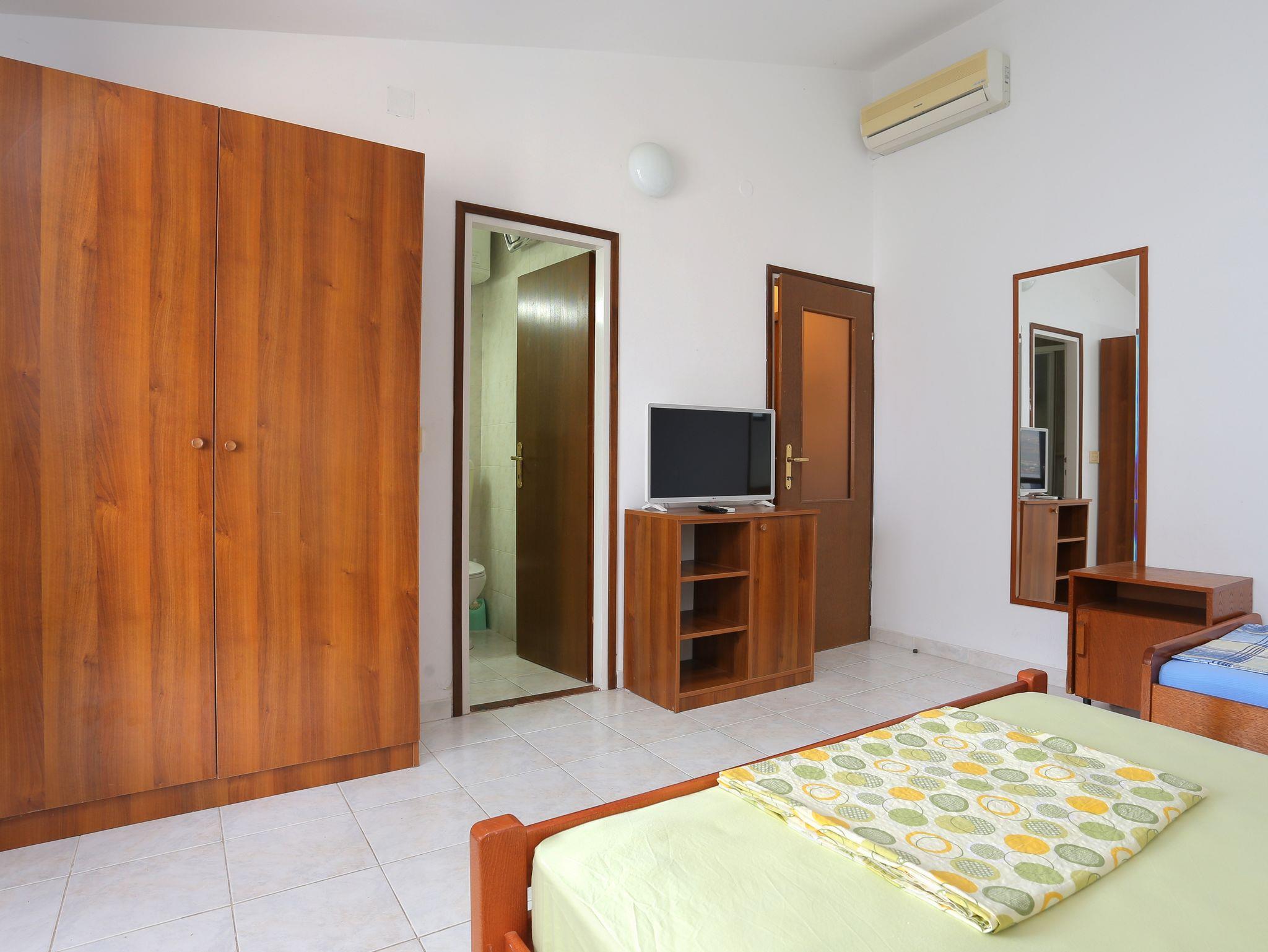 Studio bietet Platz für 3 Gäste. Die Betten sind in Schlafzimmern, die es 1 gibt, innerhalb einer Gesamtfläche von 20m2, angeordnet. Die Gäste haben einen eigenen Balkon zur Verfügung, auf der sie in warmen Sommernächten genießen können. Das Studio-Apartment bietet Meerblick. Es ist erlaubt, Speisen auf dem Gemeinschafts-Grill vorzubereiten. In der Unterkunftseinheit besteht die Möglichkeit des Mitbringens von Haustieren gegen Aufpreis. IM PREIS INBEGRIFFEN: Kurtaxe, Endreinigung, Klimatisierung, Parkplatz, Internet, Kinderbett, Zusatzbett. VERBINDLICHE ZUSÄTZLICHE KOSTEN: Aufzahlung für Kurzaufenthalte (prozentualer Zuschlag pro Nächtigungsanzahl: 30% - 1, 20% - 2, 10% - 3). UNVERBINDLICHE ZUSÄTZLICHE KOSTEN: Haustiere (18,00 € pro Nacht). Die Verfügbarkeit zusätzlicher Dienstleistungen in Ihrem reservierten Termin und die Preise derselben (falls nicht aufgeführt) müssen im Voraus überprüft werden. Zusätzliche Dienstleistungen die in der Zahlungsaufforderung nicht aufgeführt sind werden direkt beim Vermieter bezahlt, angenommen der Gast nutzt auch diese. Ermäßigung auf den Grundpreis: Gratistag 14=13 (bei einem Aufenthalt von 14 Tagen oder mehr erhalten Sie einen Gratistag für den Aufenthalt bis 31.12.26).