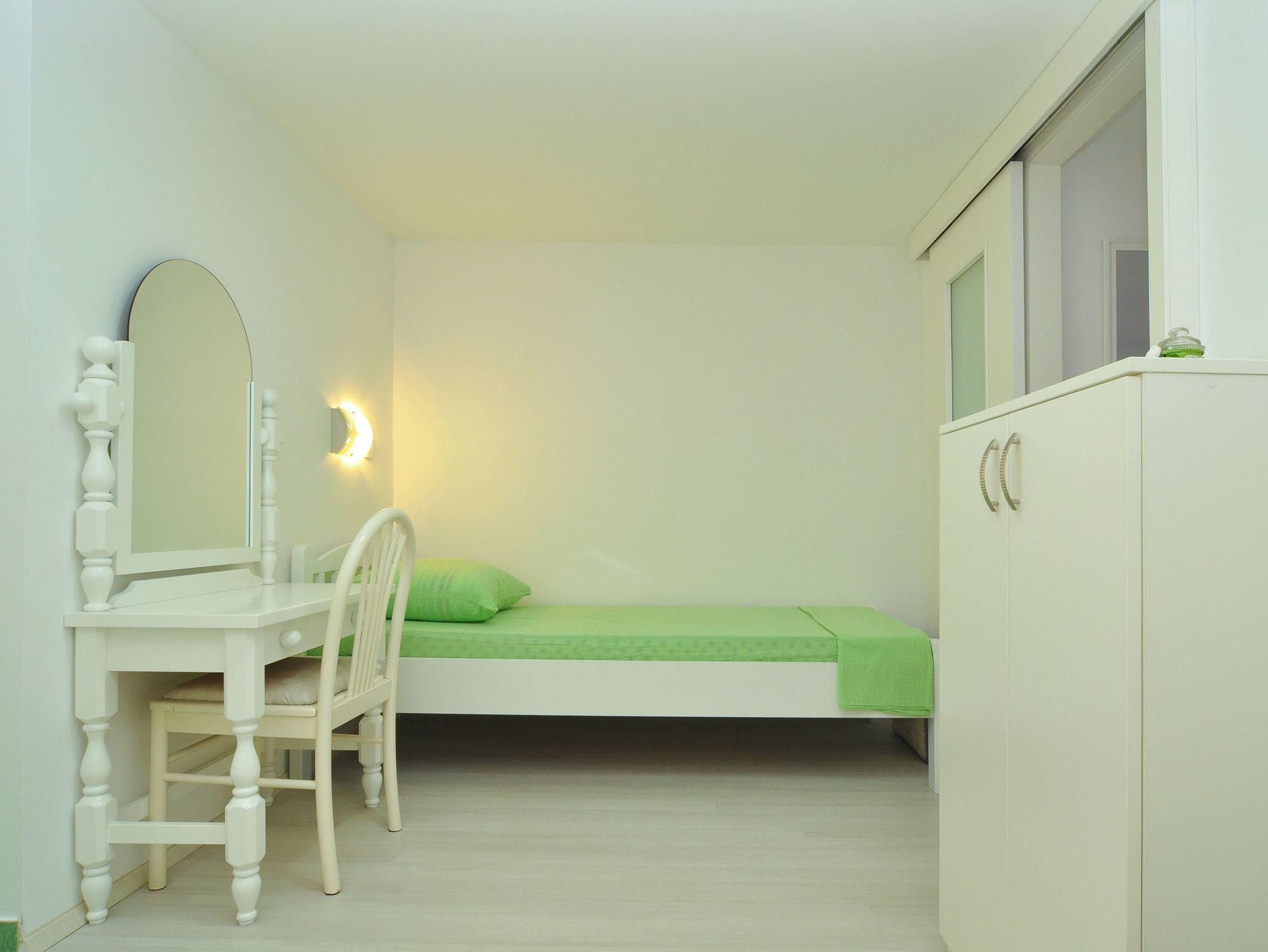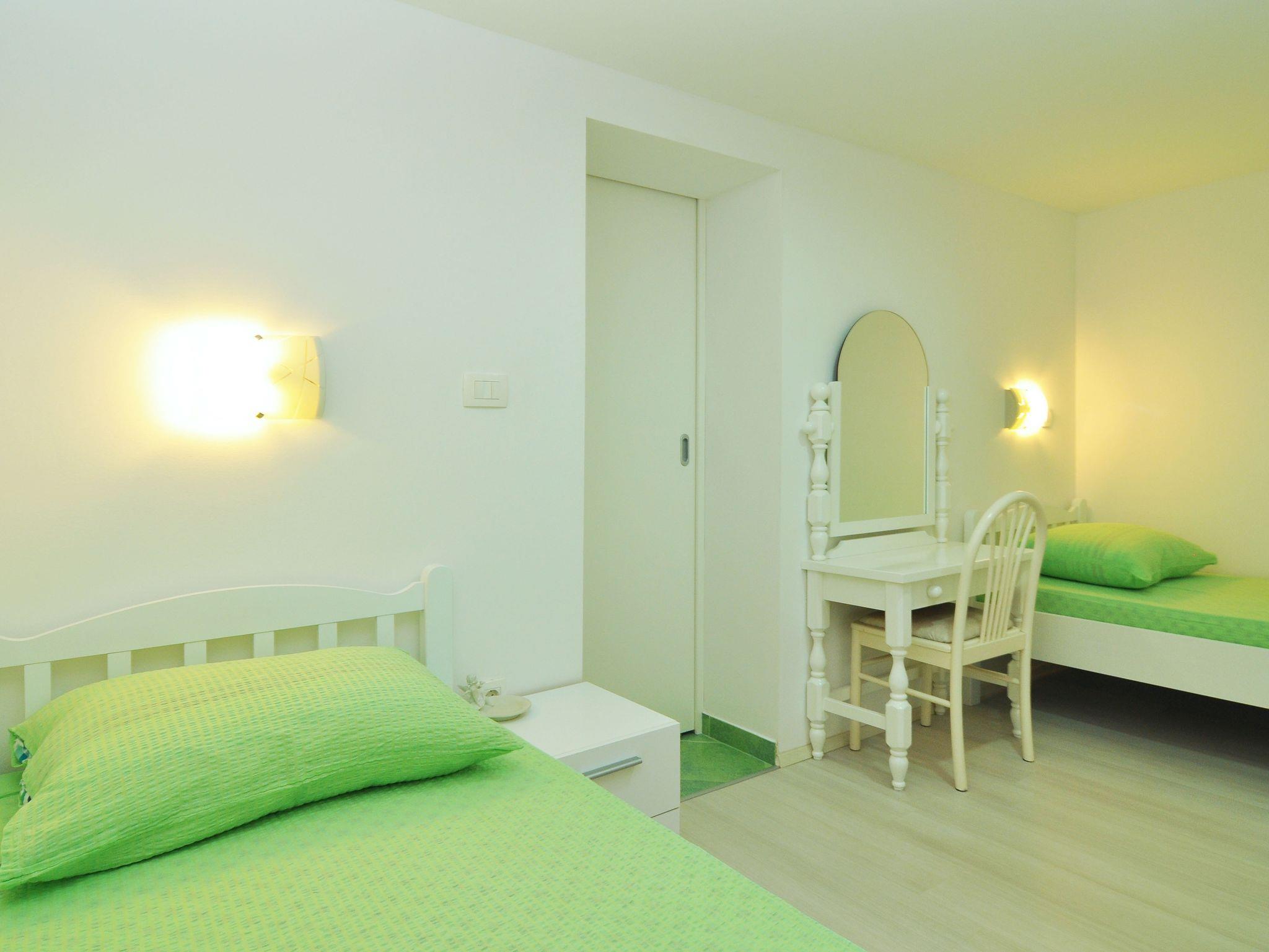 Ferienwohnung bietet Platz für 5 Gäste. Die Betten sind in Schlafzimmern, die es 2 gibt, und in Esszimmer, innerhalb einer Gesamtfläche von 40m2, angeordnet. Die Gäste haben eine eigene Terrasse zur Verfügung, auf der sie in warmen Sommernächten genießen können. Das Apartment bietet Meerblick. Es ist erlaubt, Speisen auf dem Gemeinschafts-Grill vorzubereiten. In der Unterkunftseinheit besteht die Möglichkeit des Mitbringens von Haustieren gegen Aufpreis. IM PREIS INBEGRIFFEN: Kurtaxe, Endreinigung, Klimatisierung, Parkplatz, Internet, Bootsanlegeplatz, Bügeleisen, Bügelbrett, Föhn. UNVERBINDLICHE ZUSÄTZLICHE KOSTEN: Haustiere (5,00 € pro Nacht). Die Verfügbarkeit zusätzlicher Dienstleistungen in Ihrem reservierten Termin und die Preise derselben (falls nicht aufgeführt) müssen im Voraus überprüft werden. Zusätzliche Dienstleistungen die in der Zahlungsaufforderung nicht aufgeführt sind werden direkt beim Vermieter bezahlt, angenommen der Gast nutzt auch diese.