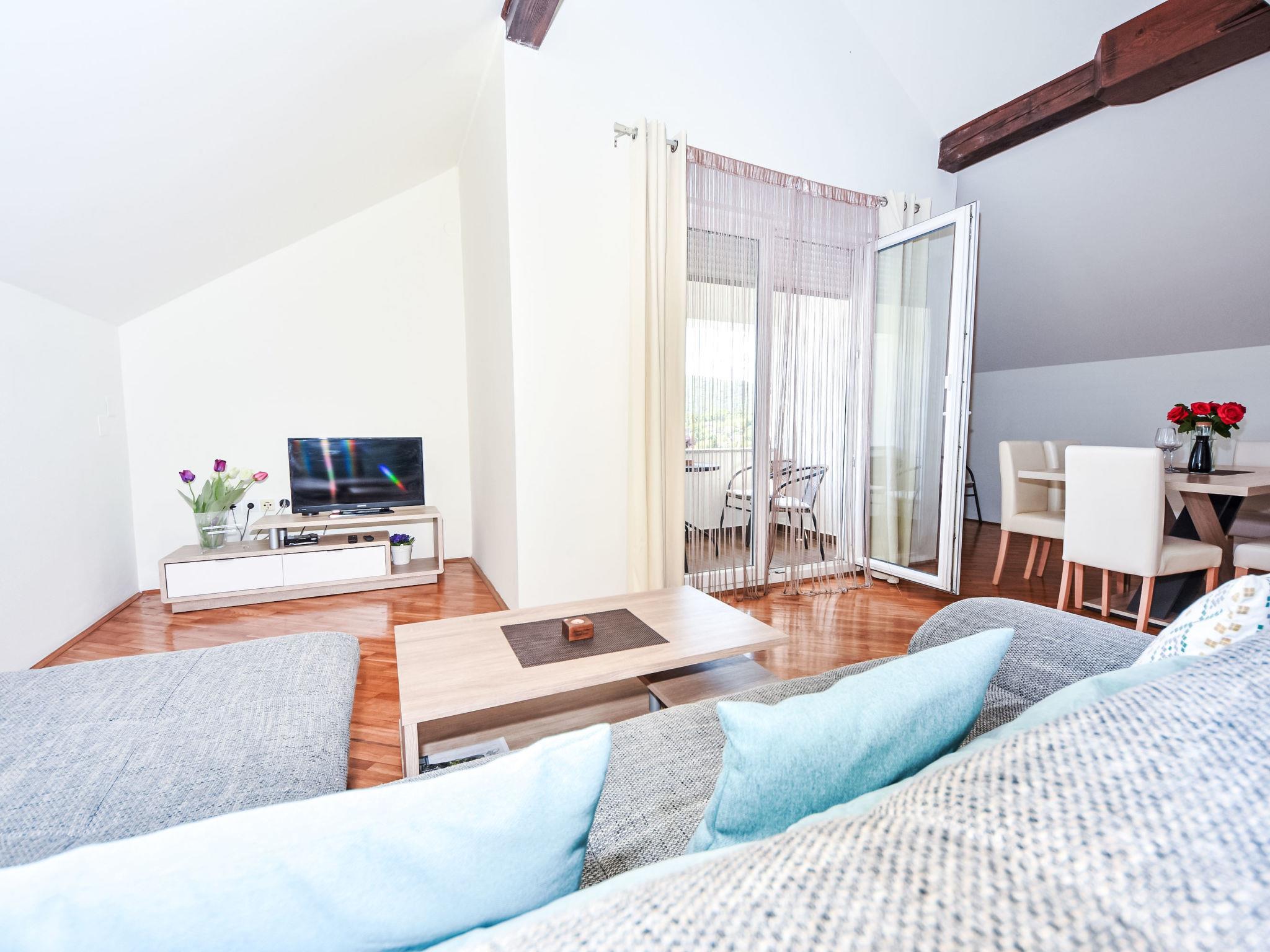 3-room apartment 70 m2, on the top floor, south-west facing position. Living/dining room 40 m2, with sloping ceilings, ceiling height 160 - 300 cm with 1 bed (90 cm, length 200 cm), 1 sofabed (140 cm, length 200 cm), satellite TV (flat screen), air conditioning. 2 rooms with sloping ceilings, ceiling height 160 - 300 cm, each room with 1 french bed (160 cm, length 200 cm). With sloping ceilings, open kitchen (oven, dishwasher, 4 induction hot plates, freezer, electric coffee machine), ceiling height 200 - 300 cm. 2 baths/WC. Air-conditioning (extra). No heating option. Small balcony 2 m2, balcony 9 m2. Balcony furniture. View of the sea. Facilities: washing machine. Internet (WiFi, free). 3845.101.1