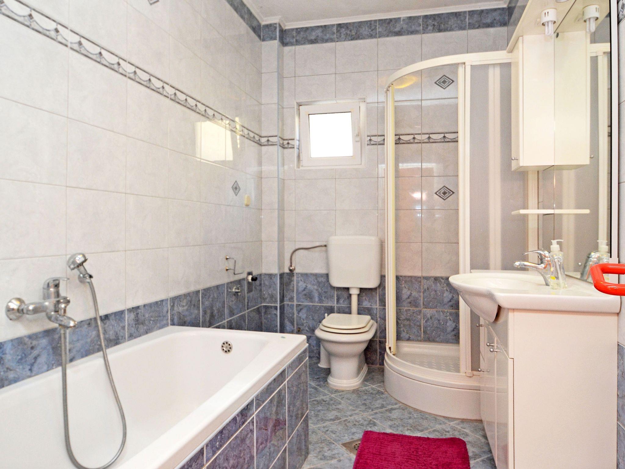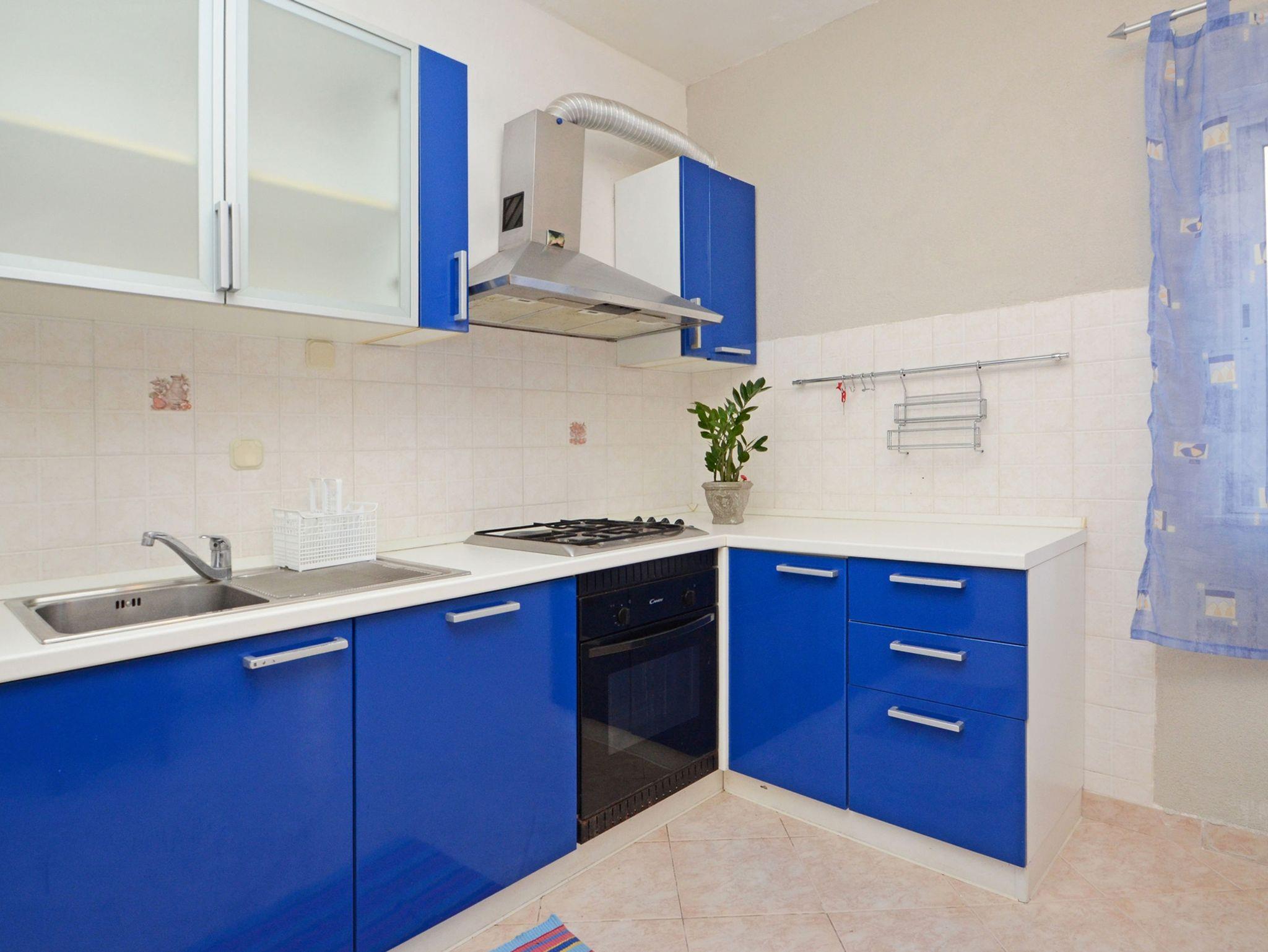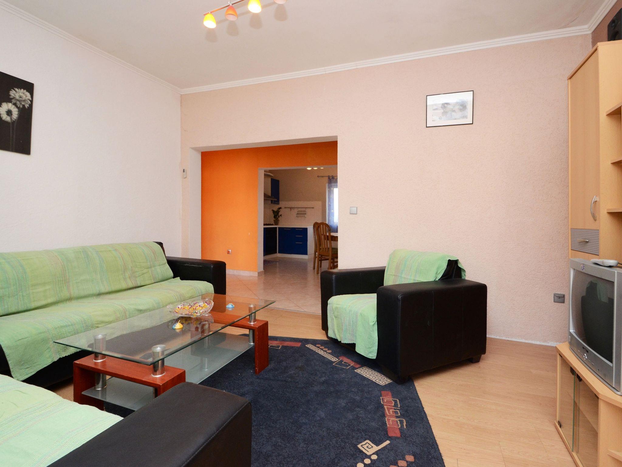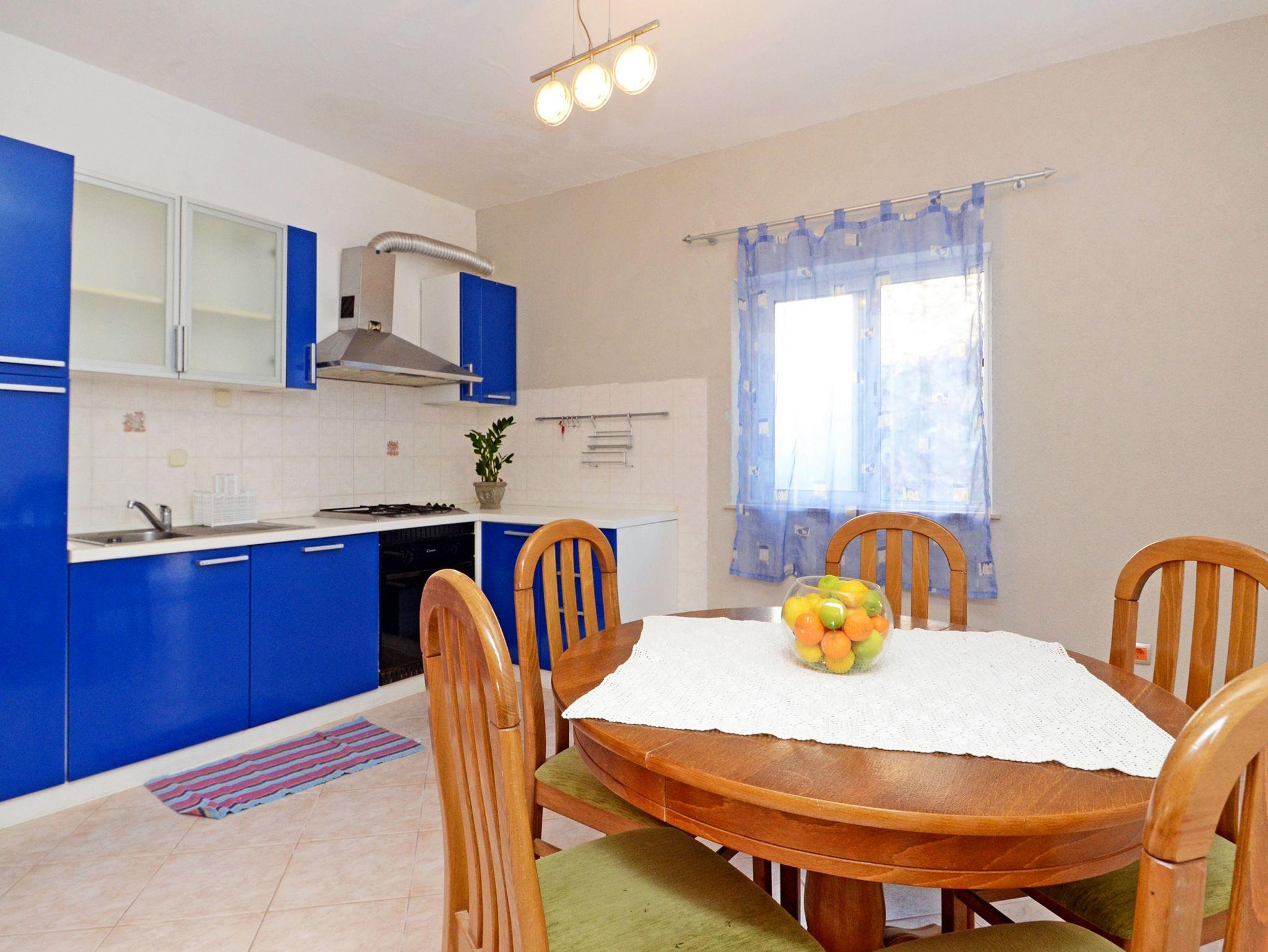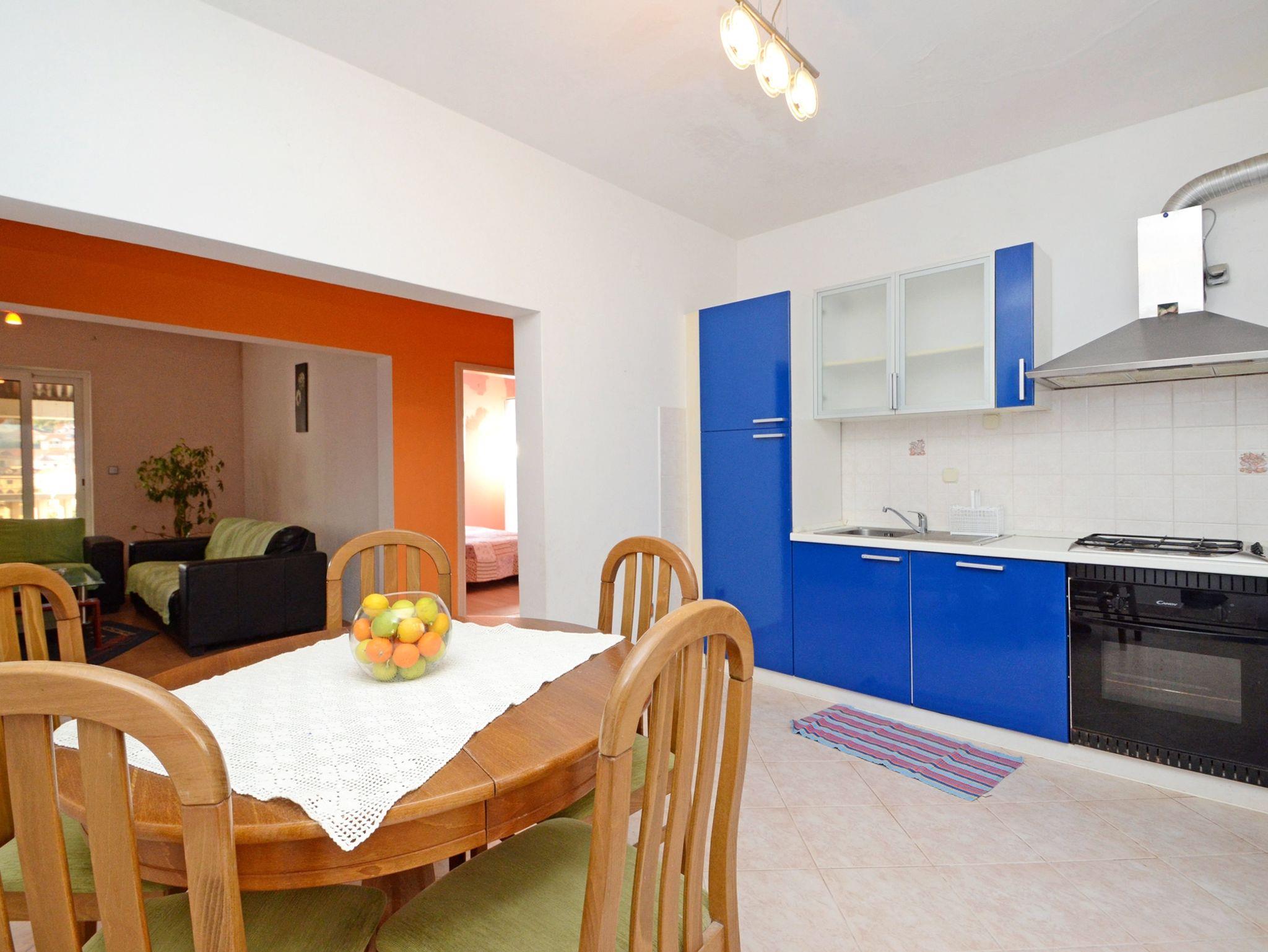 Ferienwohnung bietet Platz für 5 Gäste. Die Betten sind in Schlafzimmern, die es 3 gibt, innerhalb einer Gesamtfläche von 77m2, angeordnet. Die Gäste haben eine eigene Terrasse zur Verfügung, auf der sie in warmen Sommernächten genießen können. Das Apartment bietet Meerblick. IM PREIS INBEGRIFFEN: Kurtaxe, Endreinigung, Klimatisierung, Parkplatz, Internet, Bügeleisen, Bügelbrett, Föhn, Sonnenschirm. VERBINDLICHE ZUSÄTZLICHE KOSTEN: Aufzahlung für Kurzaufenthalte (prozentualer Zuschlag pro Nächtigungsanzahl: 30% - 1, 20% - 2, 10% - 3). Die Verfügbarkeit zusätzlicher Dienstleistungen in Ihrem reservierten Termin und die Preise derselben (falls nicht aufgeführt) müssen im Voraus überprüft werden. Zusätzliche Dienstleistungen die in der Zahlungsaufforderung nicht aufgeführt sind werden direkt beim Vermieter bezahlt, angenommen der Gast nutzt auch diese.