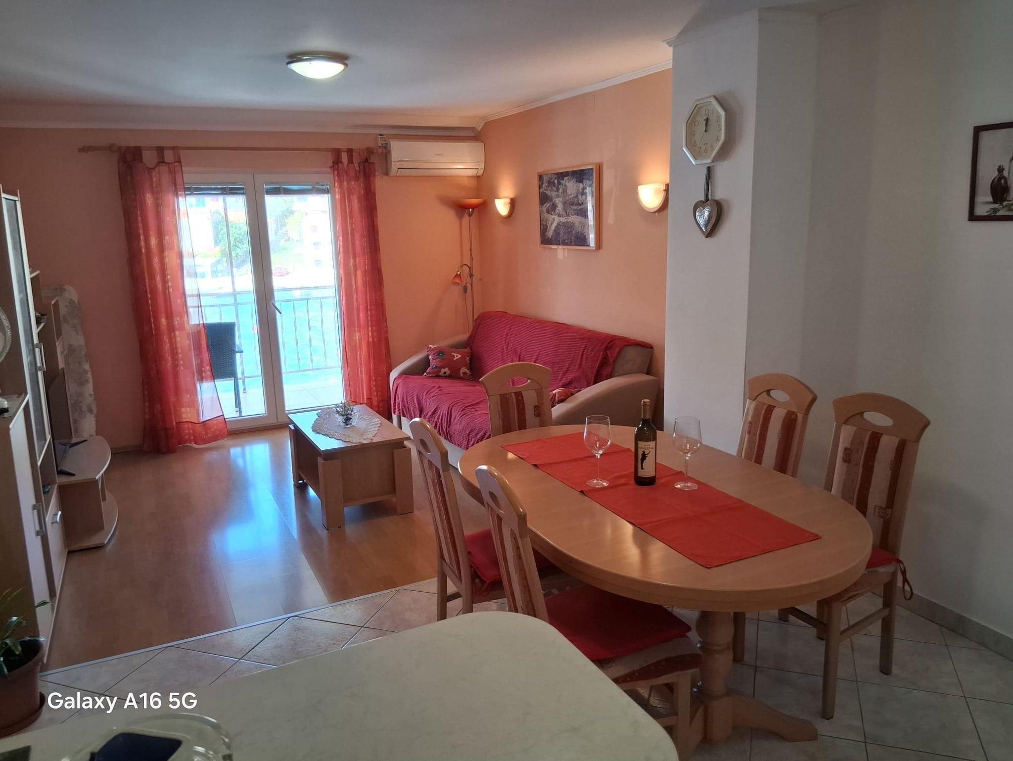 Ferienwohnung bietet Platz für 5 Gäste. Die Betten sind in Schlafzimmern, die es 2 gibt, und in Wohnzimmer, innerhalb einer Gesamtfläche von 60m2, angeordnet. Die Gäste haben eine eigene Terrasse zur Verfügung, auf der sie in warmen Sommernächten genießen können. Das Apartment bietet Meerblick. Es ist erlaubt, Speisen auf dem Gemeinschafts-Grill vorzubereiten. IM PREIS INBEGRIFFEN: Kurtaxe, Endreinigung, Klimatisierung, Parkplatz, Internet, Bügeleisen, Bügelbrett, Föhn. Die Verfügbarkeit zusätzlicher Dienstleistungen in Ihrem reservierten Termin und die Preise derselben (falls nicht aufgeführt) müssen im Voraus überprüft werden. Zusätzliche Dienstleistungen die in der Zahlungsaufforderung nicht aufgeführt sind werden direkt beim Vermieter bezahlt, angenommen der Gast nutzt auch diese. Ermäßigung auf den Grundpreis: Gratistag 14=13 (bei einem Aufenthalt von 14 Tagen oder mehr erhalten Sie einen Gratistag für den Aufenthalt bis 31.12.26).